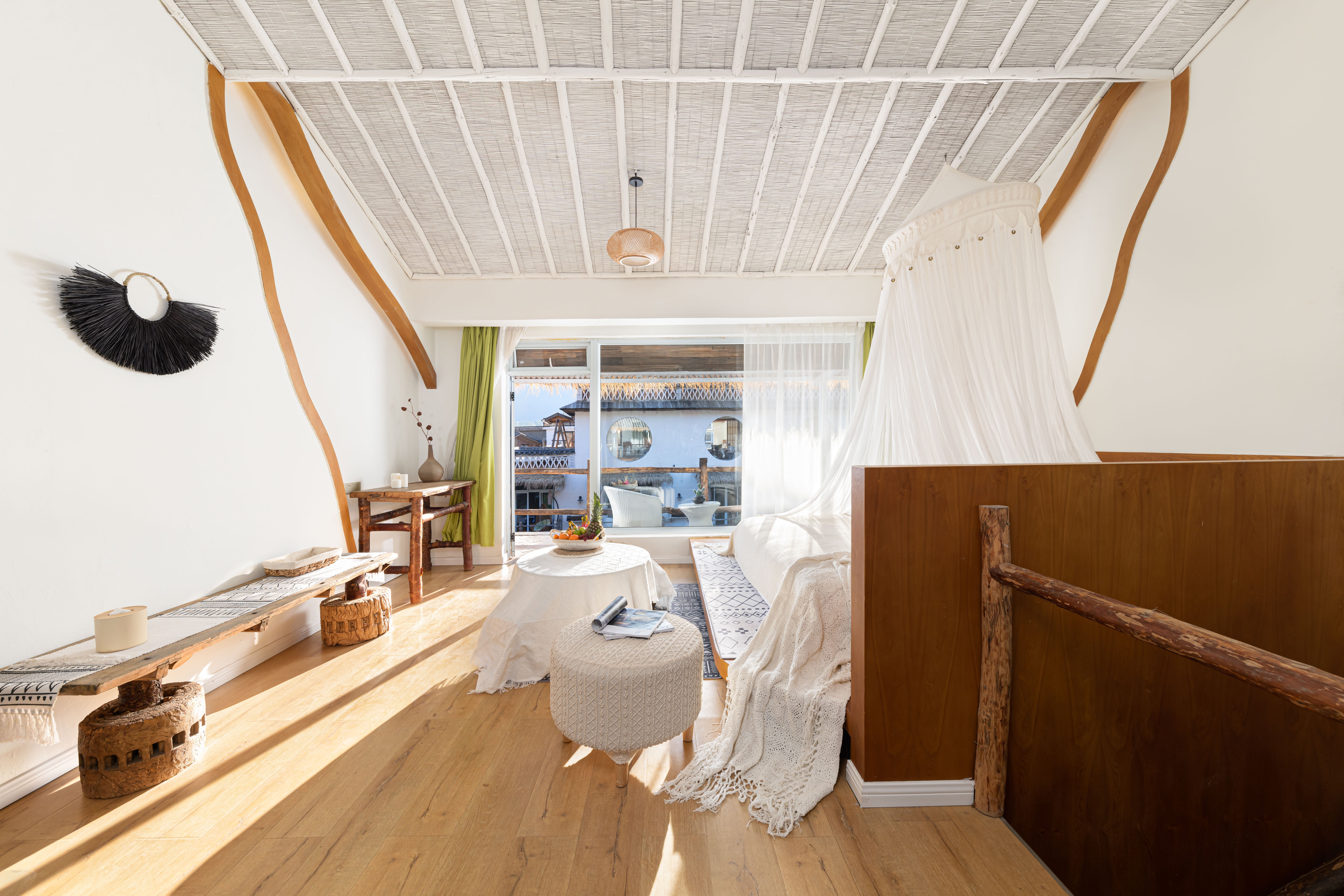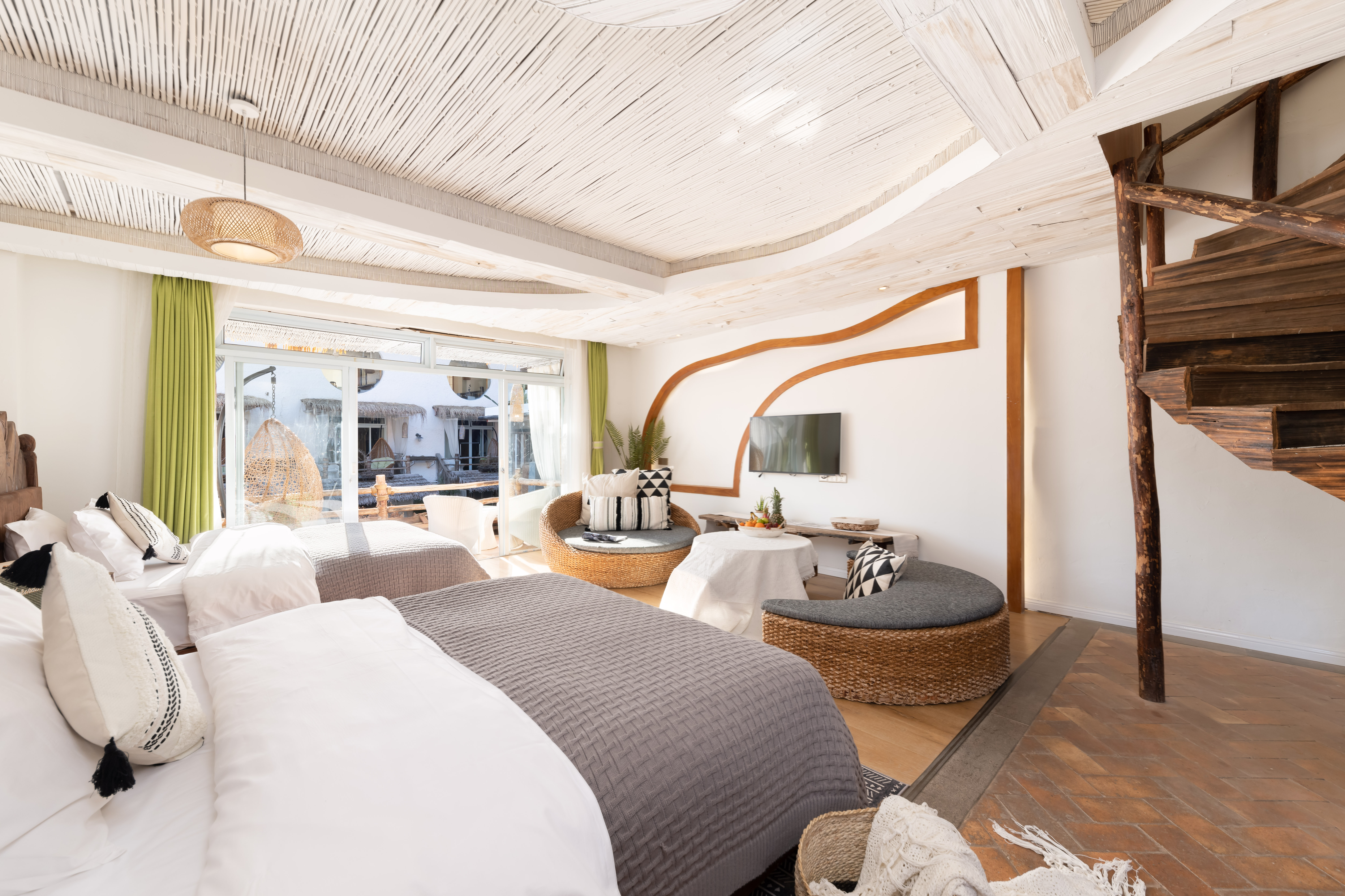 Yunxia Double Terrace Family Suite-Private Living Room, Canopy Daybed, Spiral Wooden Staircase