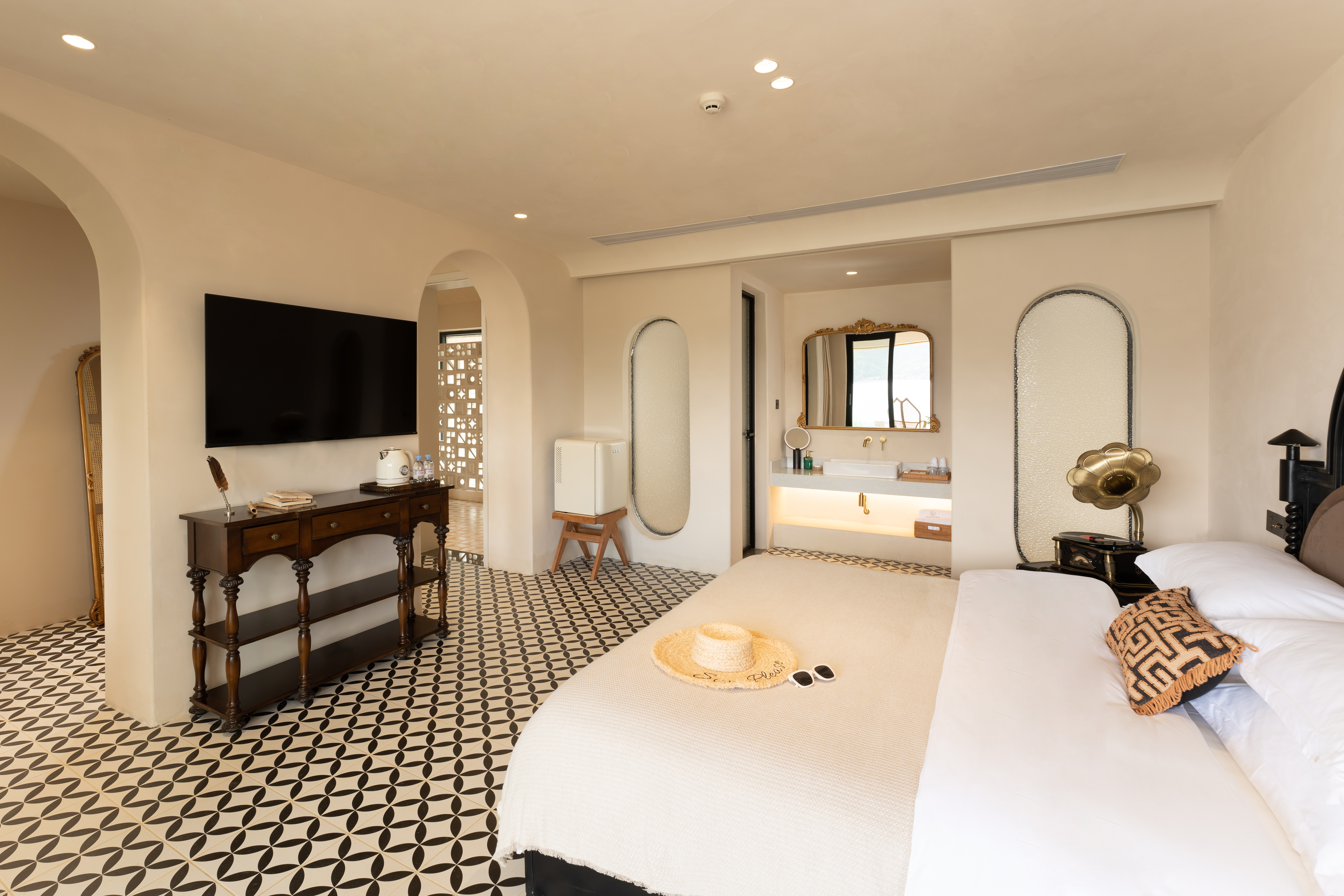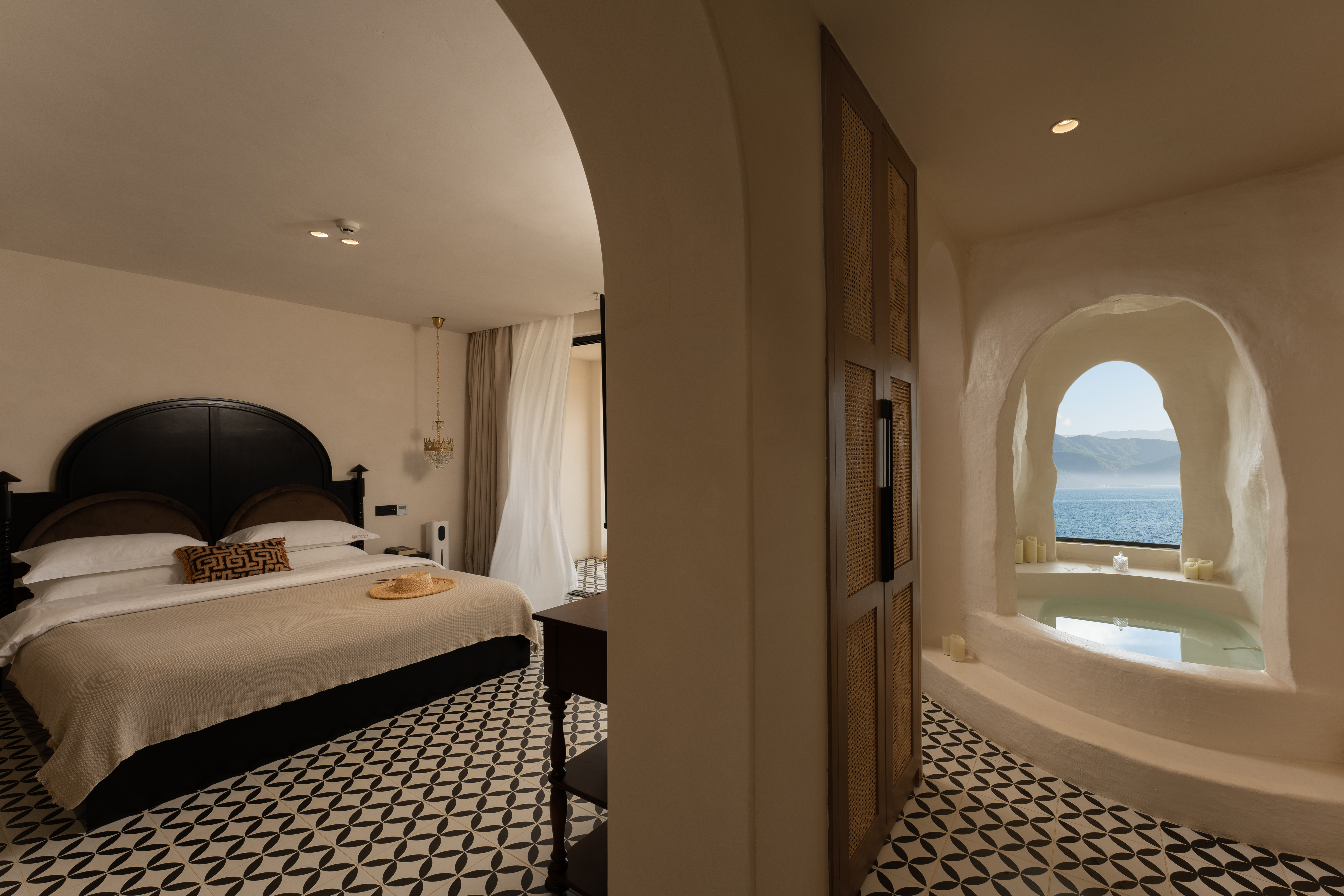 French Charm Cave Lake-View Double Bed Room-Immersive Scenic Tub&Vinyl Record Bluetooth Gramophone