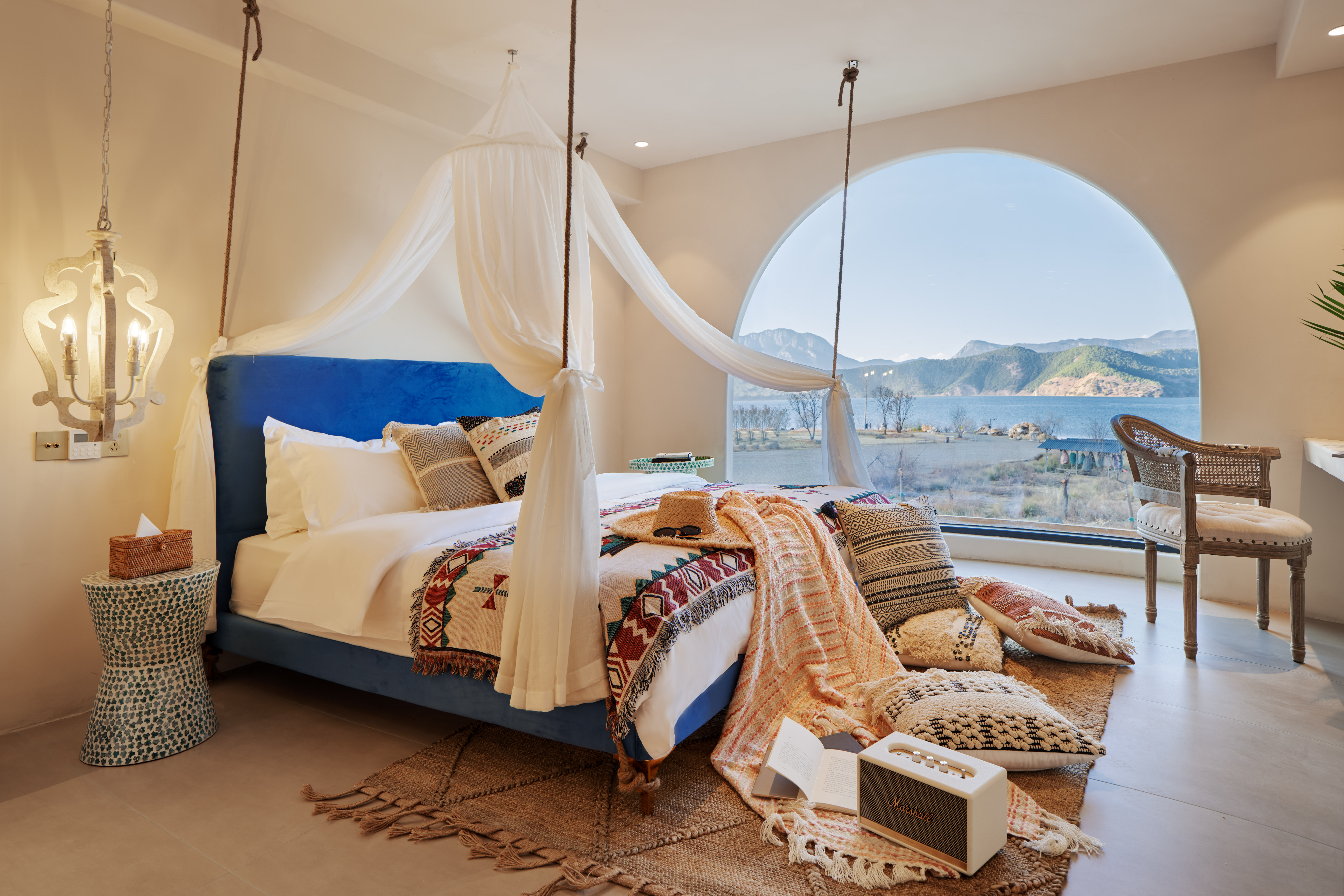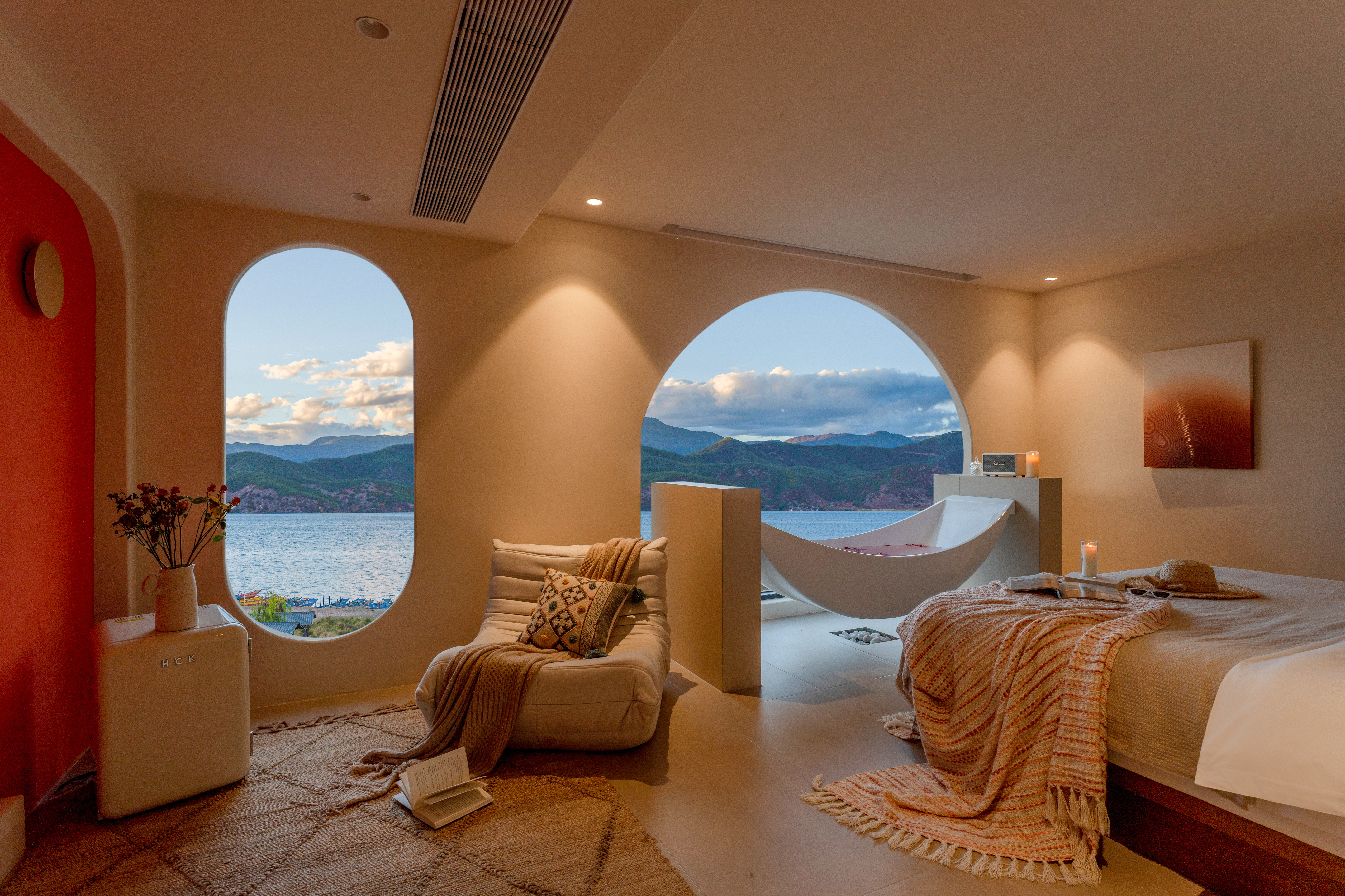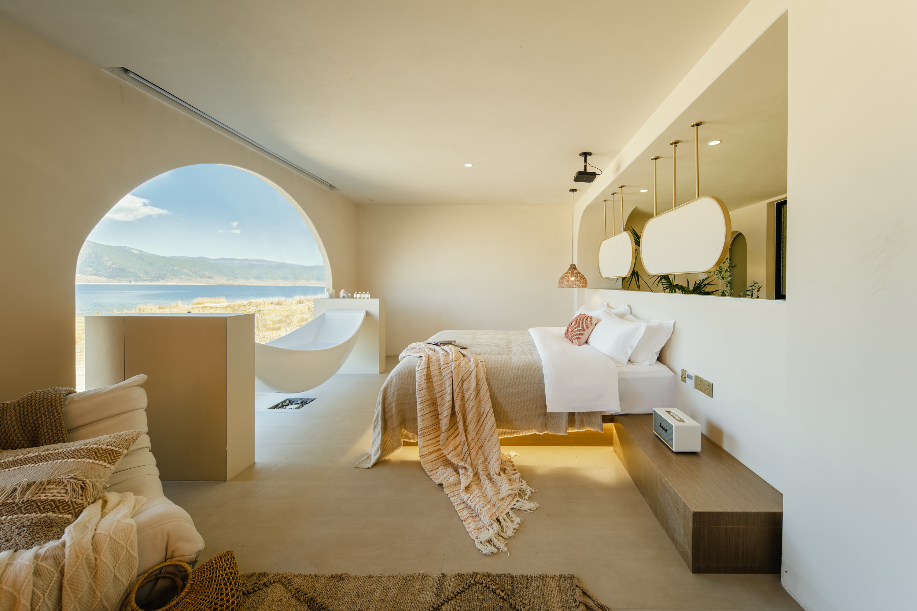 Sicily Suspended Tub Lake-View Double Bed Room-Hundred-Inch Screen, Jmgo High-Definition Projector, Screen Casting&Marshall Audio System