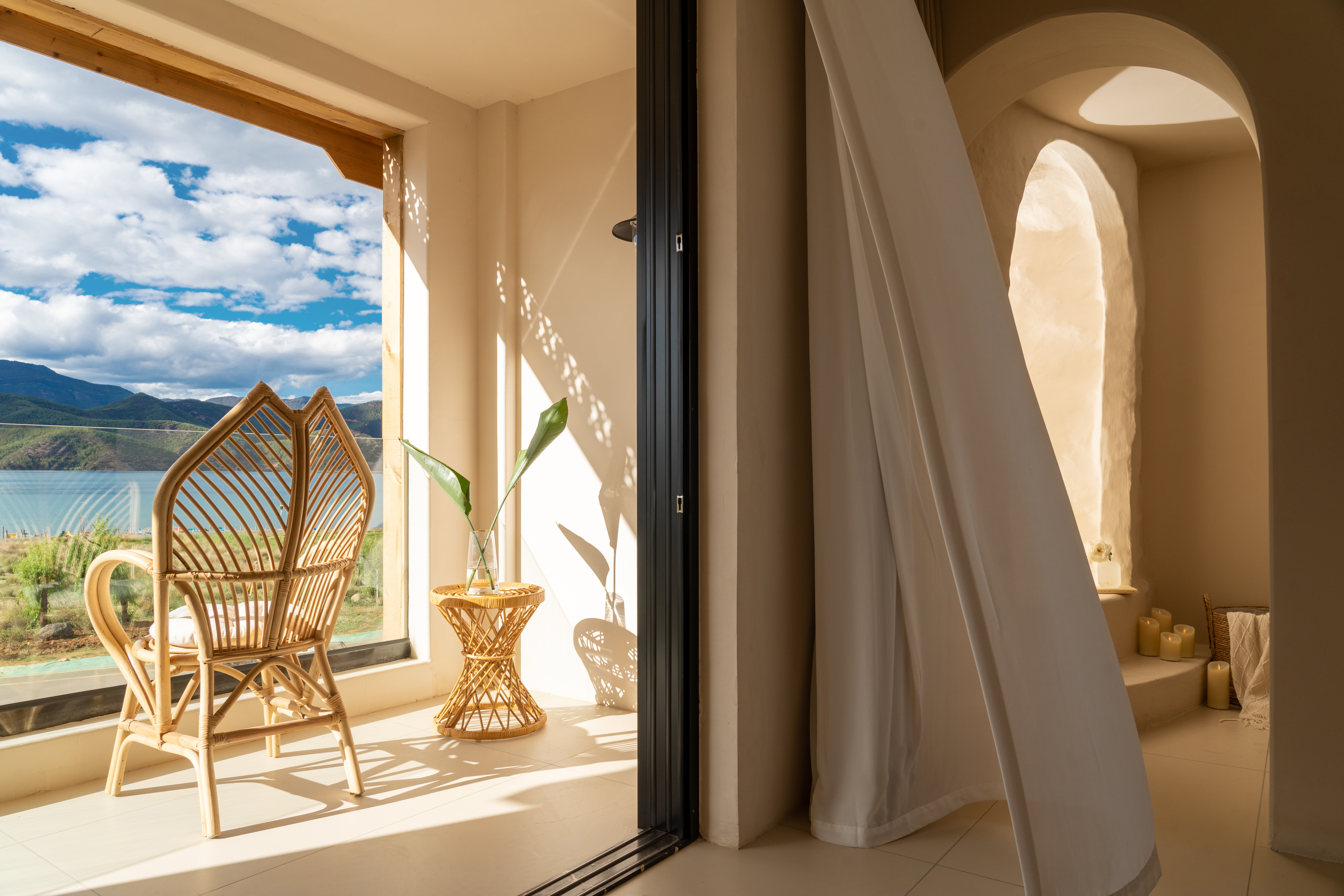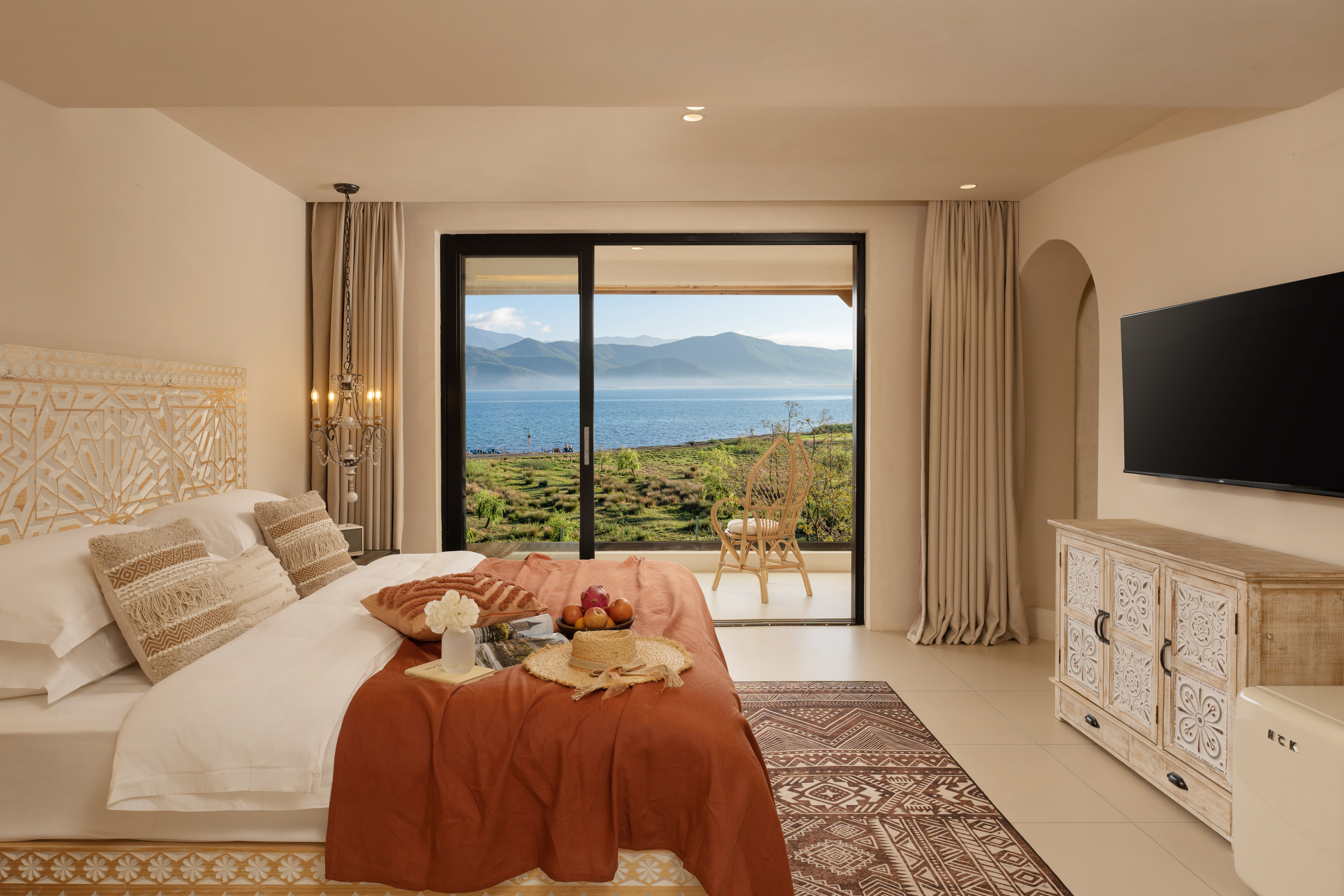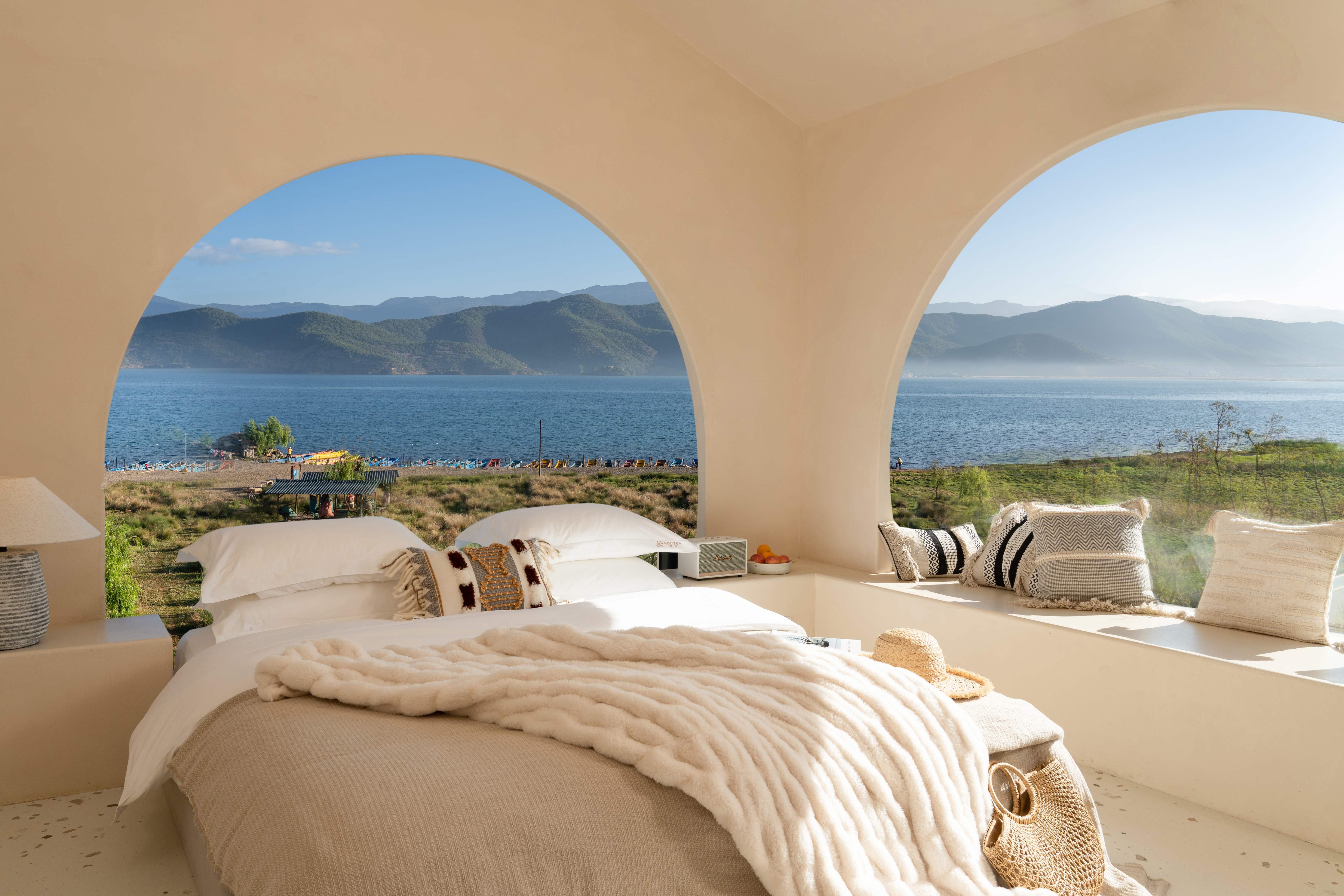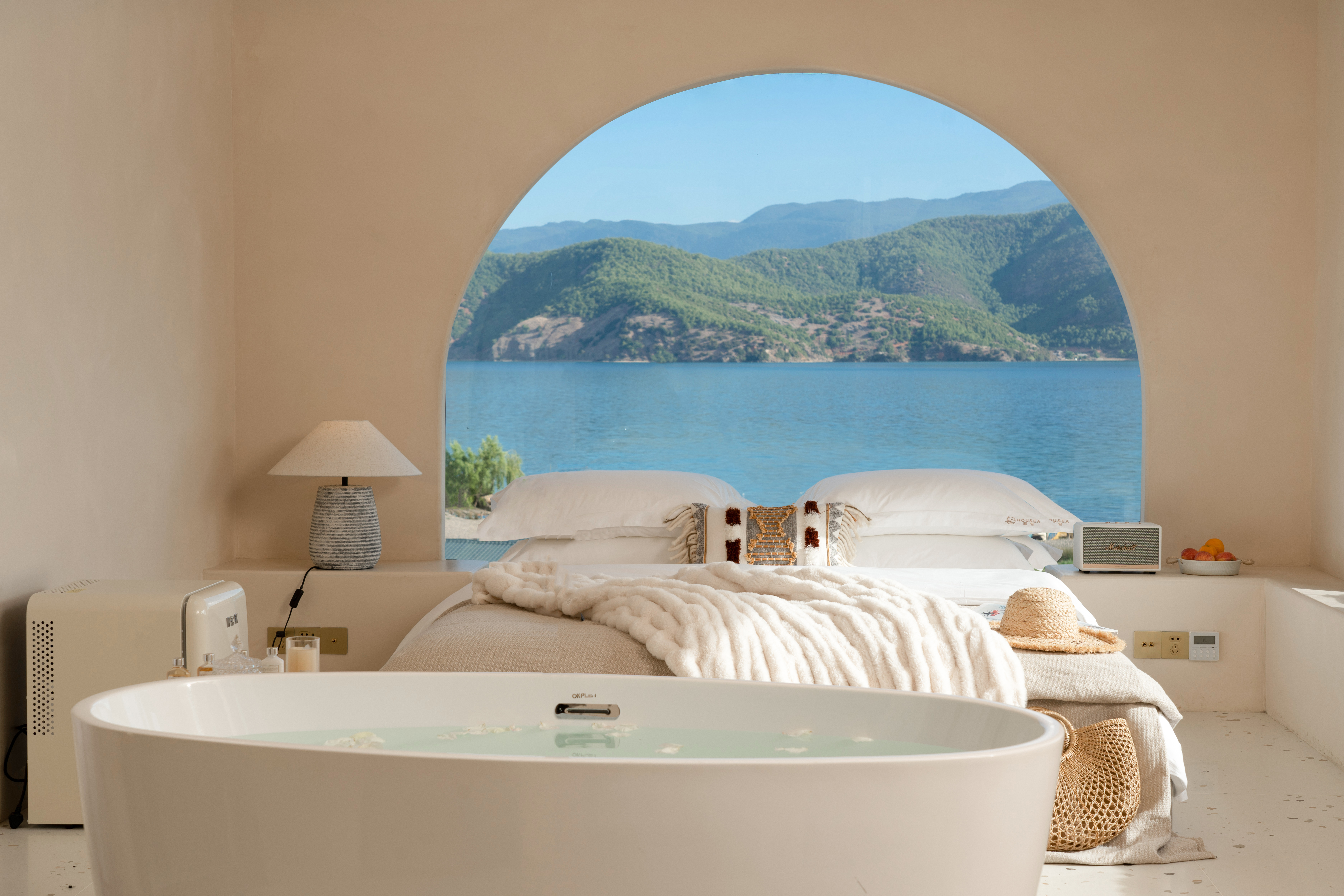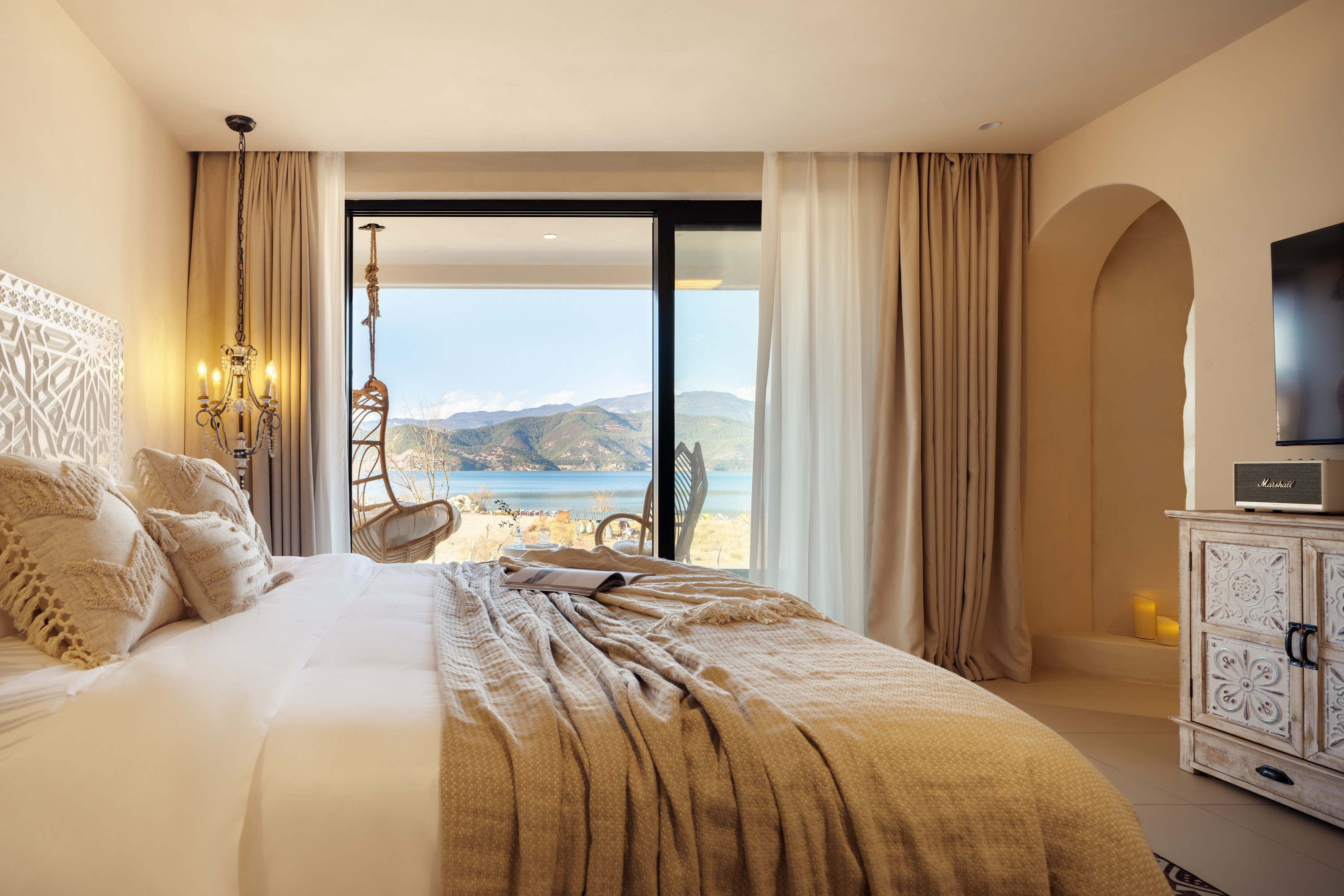 Rocky Mountain Glow 270 ° Lake-View Tub Double Bed Room With Starry Sky Ceiling&Convertible Leisure Area, Marshall Audio System