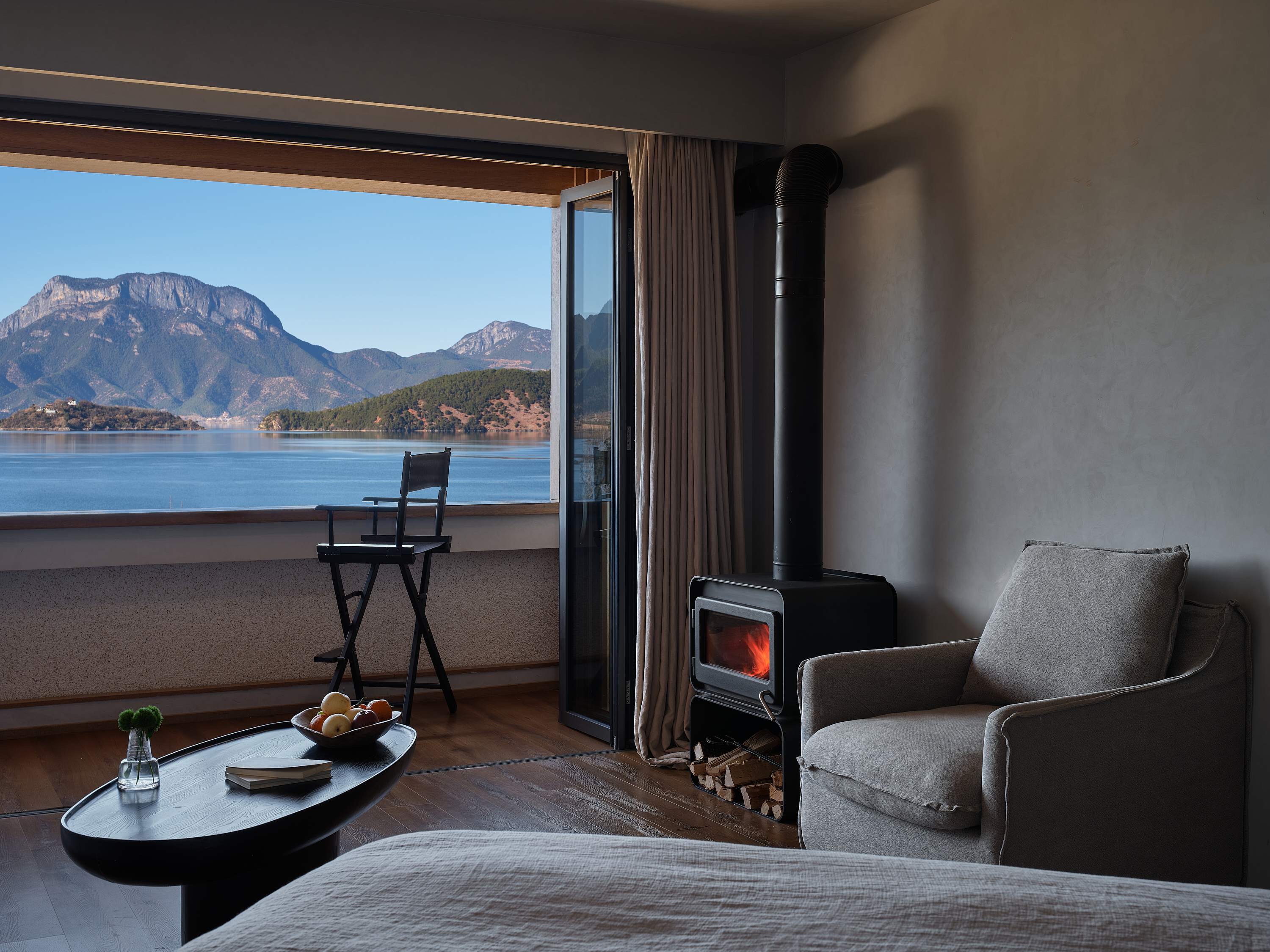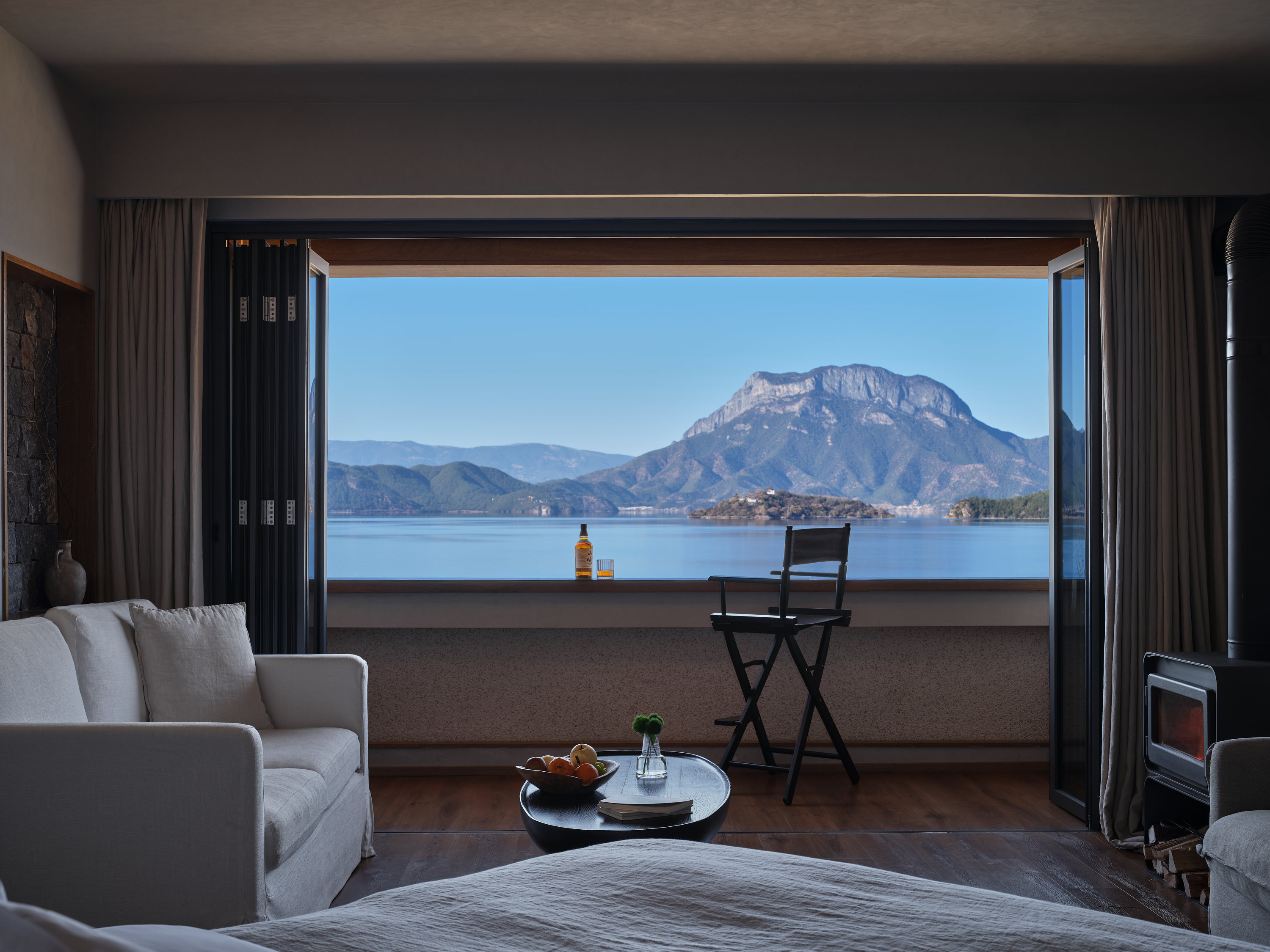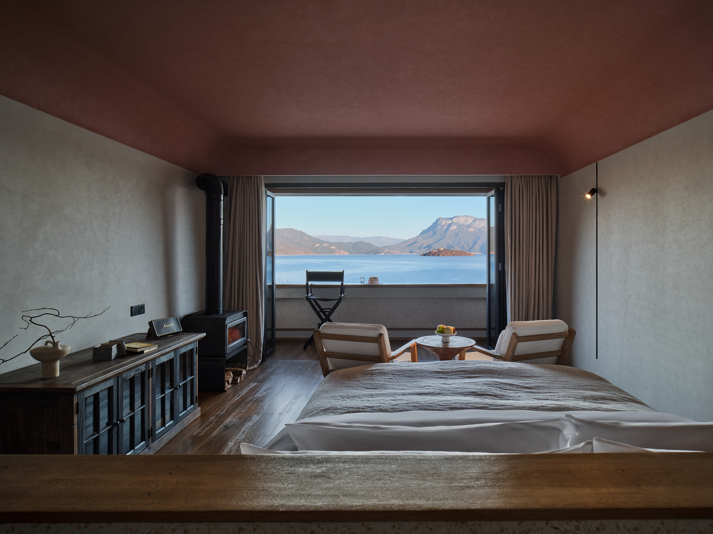 Mountain And Sea'Gu Ren Lai'Lake View Double Bed Room With Ink Painting Sofa-Ink Painting Frame-Whole House Floor Heating