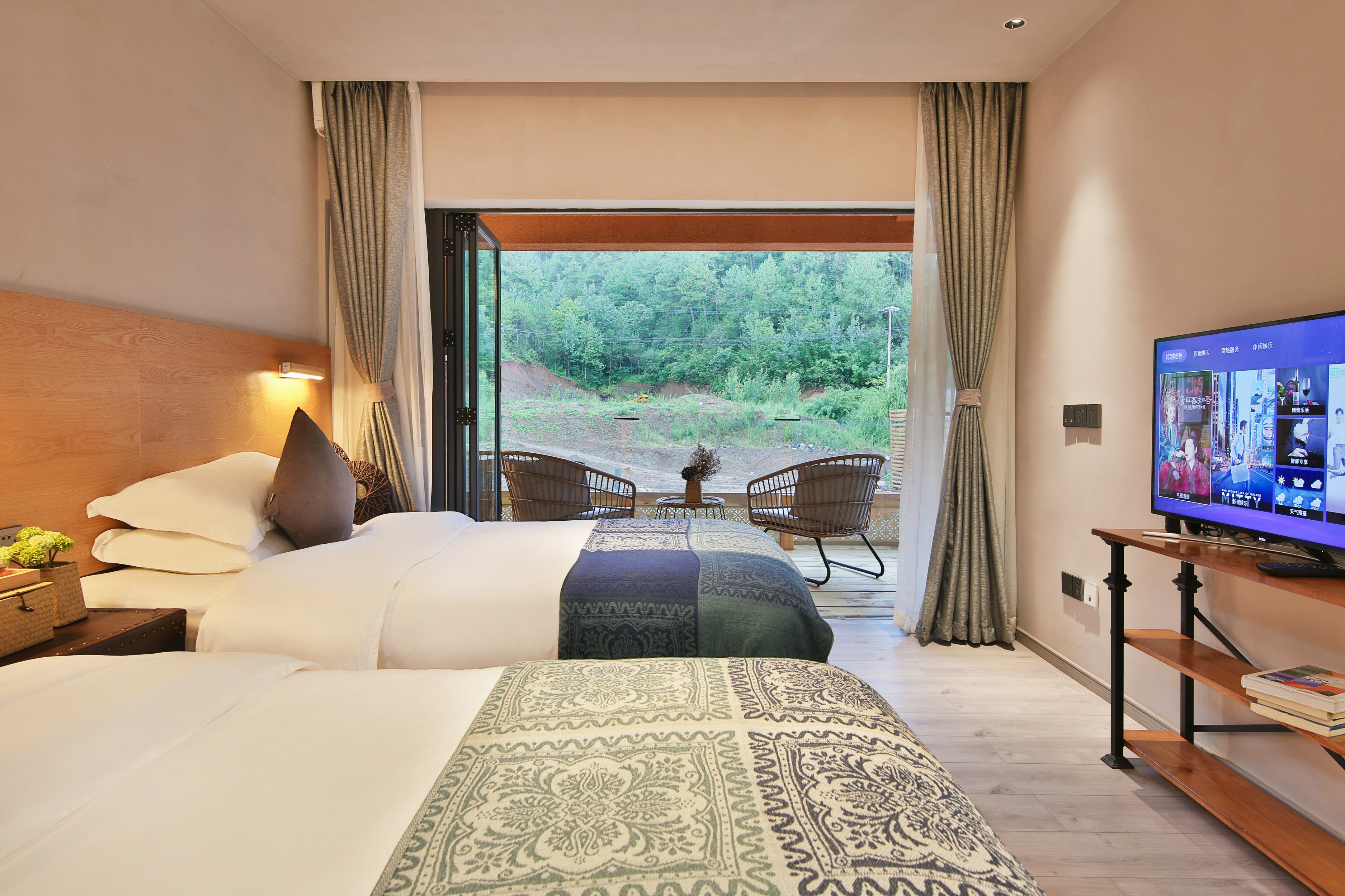 Jianshan · Terrace Twin Room With 180 ° Mountain Scenery And Electric Curtains