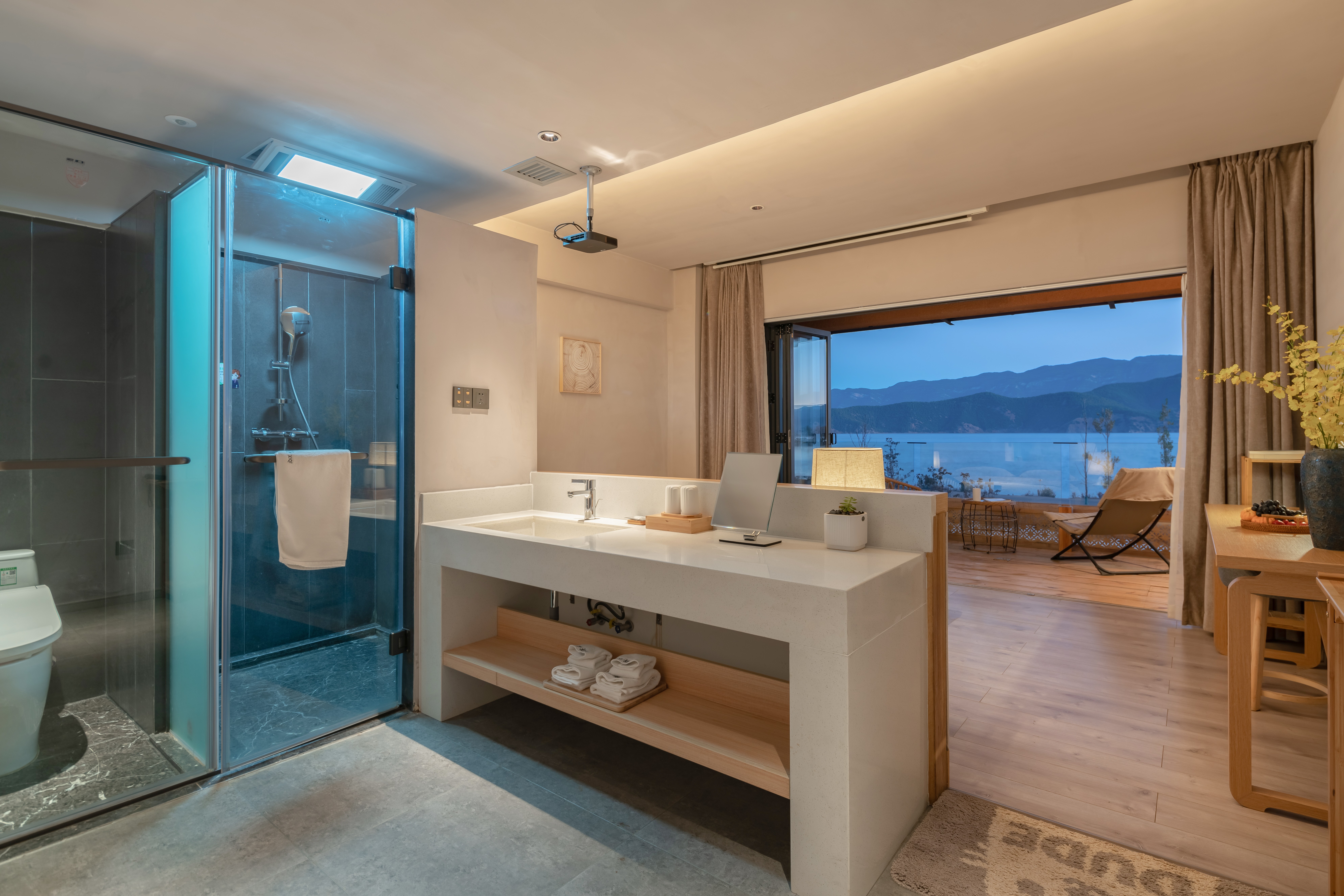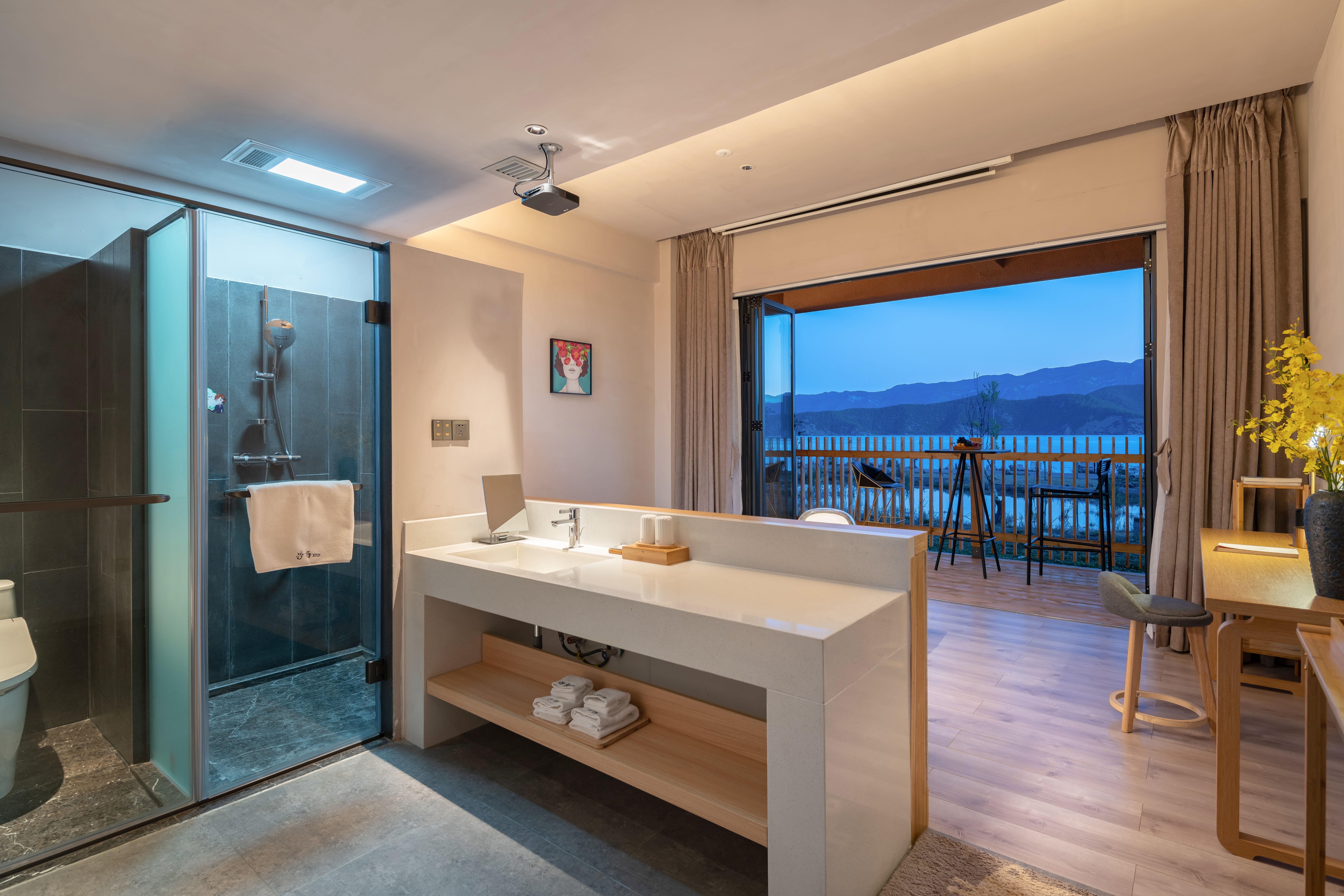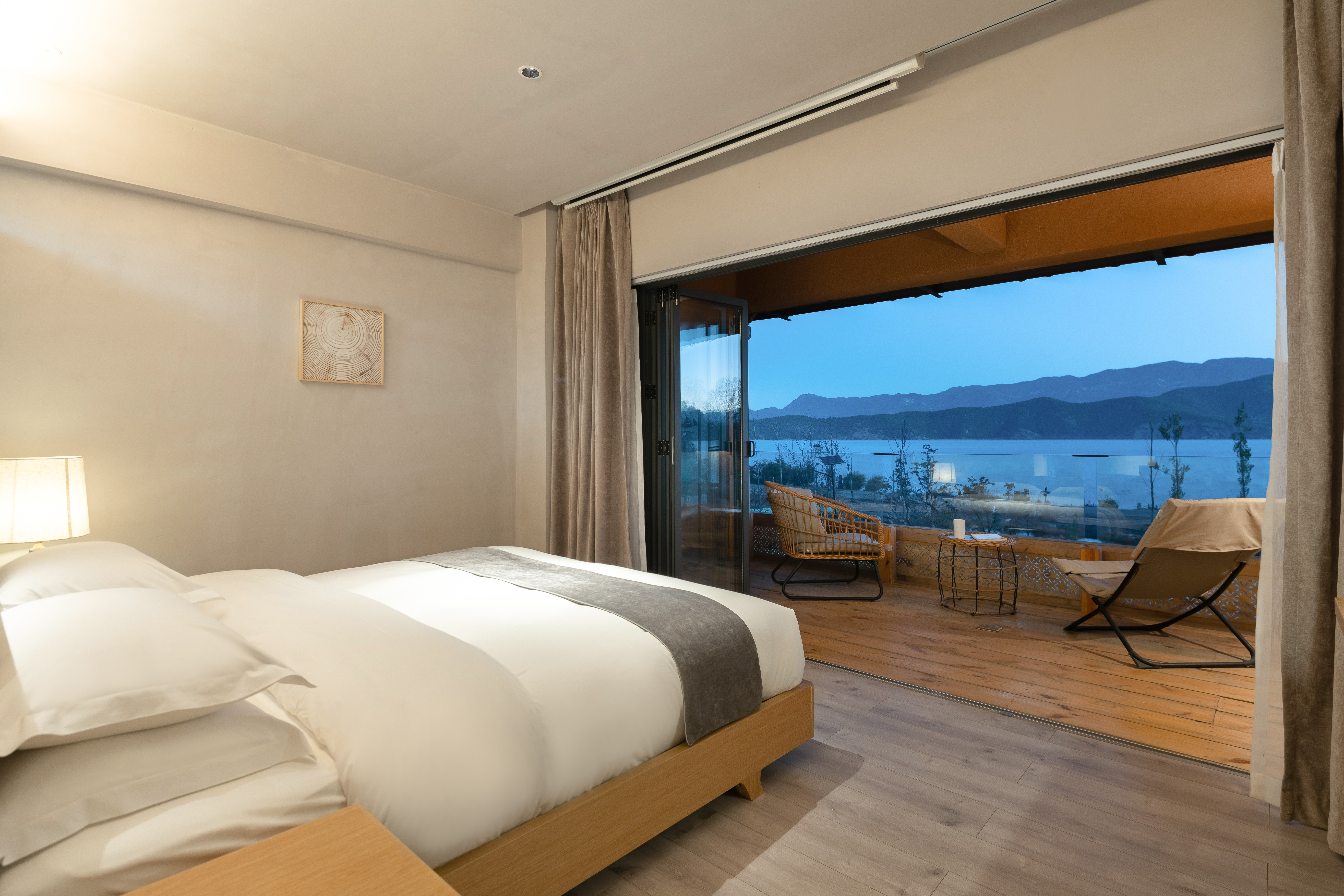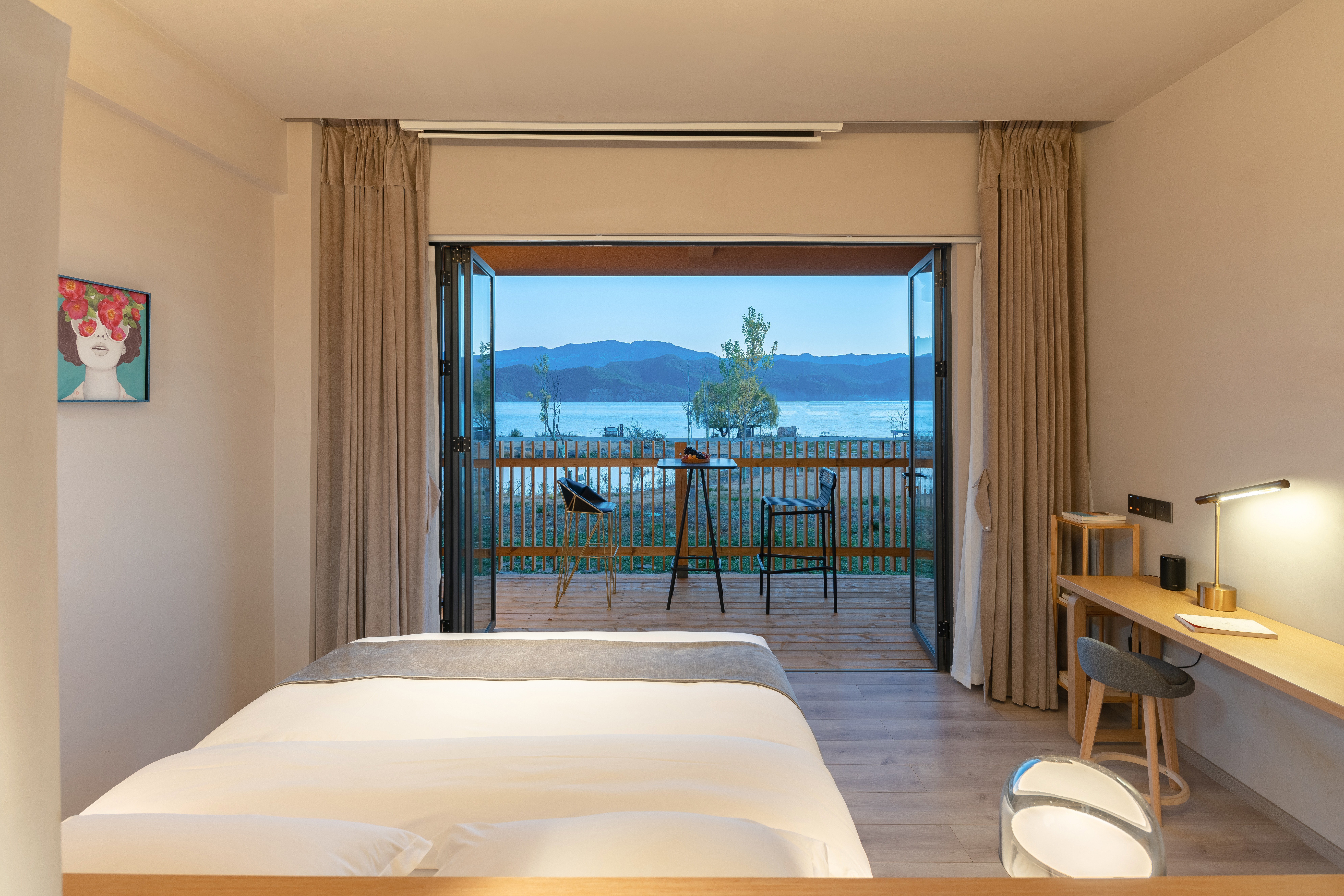 Hu Zhong Zuo · Zero Pressure Balcony Double Bed Room With 180 ° Lake-View Leisure Area And 100-Inch Screen