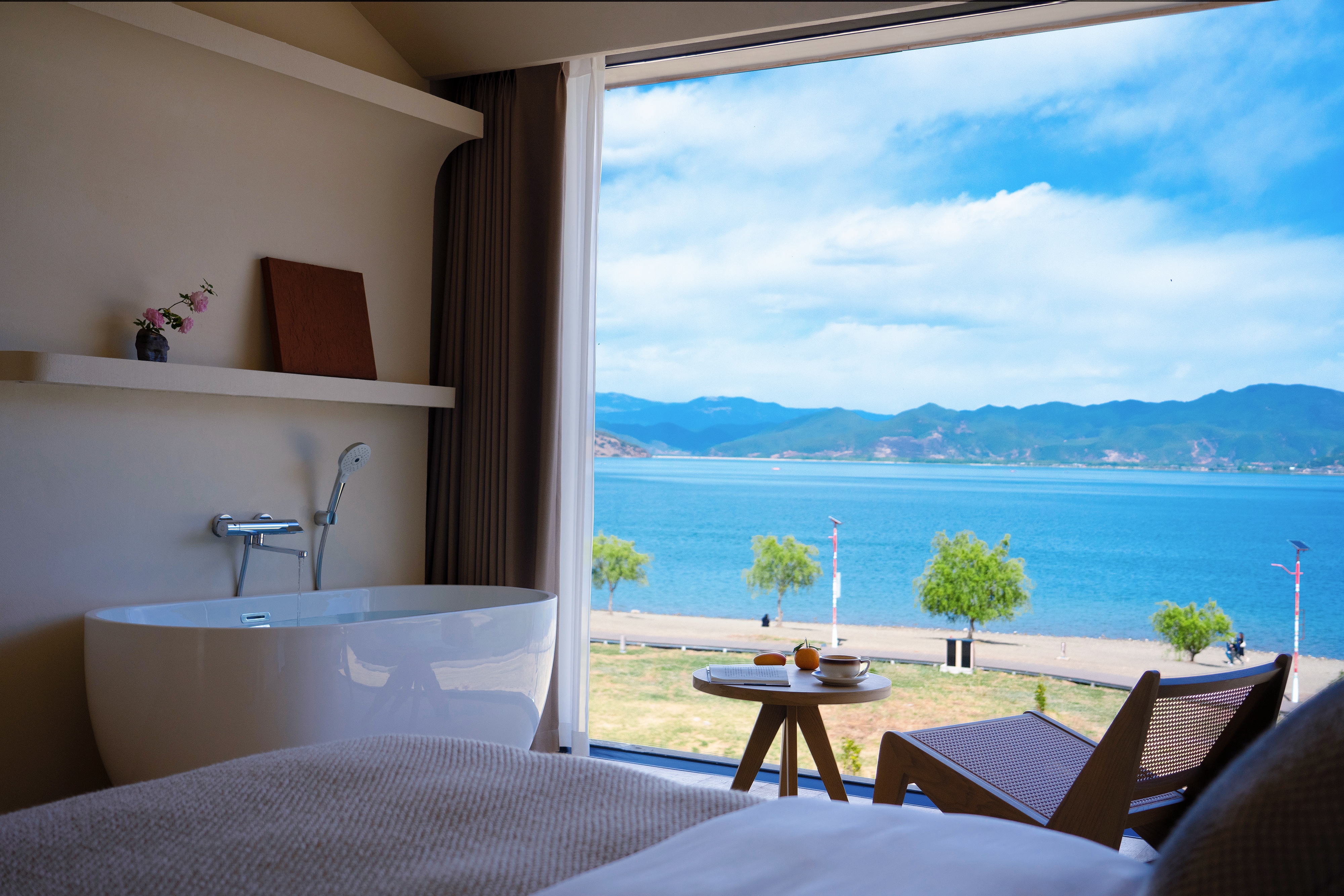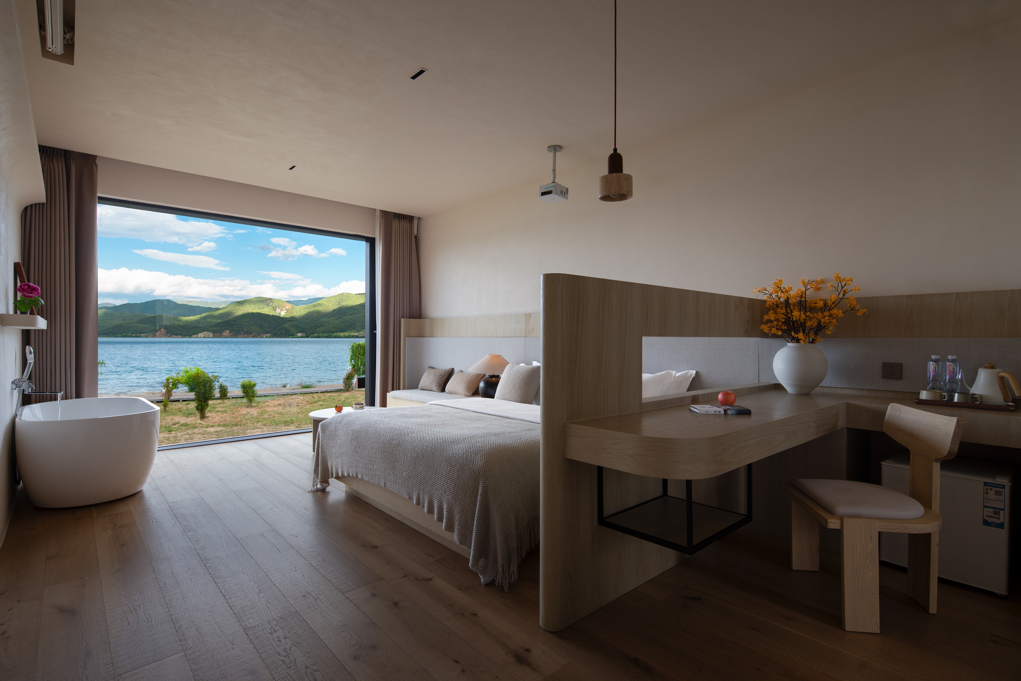 Nianyi Unobstructed Sunrise Lake-View Double Bed Room With Oxygen Supply, Central Air Conditioning, Laser Projection, And Smart Guest Control