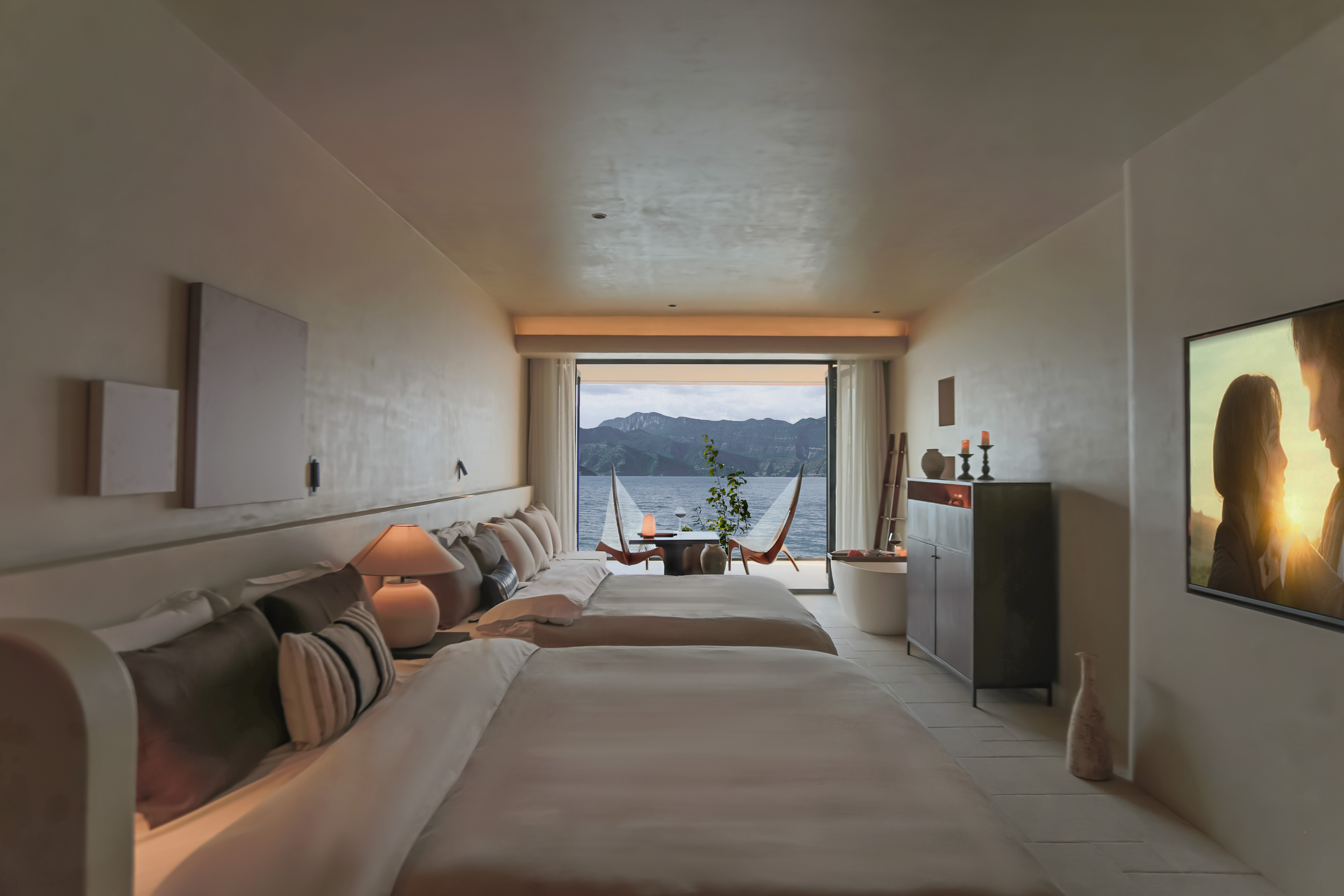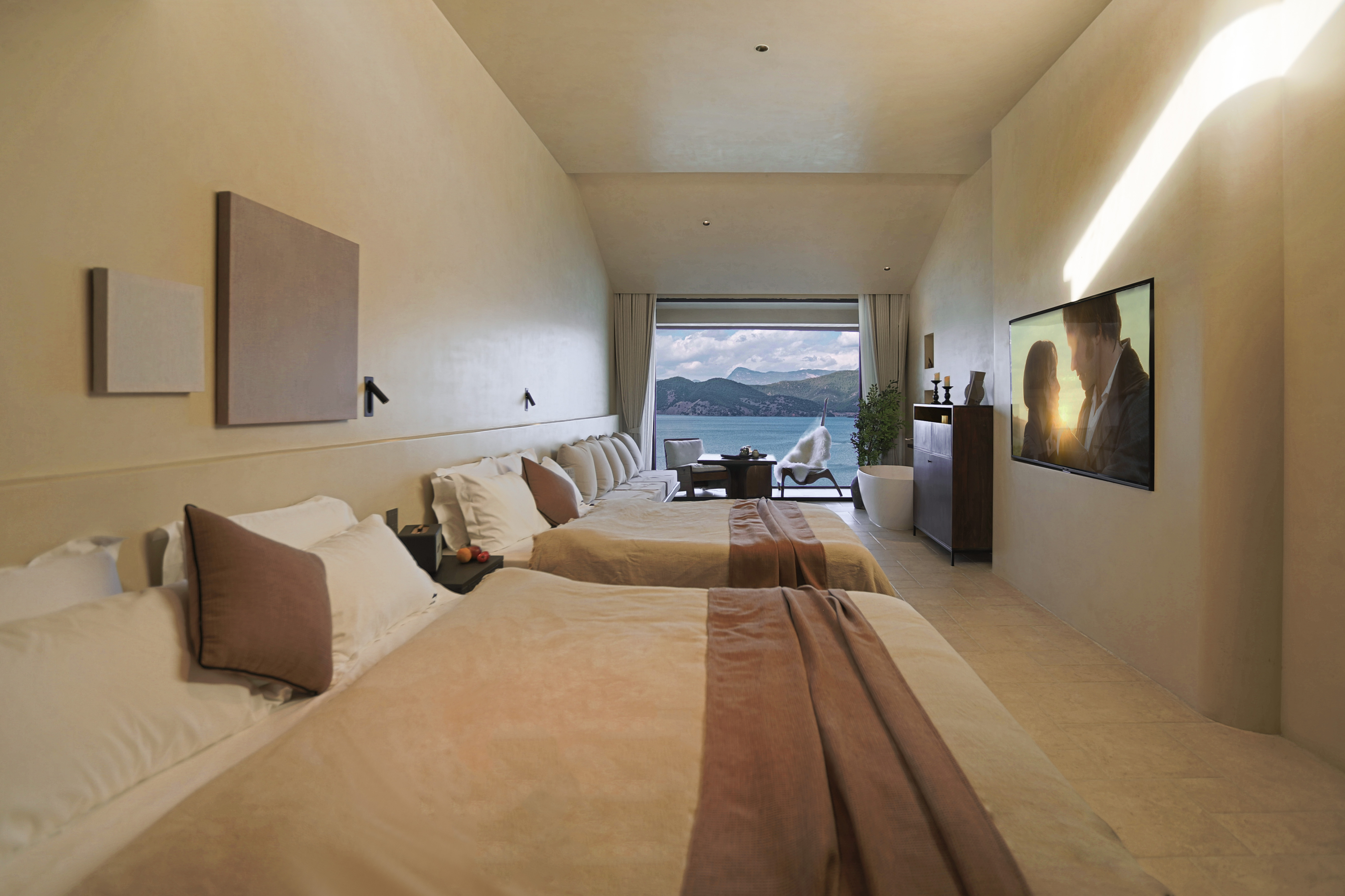 见山~至尊湖景深汤露台家庭双大床房·全屋地暖