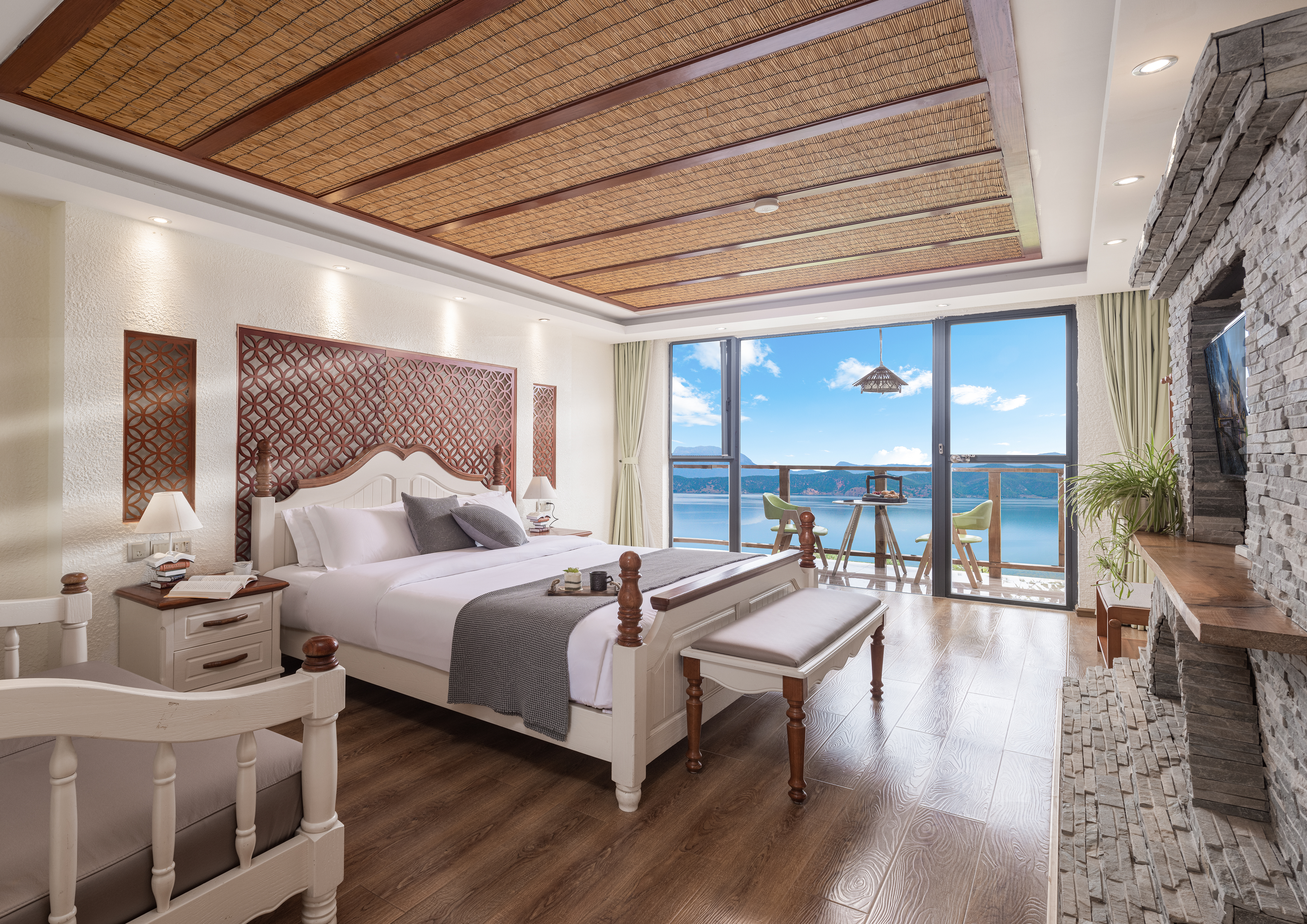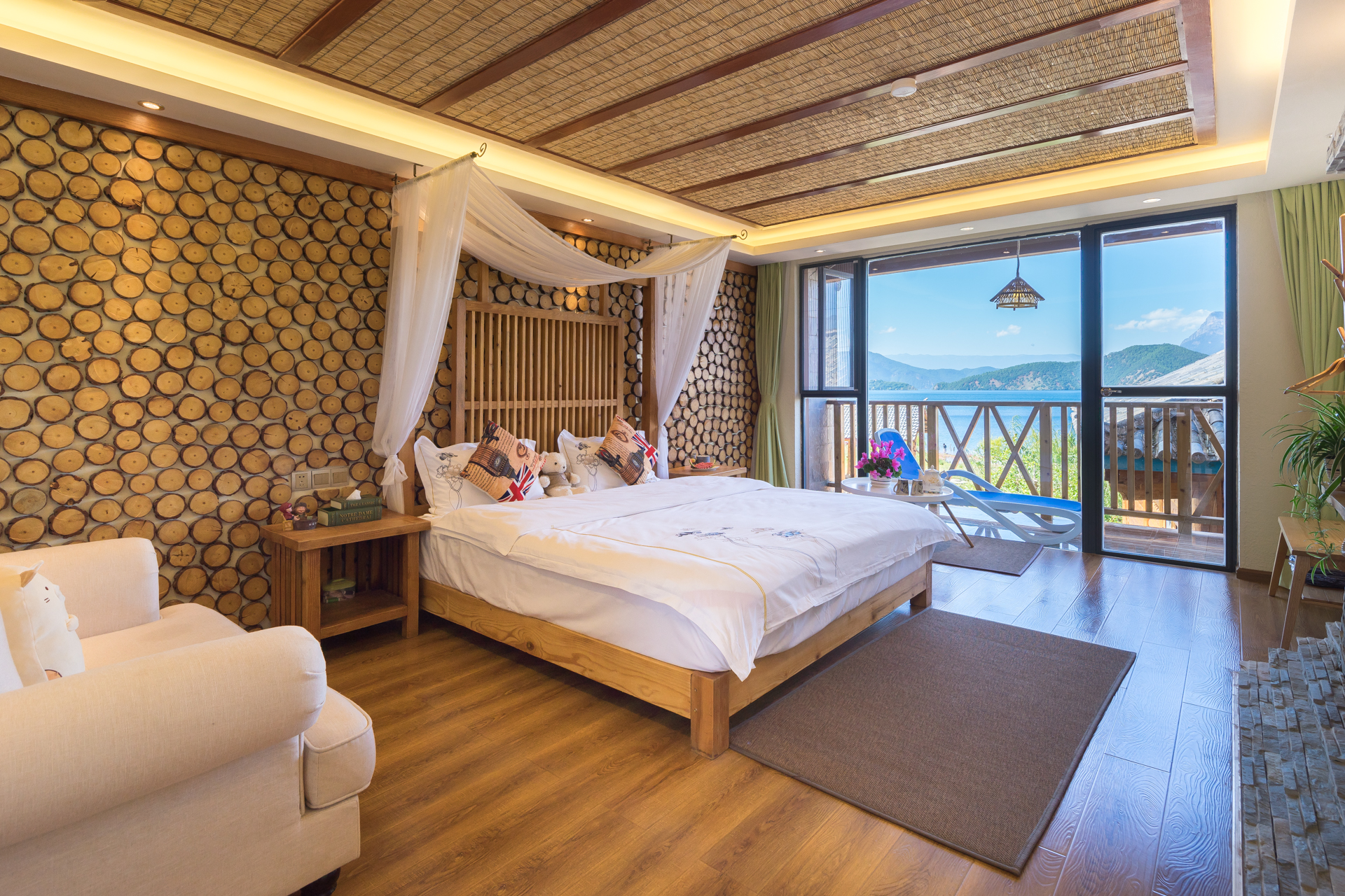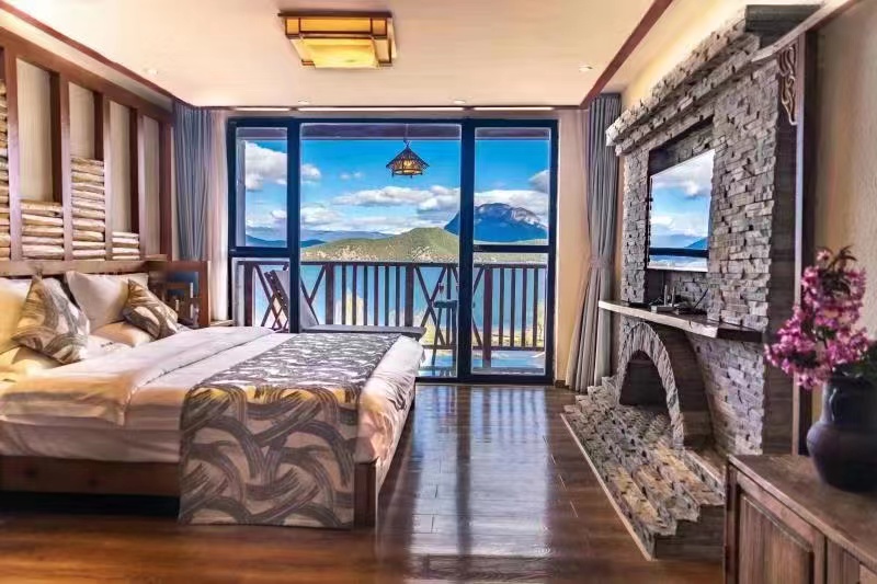 豪華湖景大床房(直觀湖景+休閑沙發+躺椅+觀景露台)