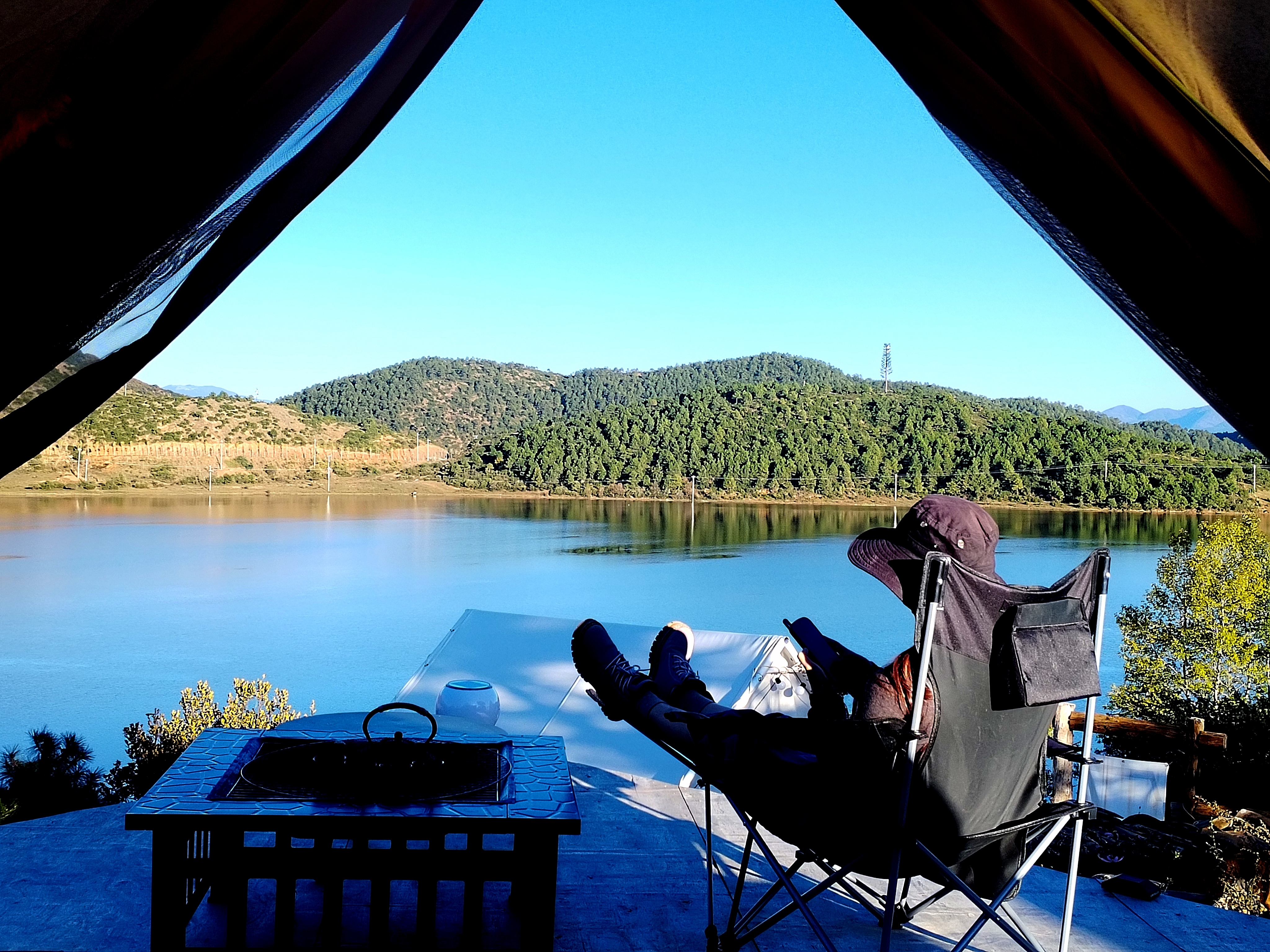 月亮海-夏諾多吉·全湖景帳篷恆温圓形水床房-真火取暖爐