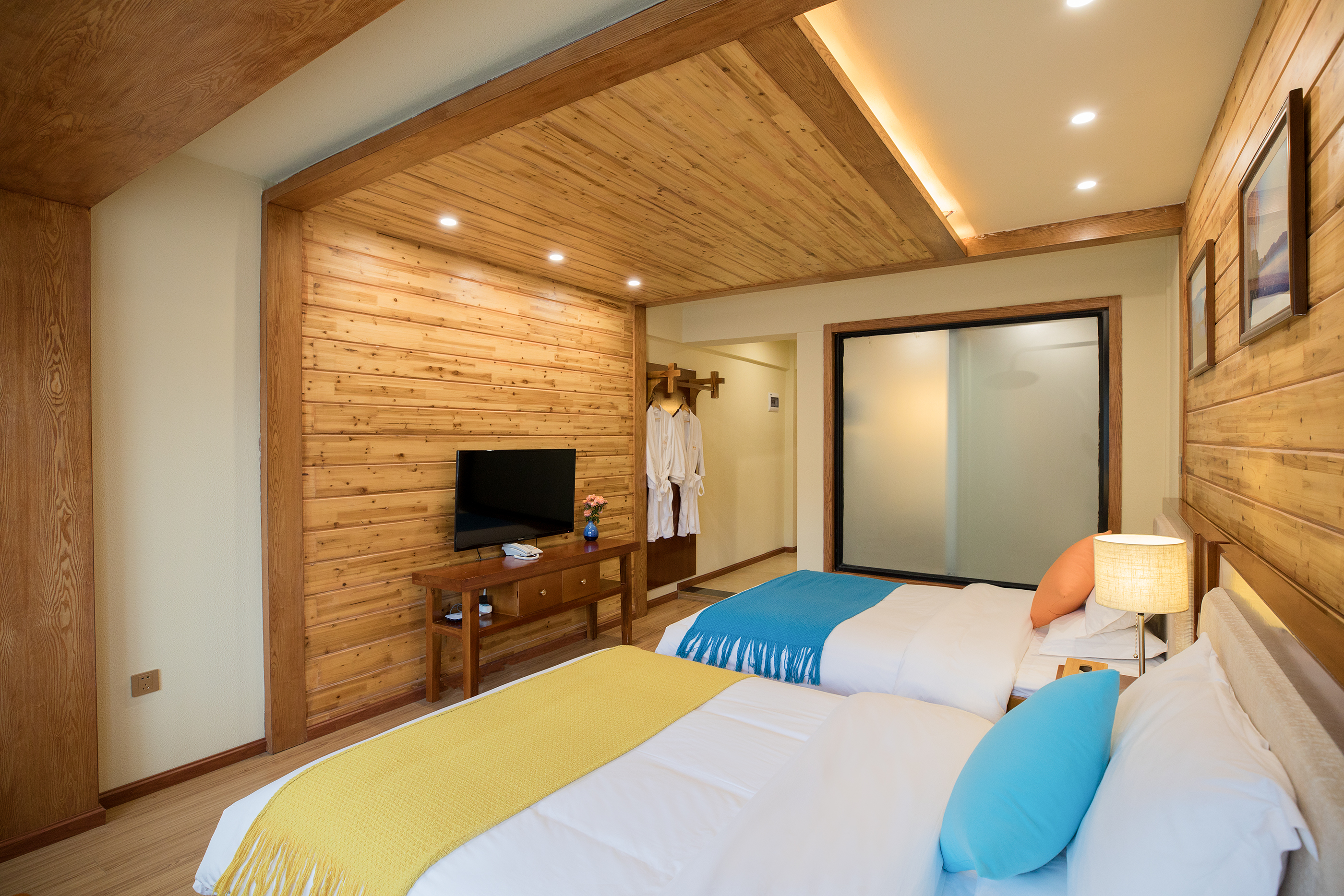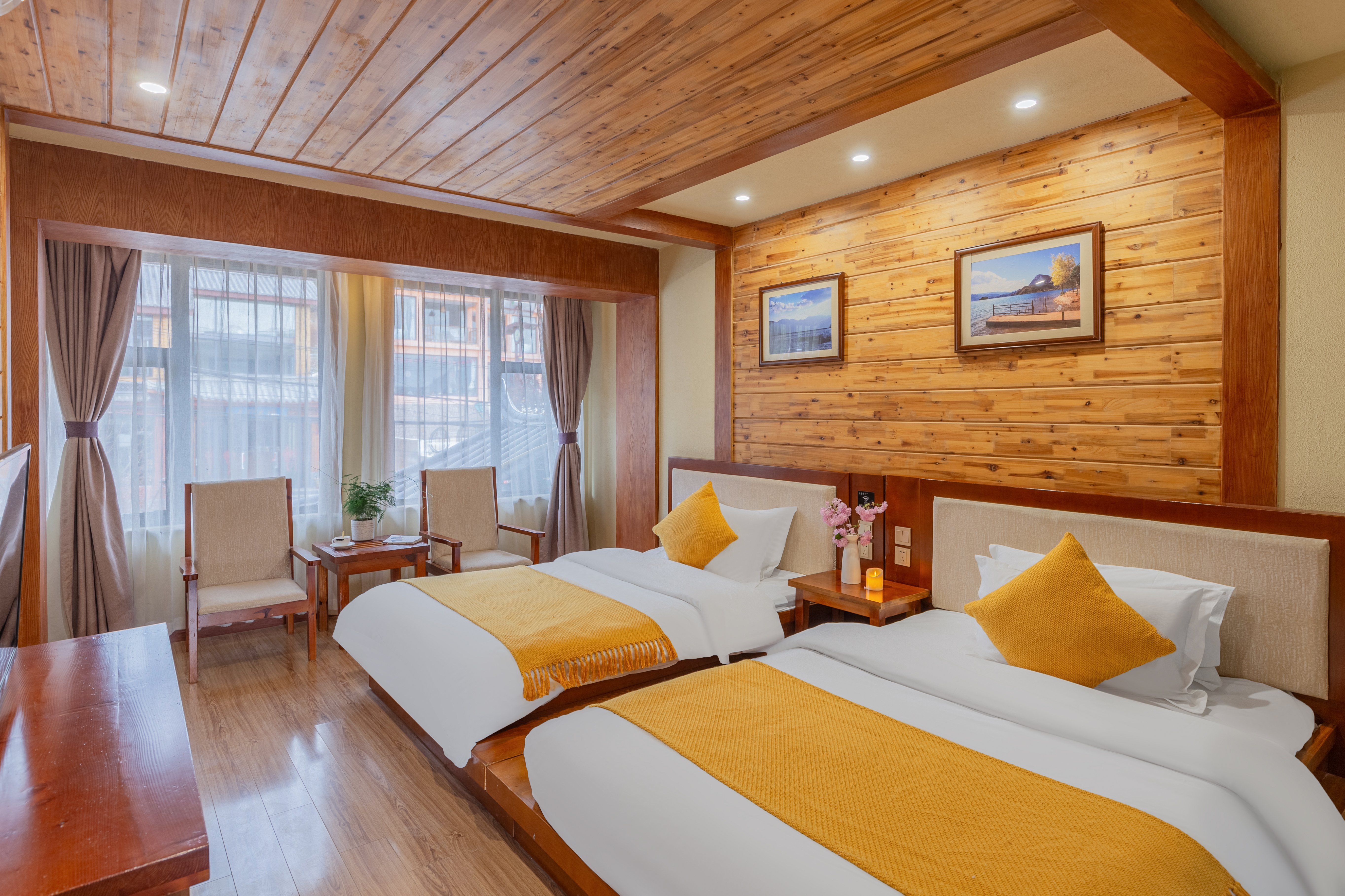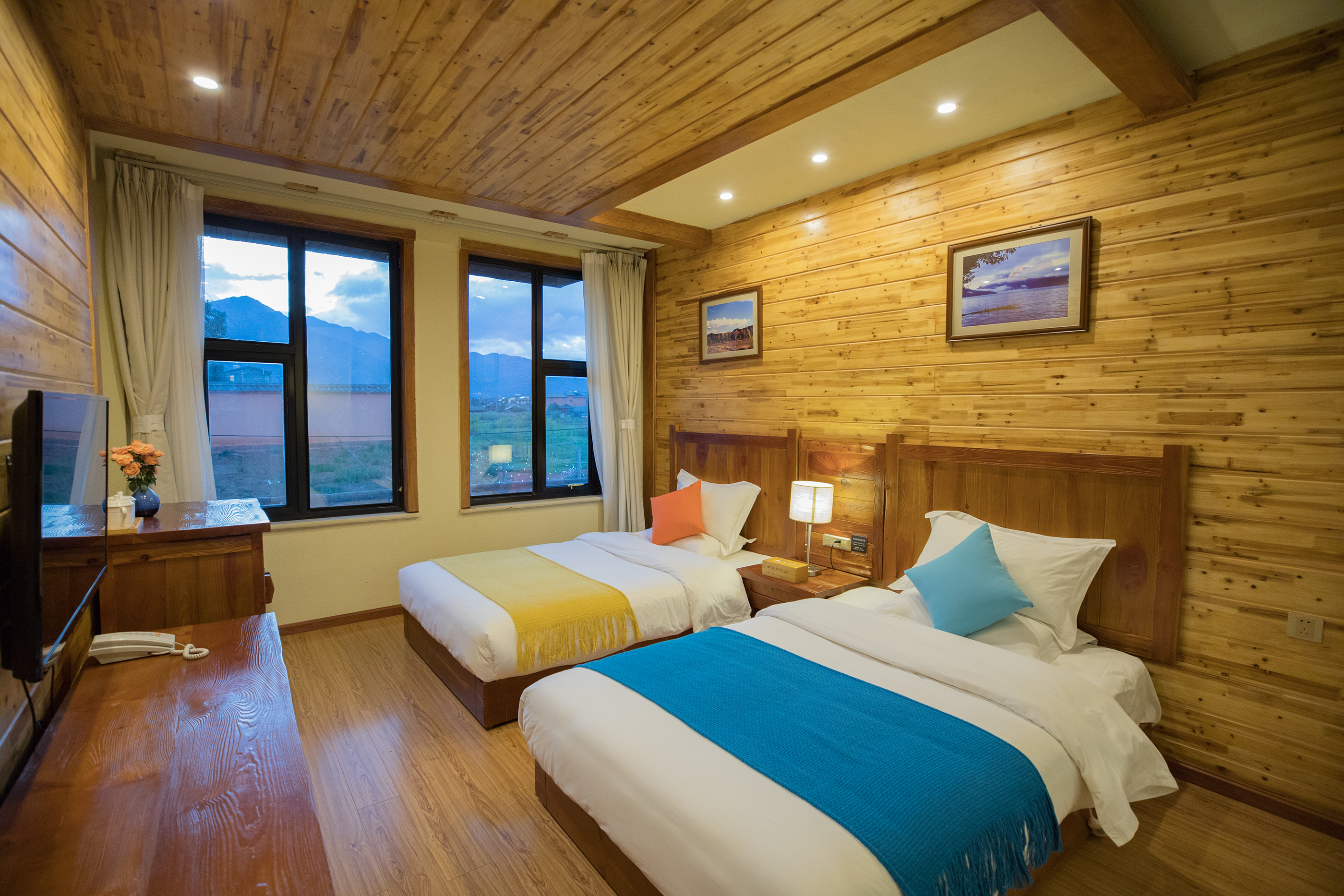 山景陽光雙床房(空調+加濕器+摩梭原木風)