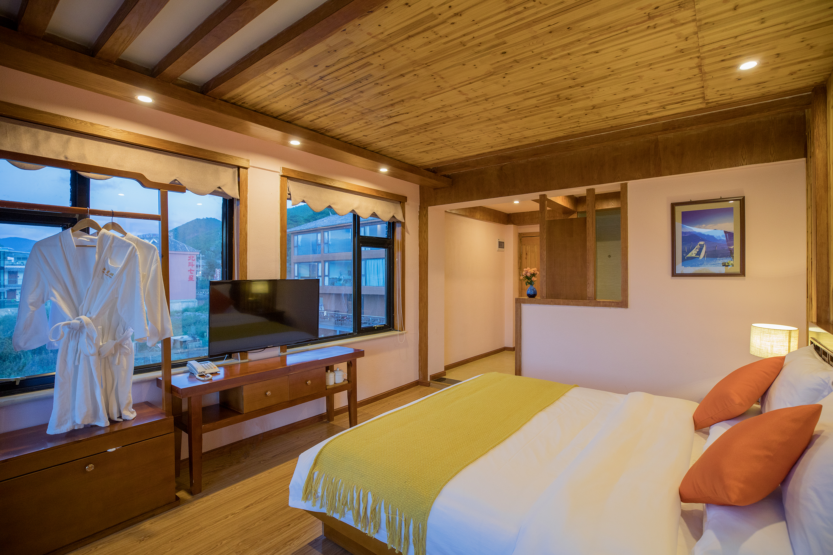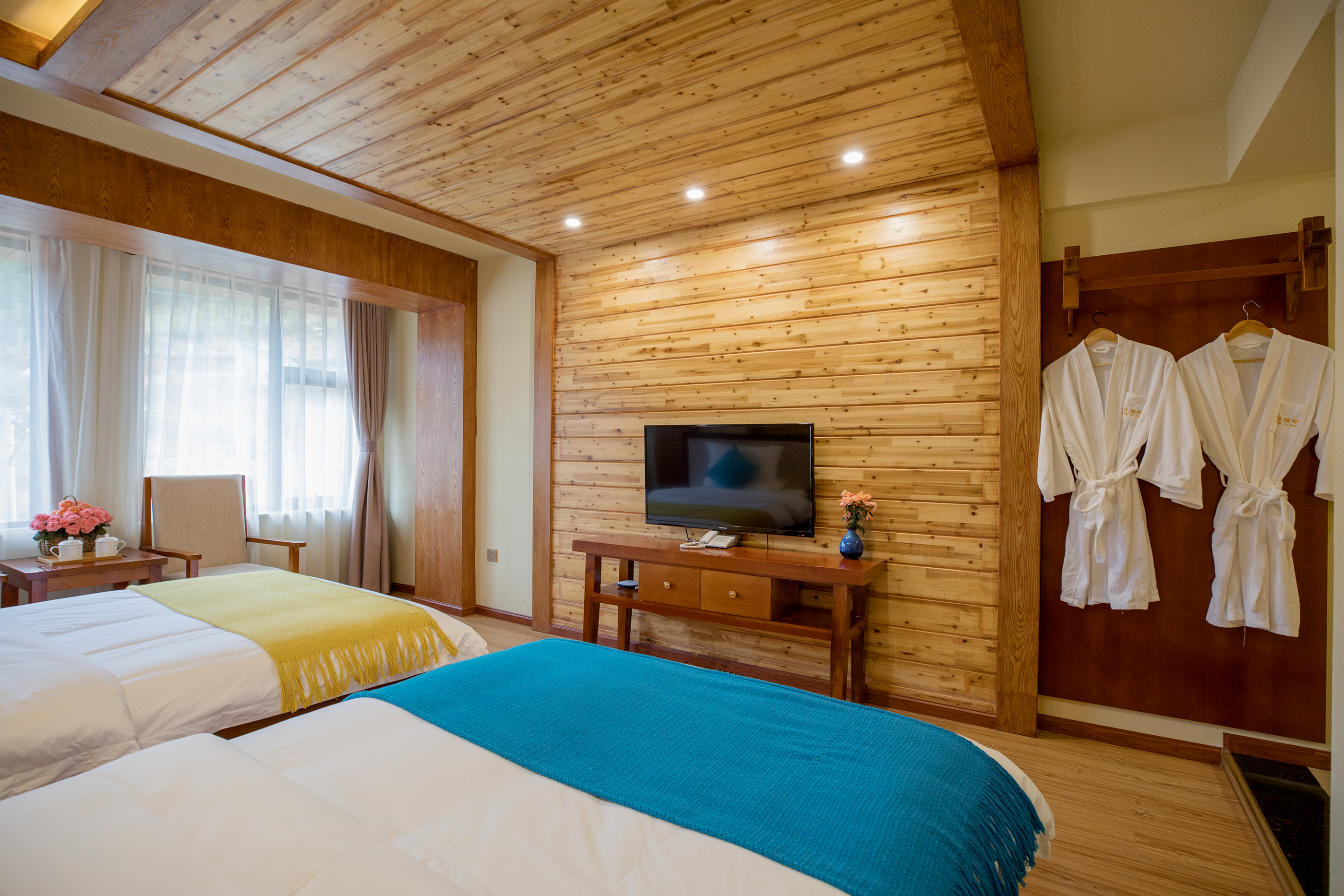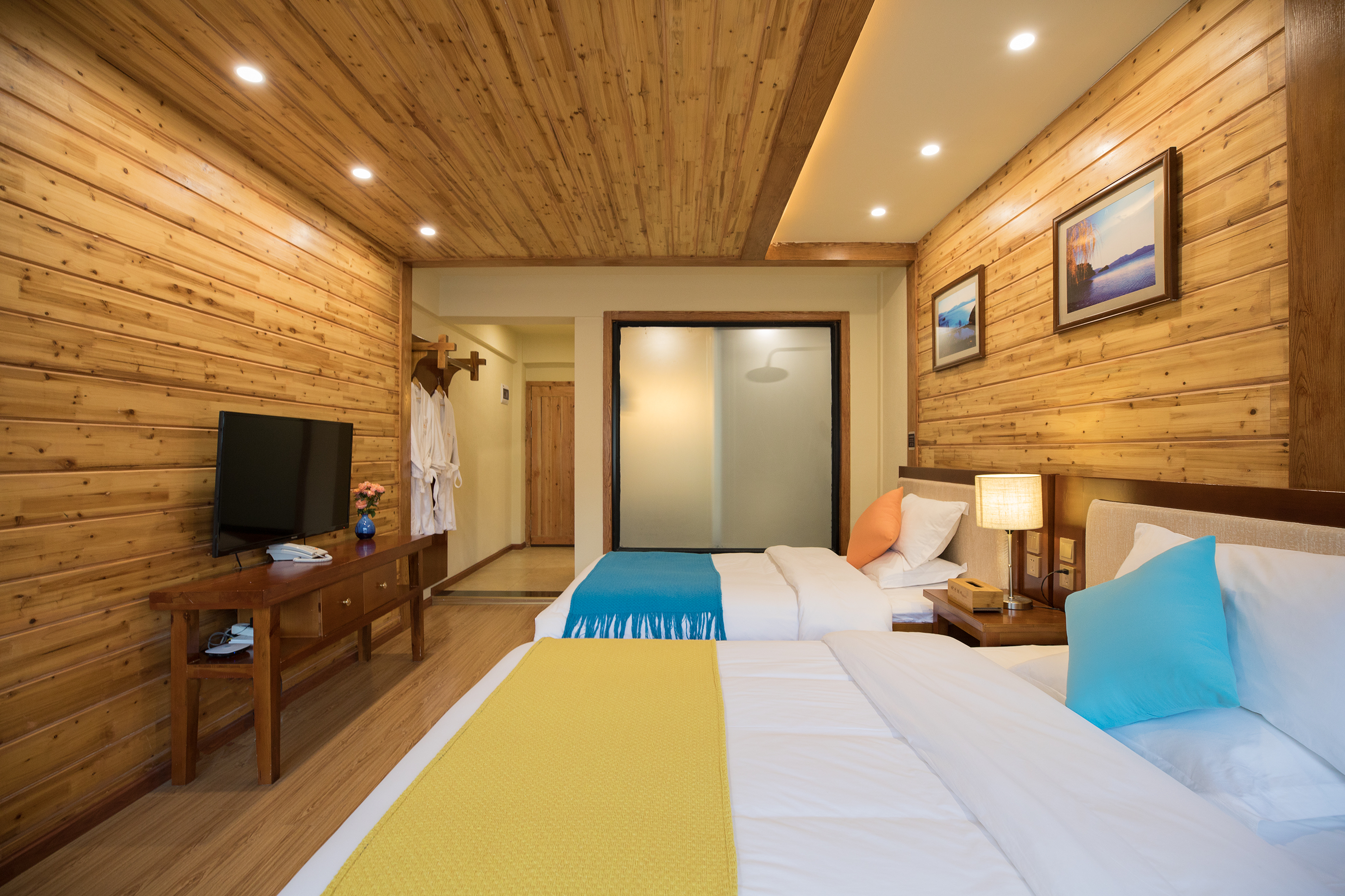 山景陽光雙床房(空調+加濕器+摩梭原木風)