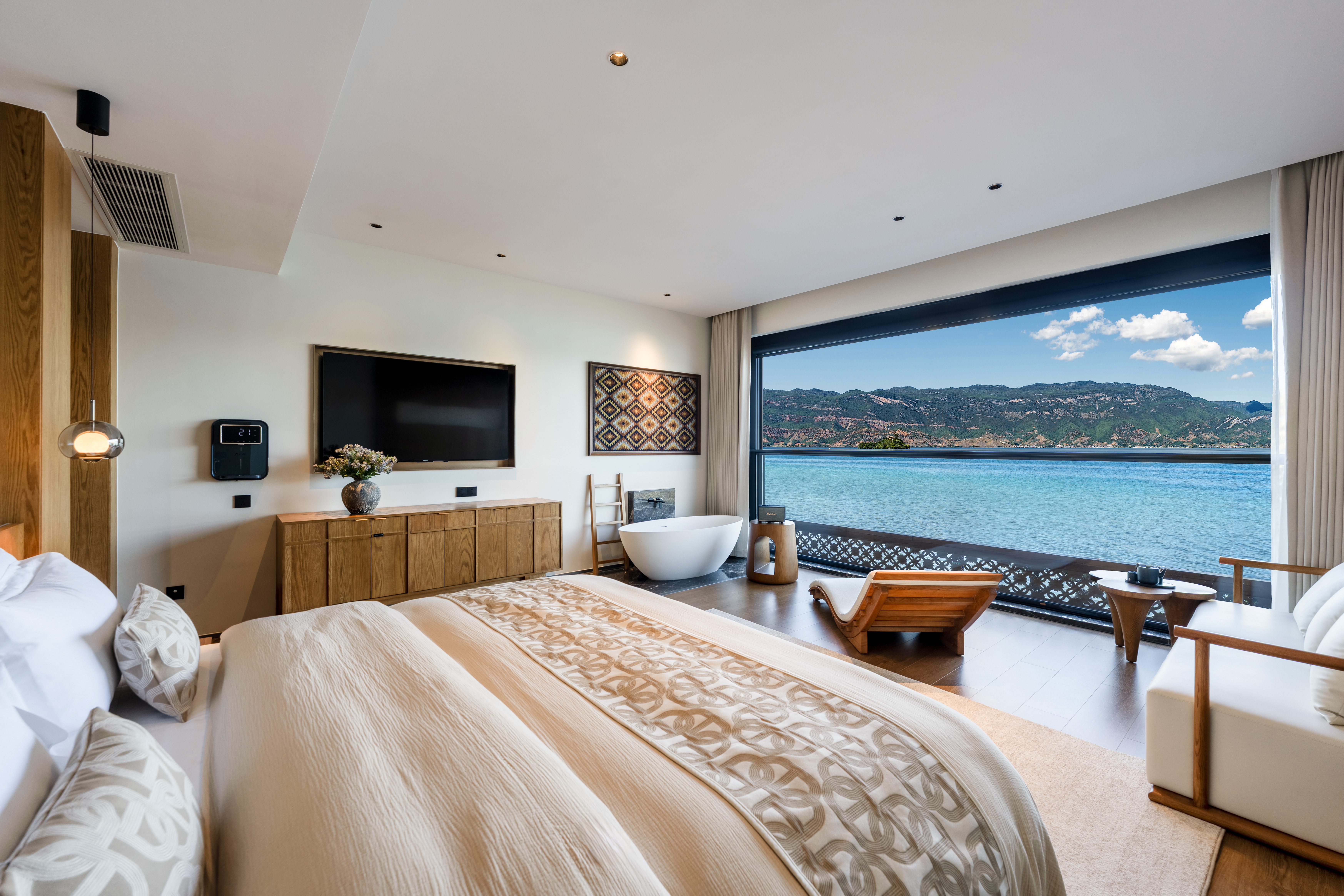 长风云渡丨一线湖景大床房丨地暖+马歇尔音响+智能客控