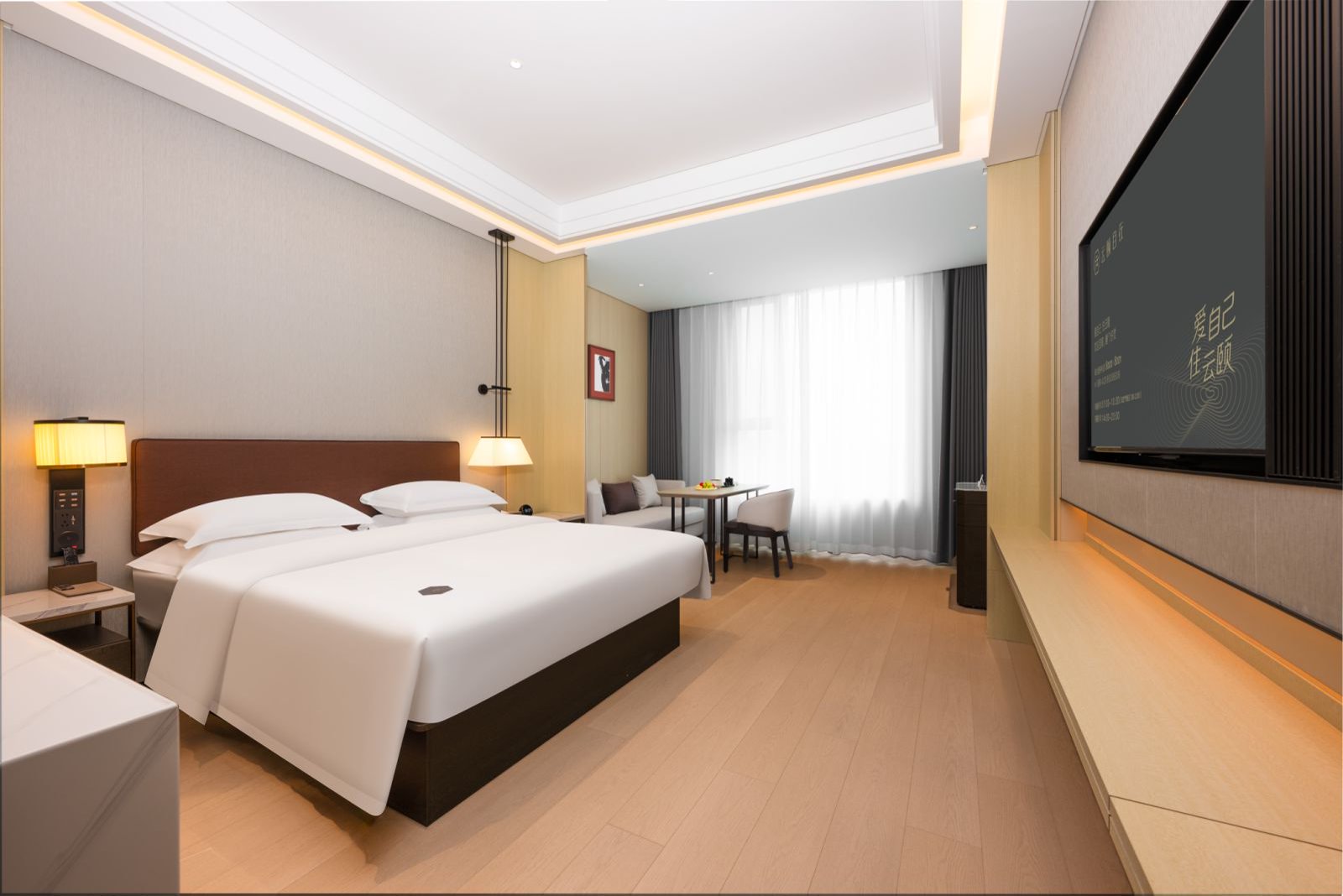 高级大床房+智能客控+静谧空间+城市美景