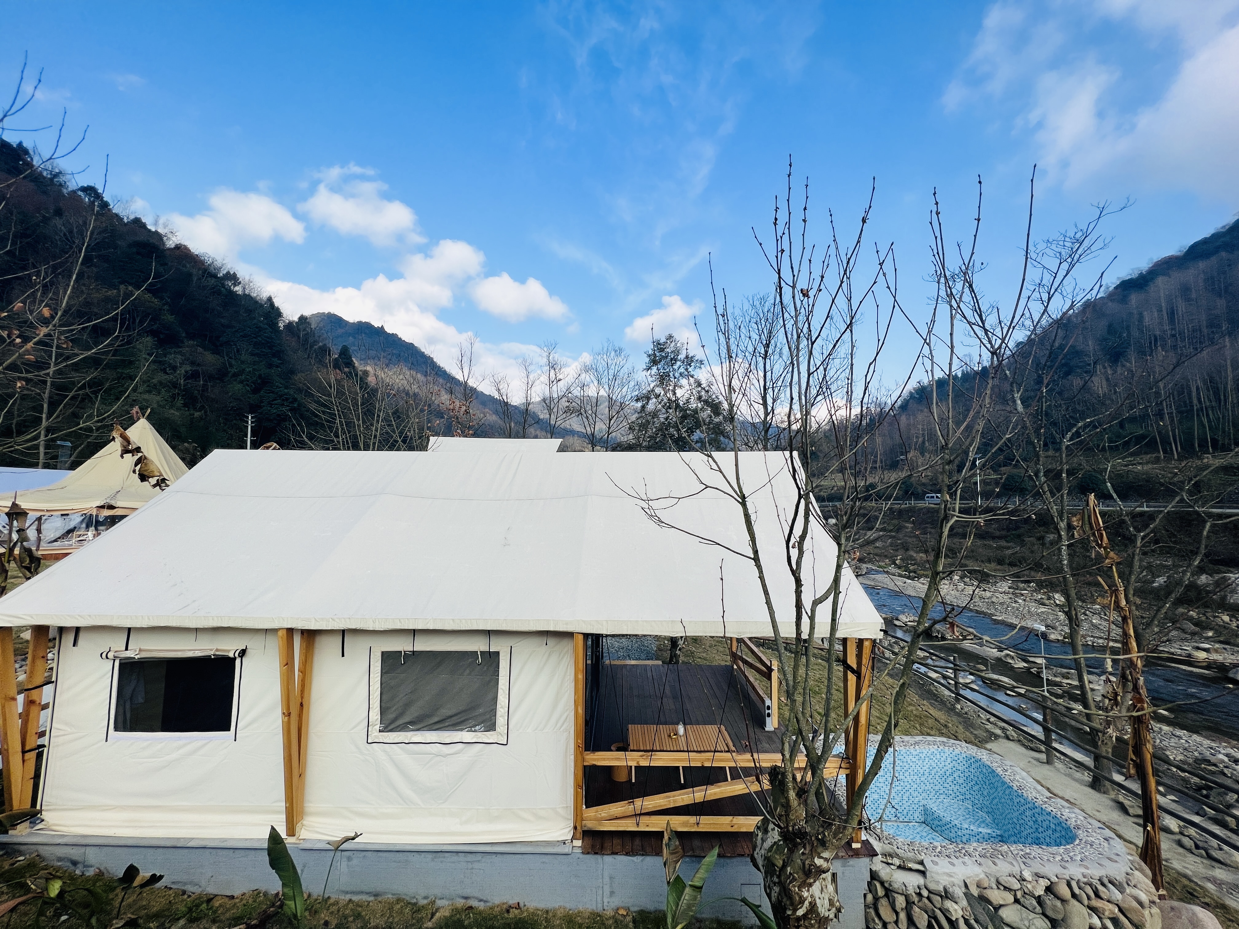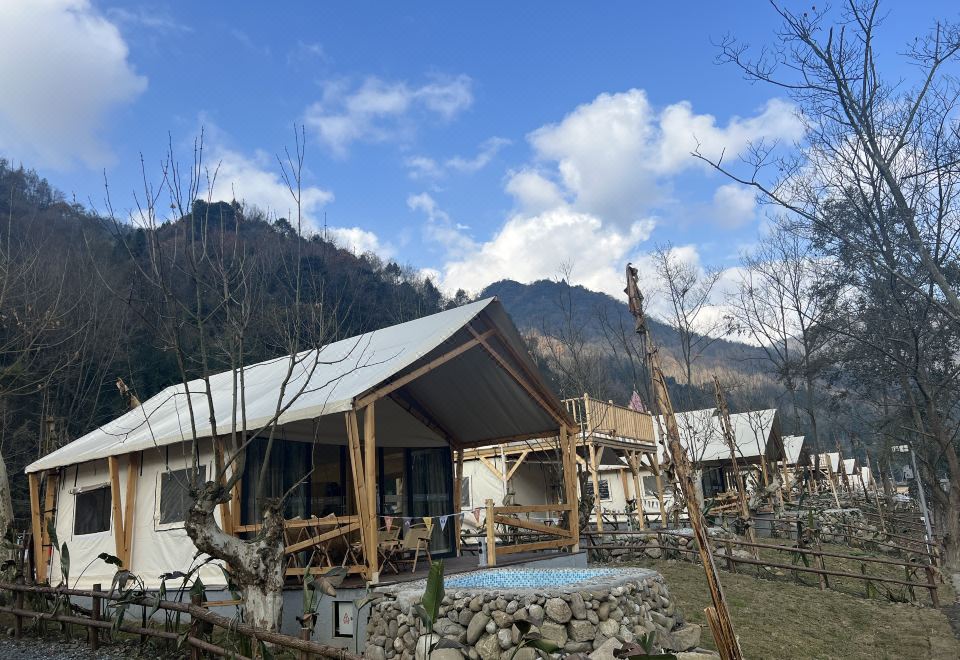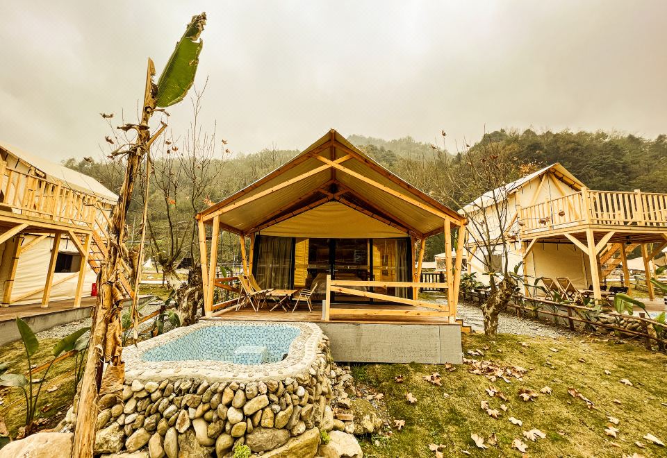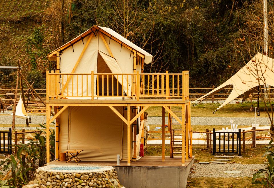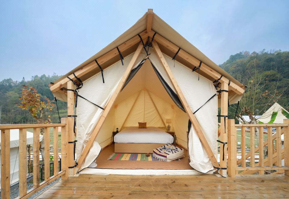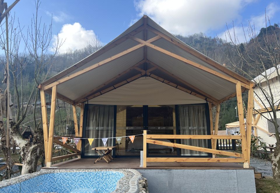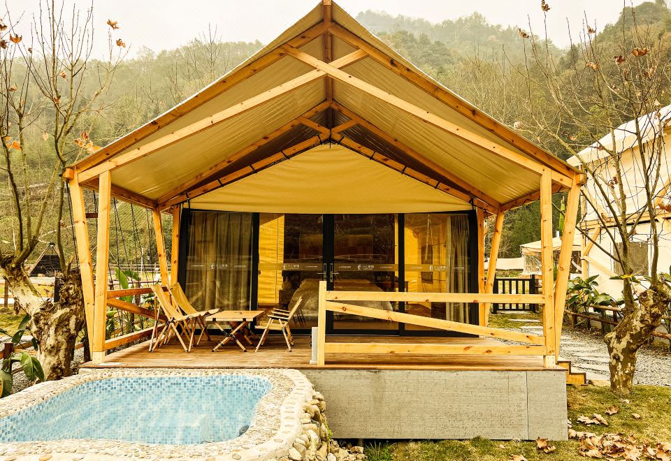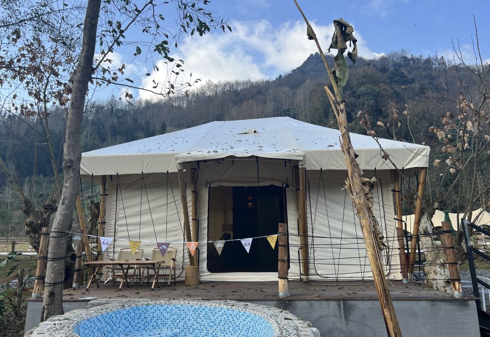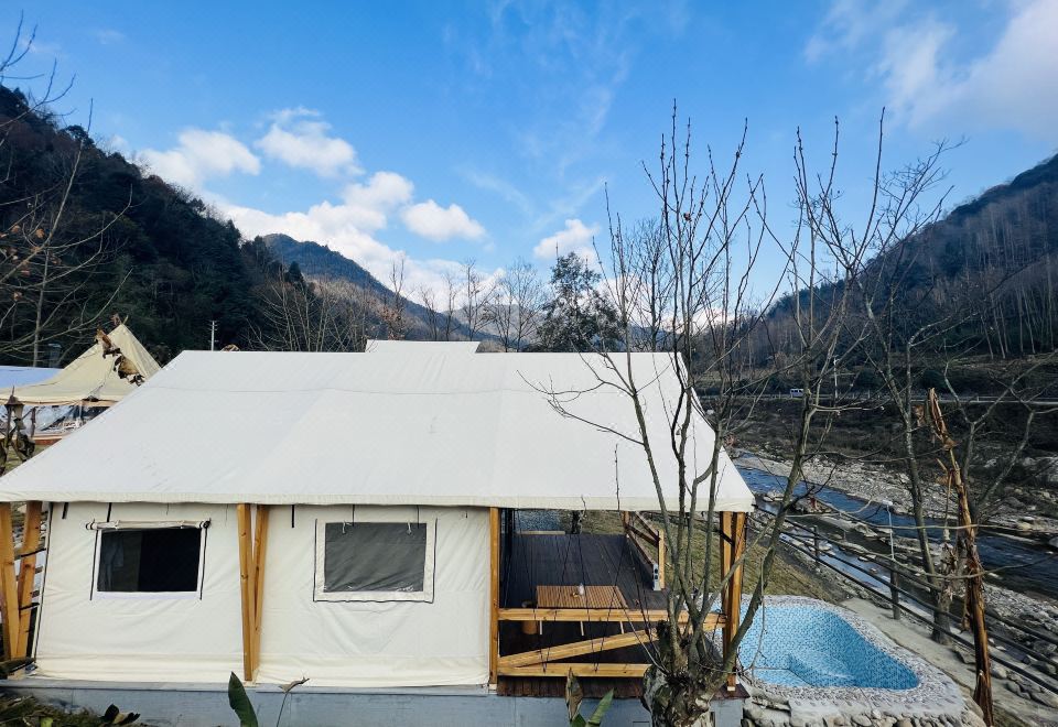 Romantic Couple Tent Courtyard (Private Hot Spring, Floor Heating, Zero Pressure Mattress, Smart Electric Bed, Projector)
