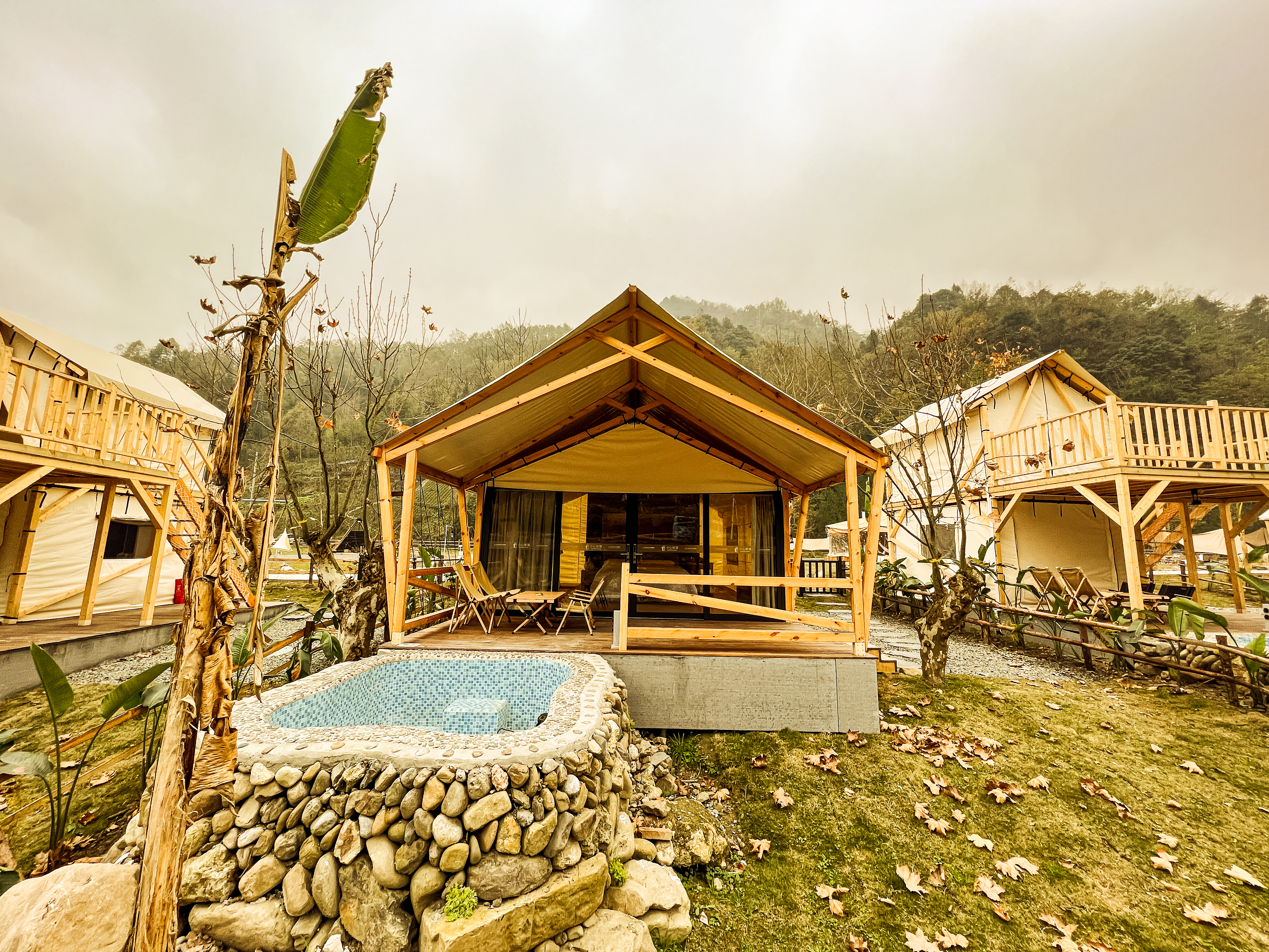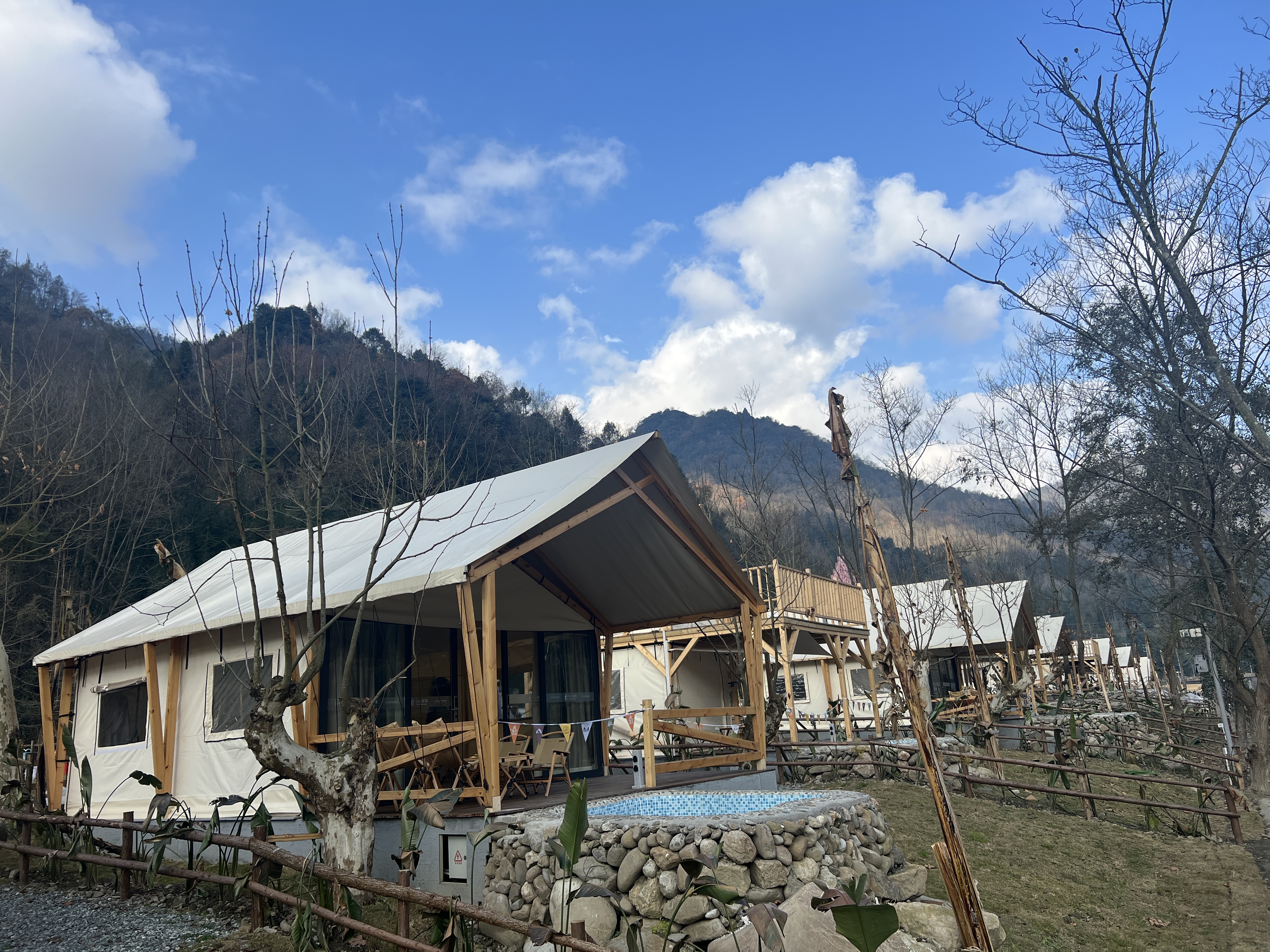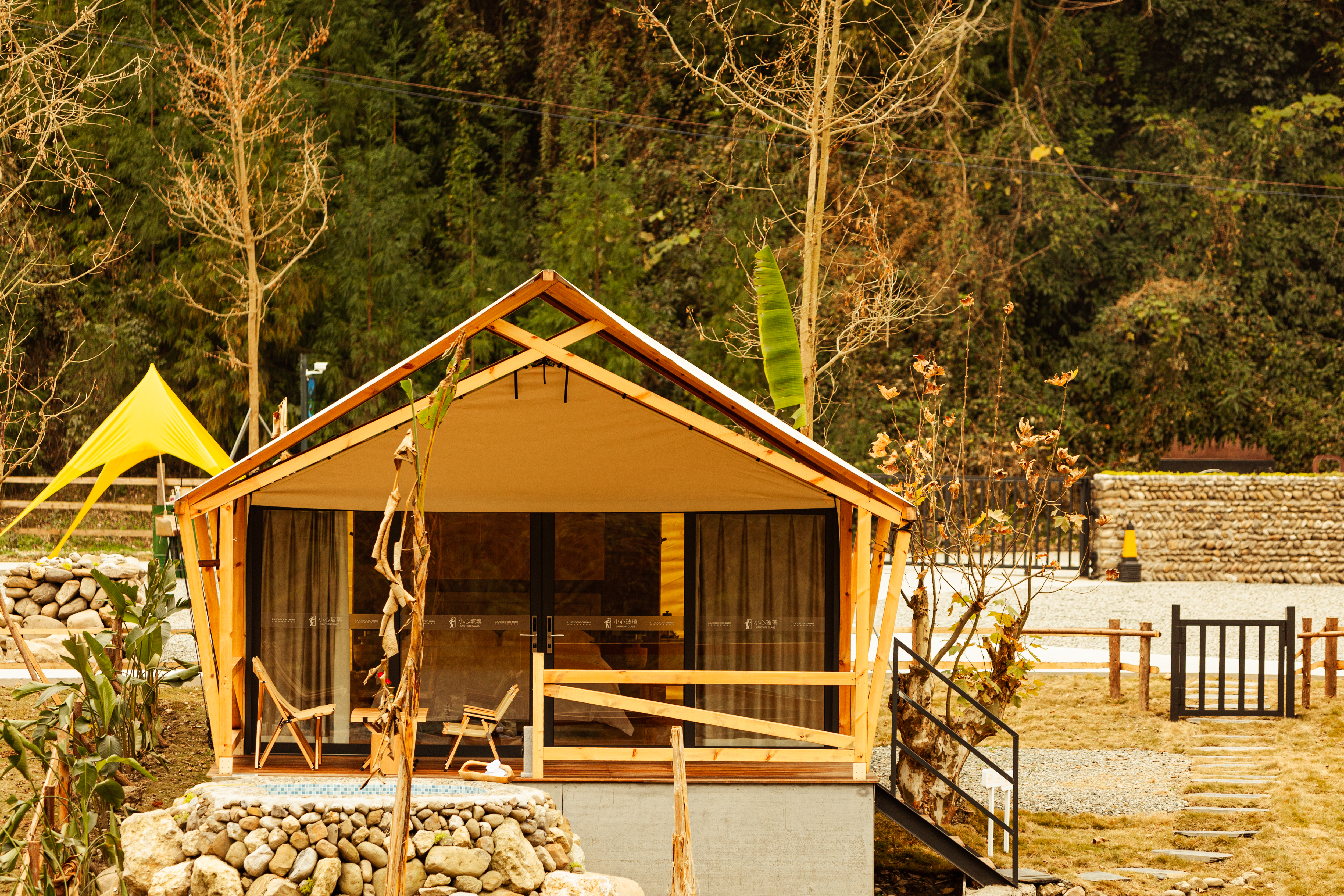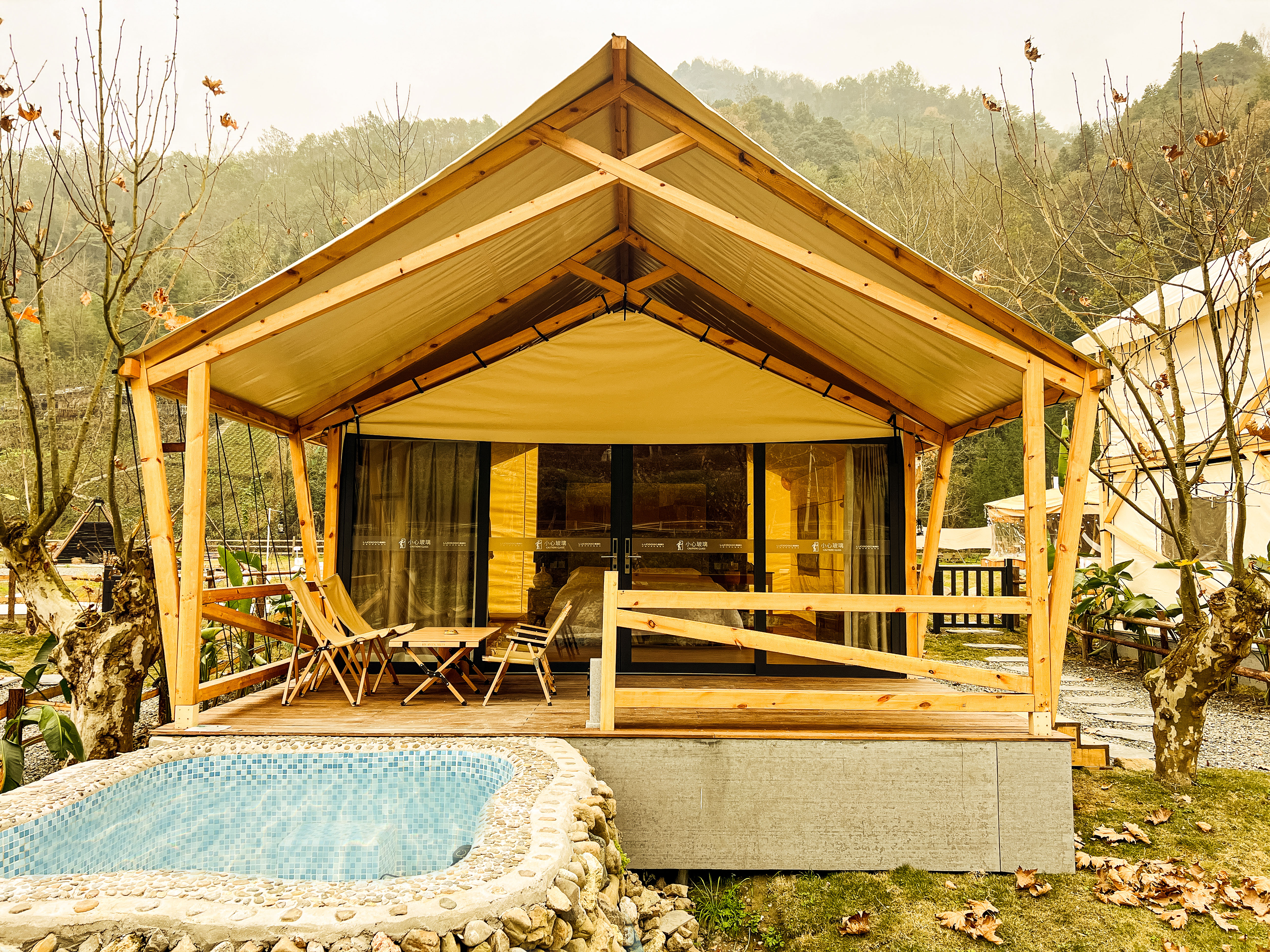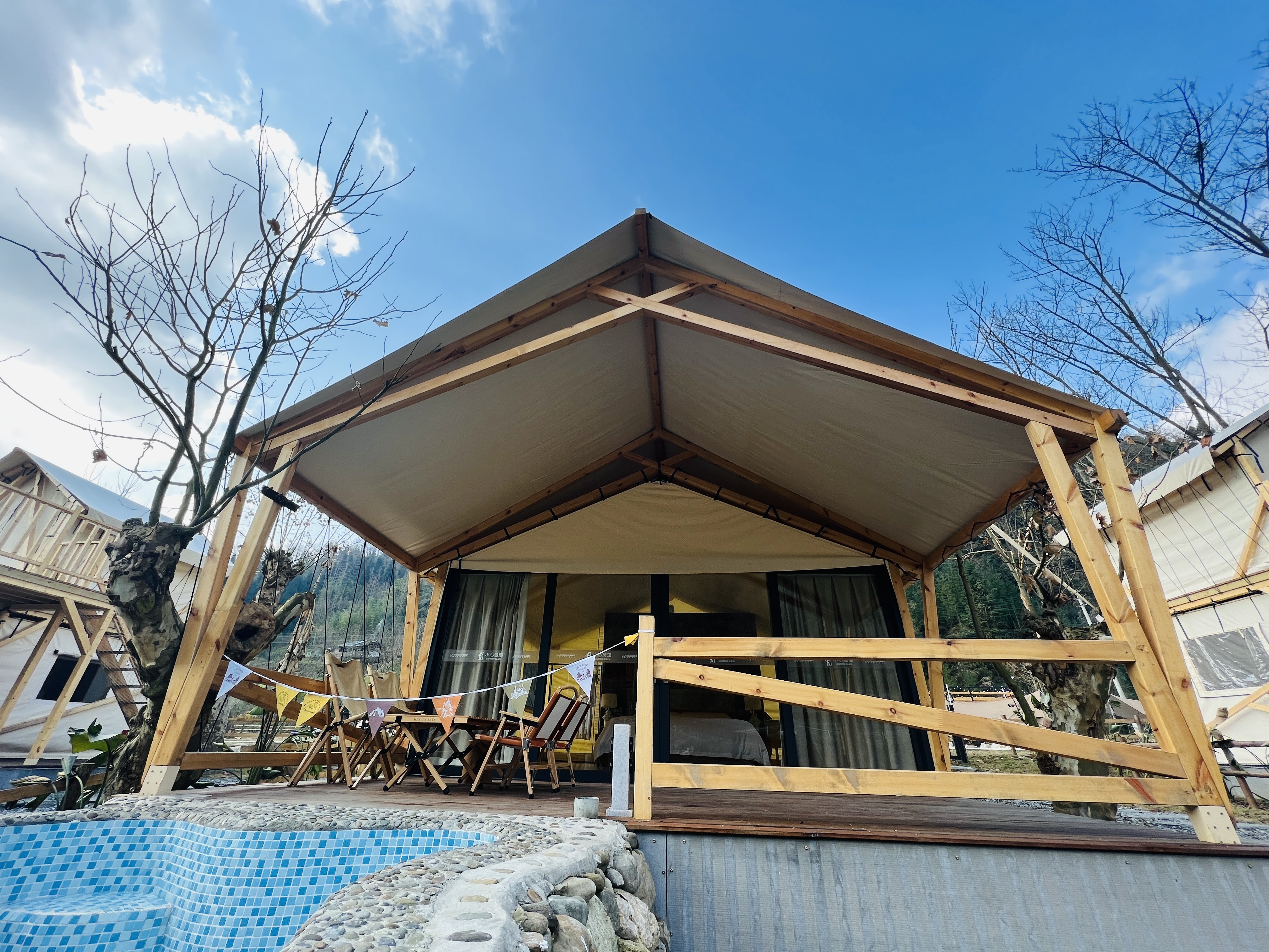 Romantic Couple Tent Courtyard (Private Hot Spring, Floor Heating, Zero Pressure Mattress, Smart Electric Bed, Projector)