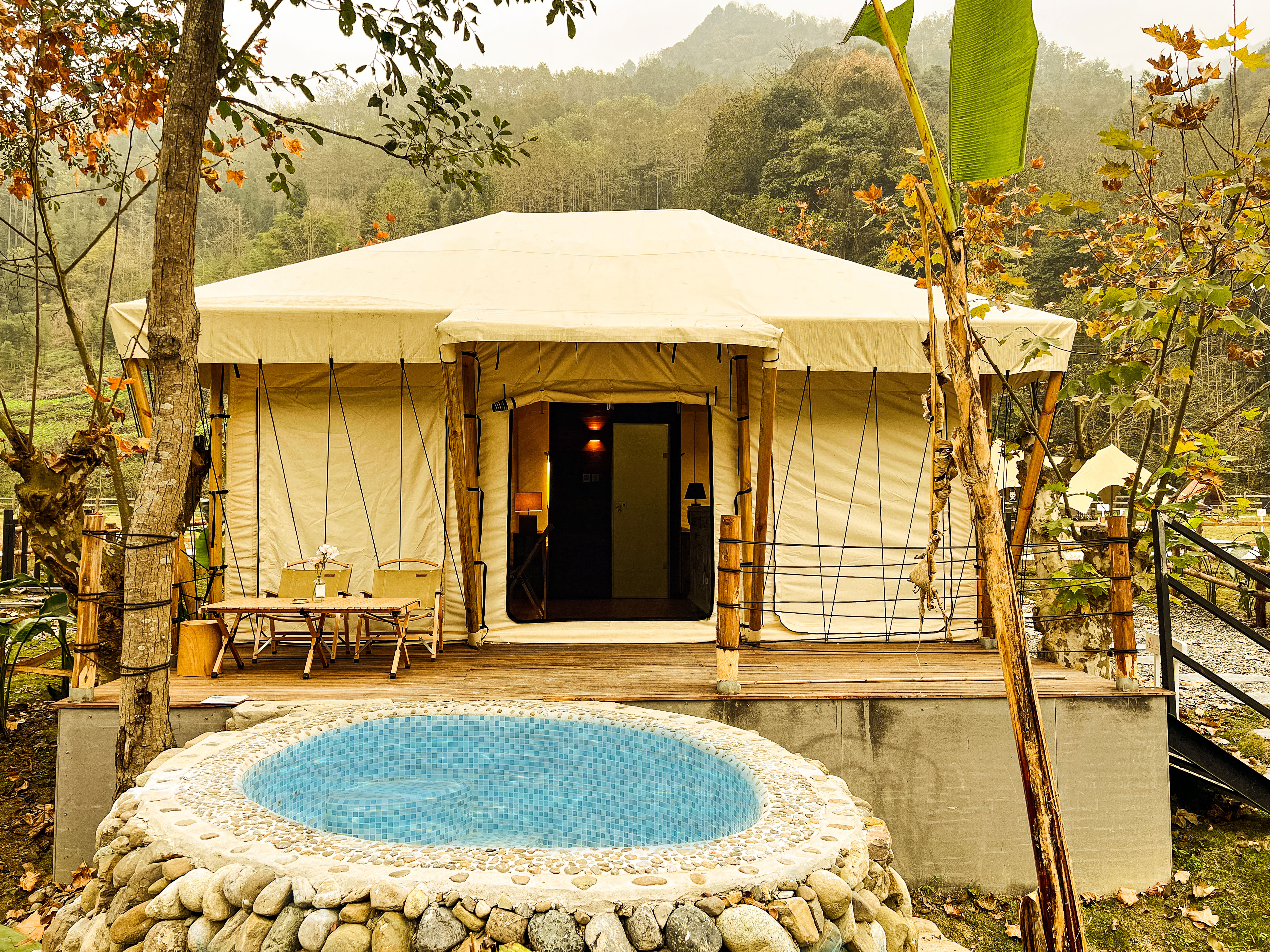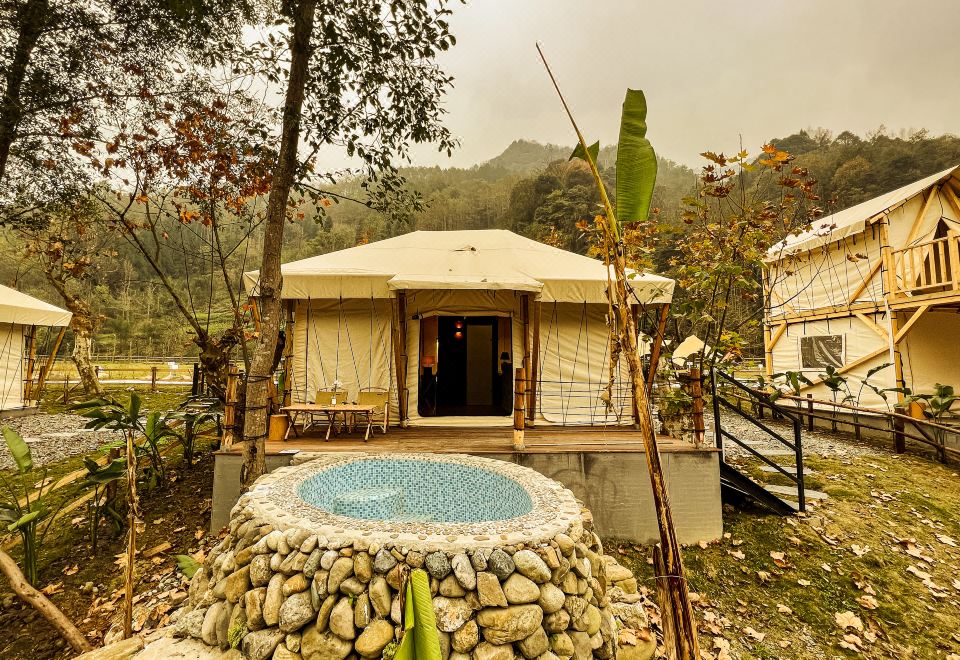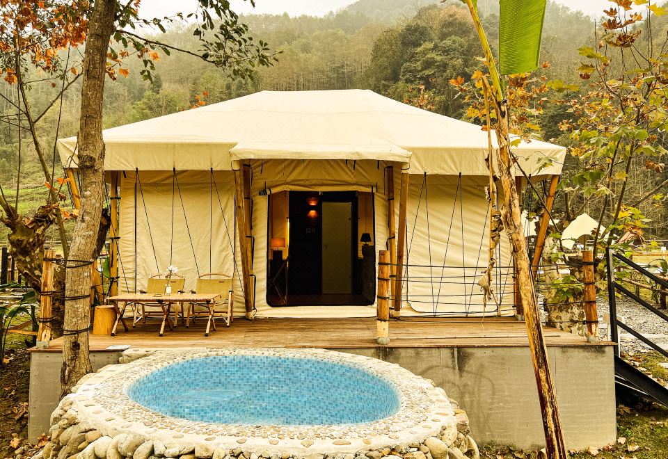 Joyful Family Tent Courtyard (Private Hot Spring, Tatami, Floor Heating, Zero Pressure Mattress)