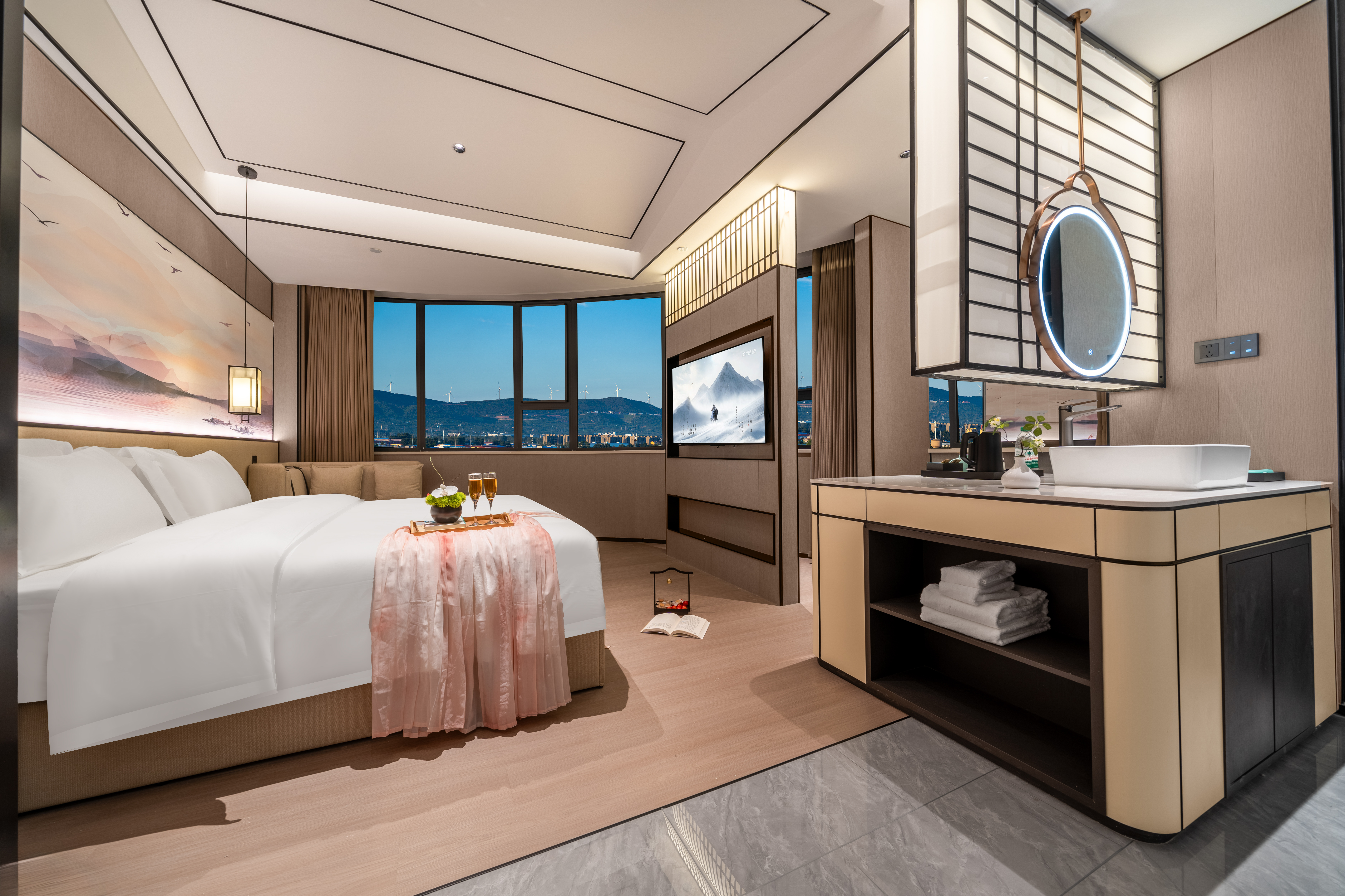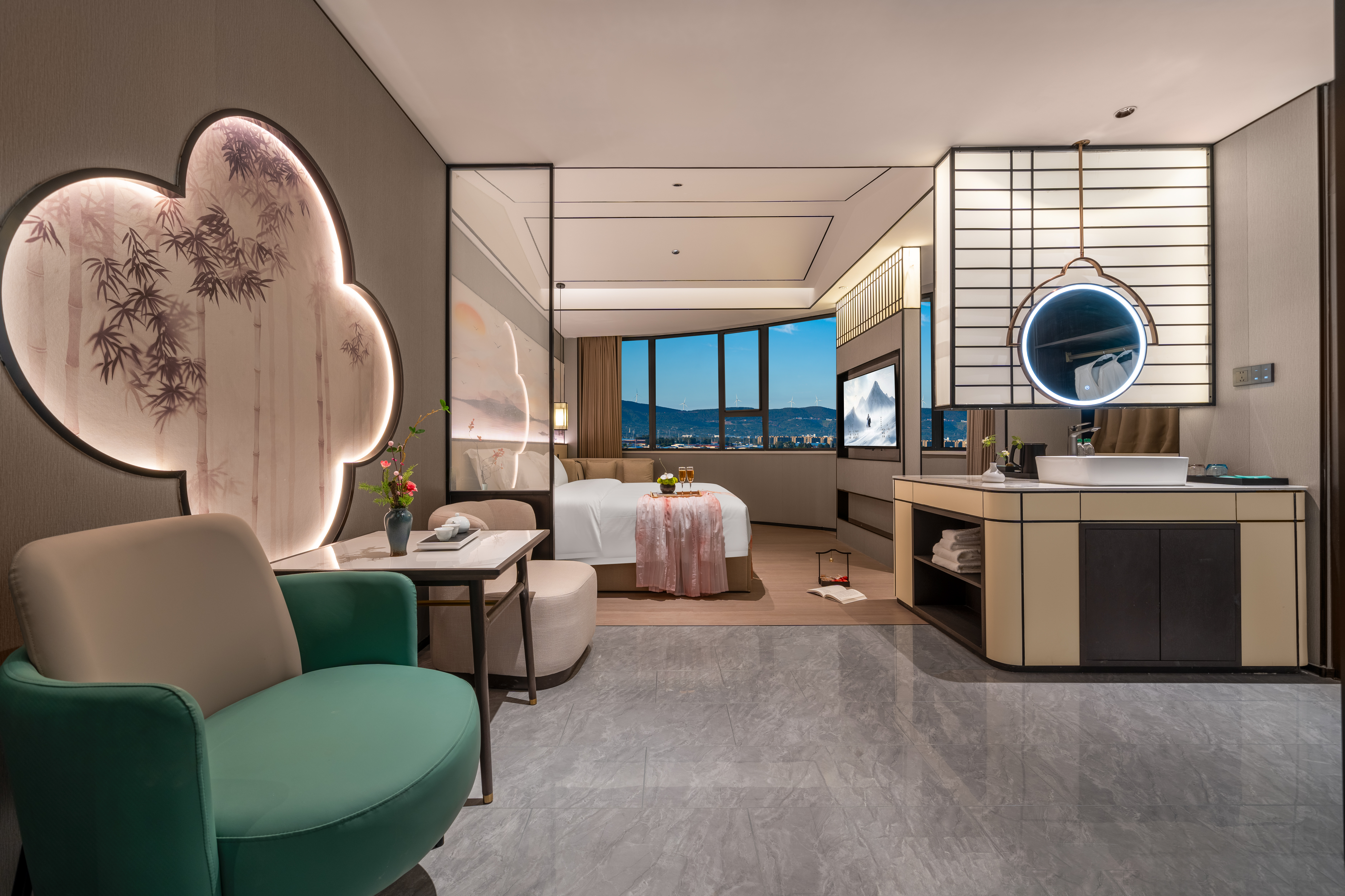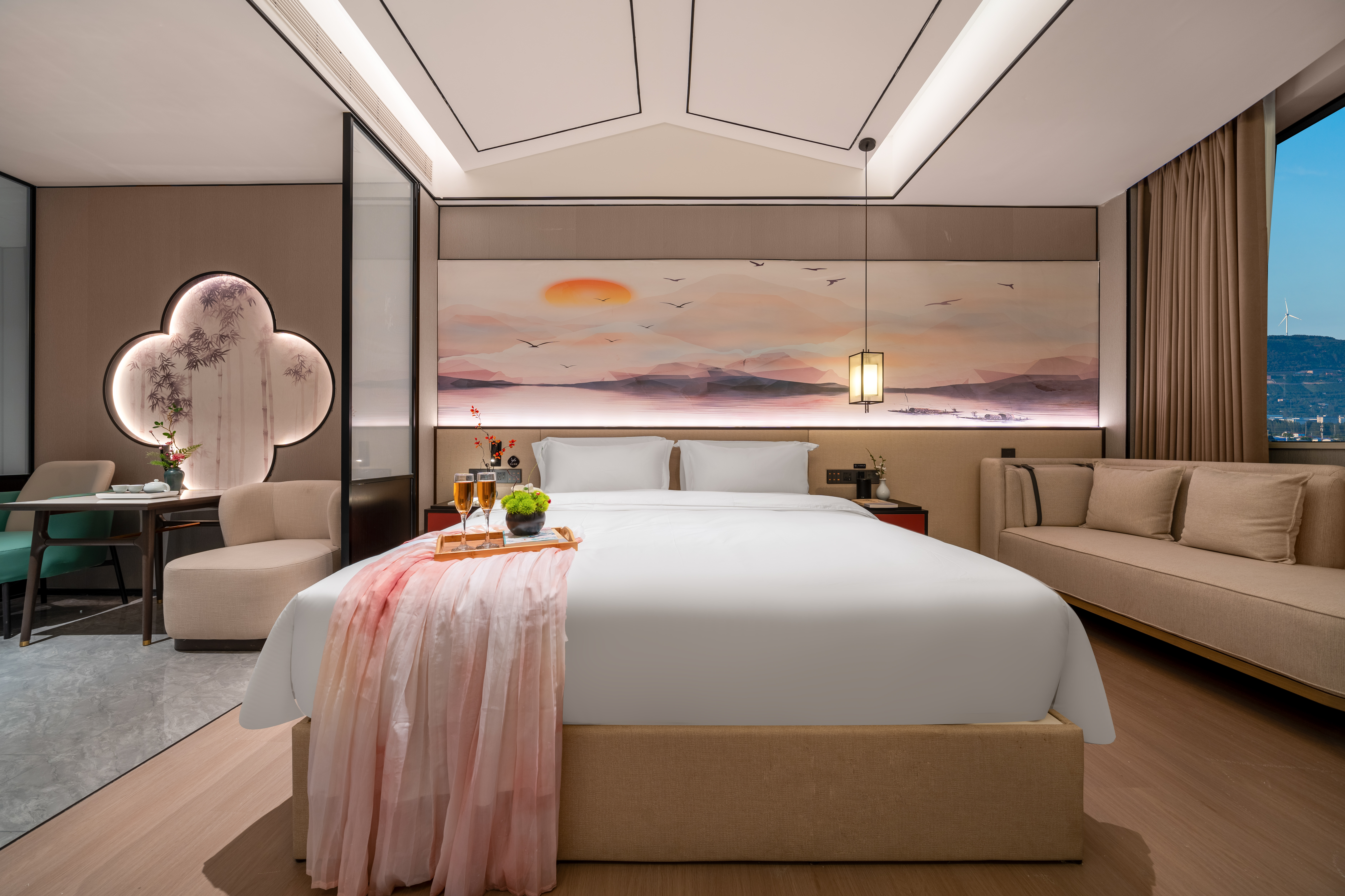 品学·宋风花雅大床房丨远眺山景+智能客控+乾湿分离