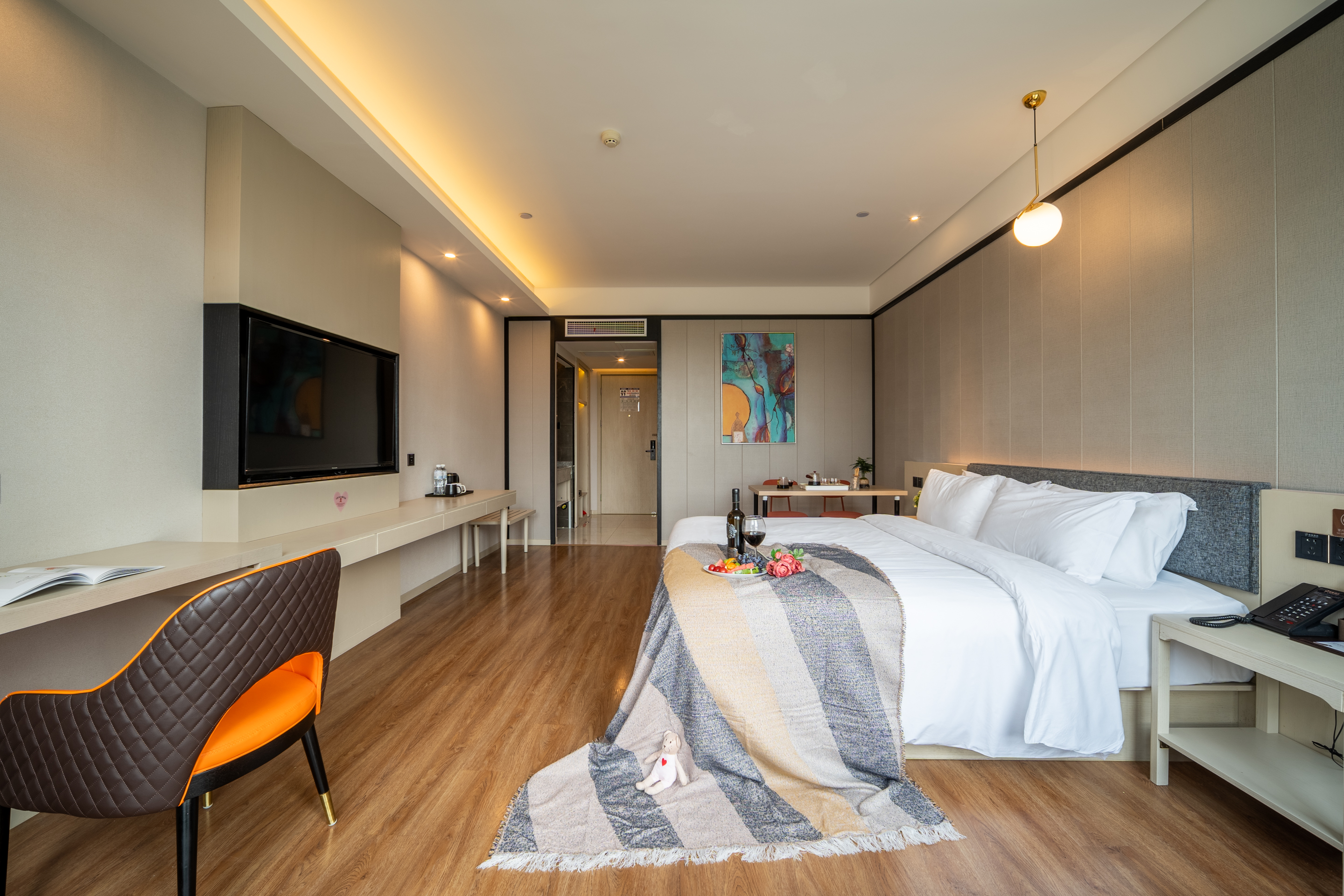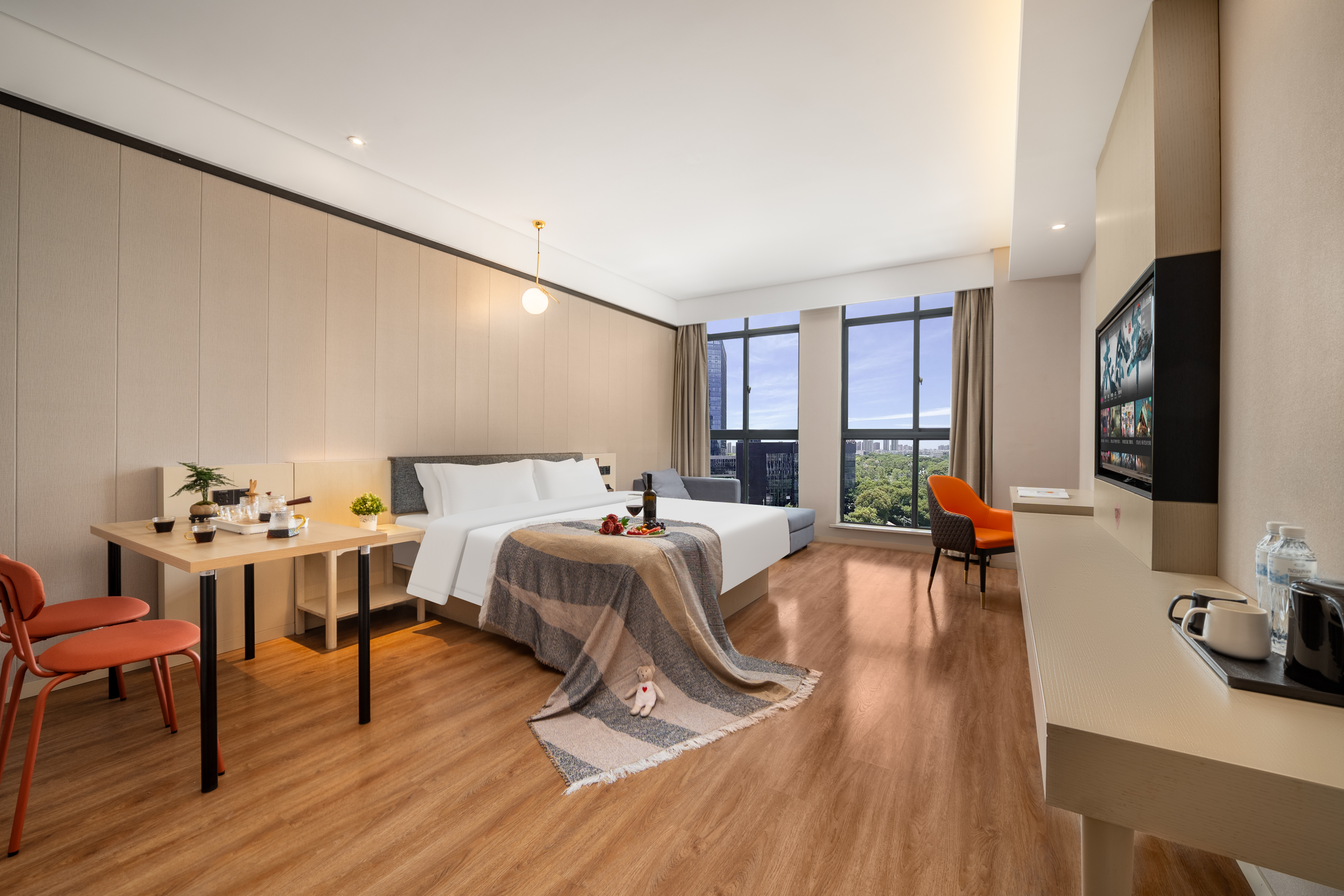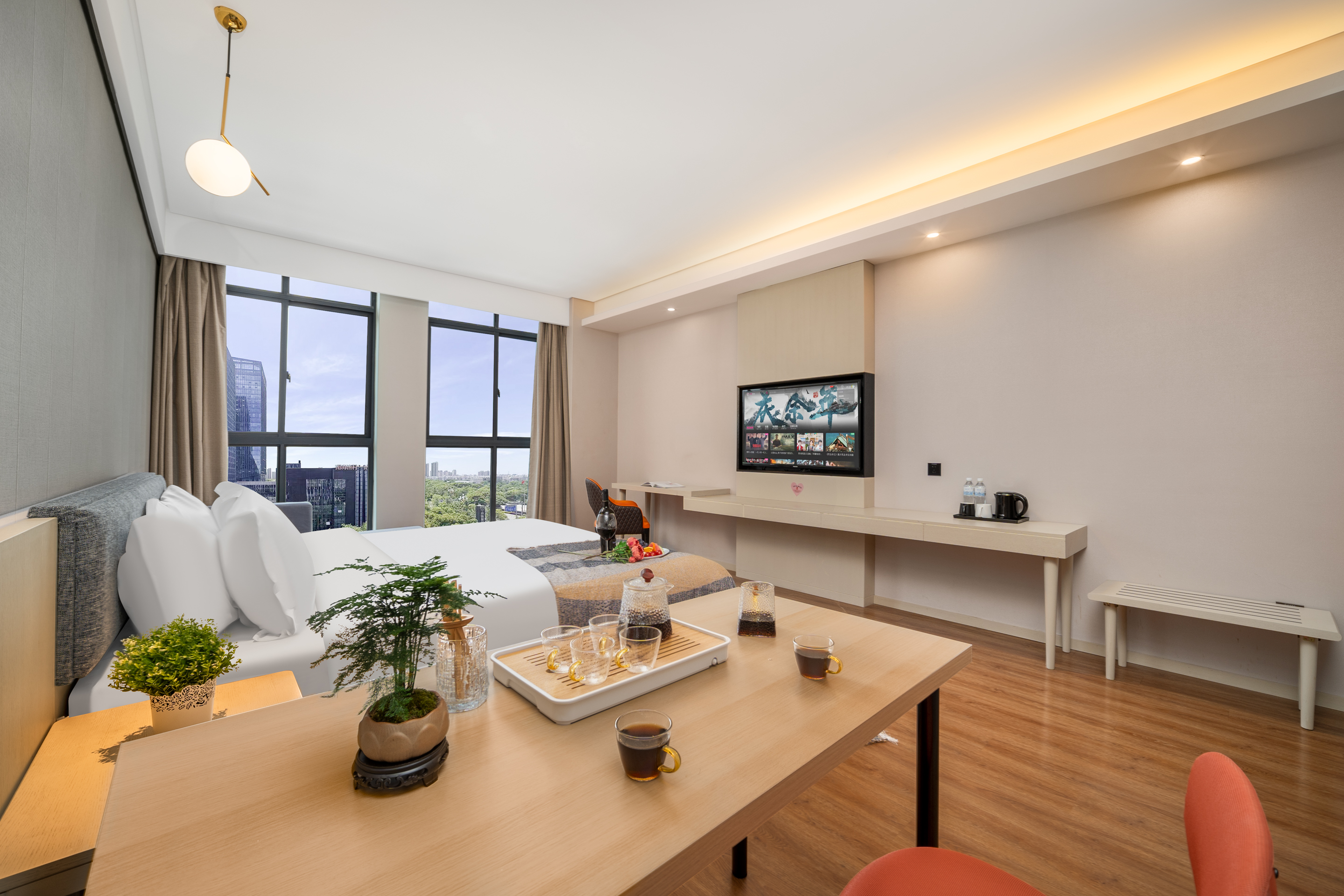 Executive Tea Tasting Double Bed Room (Sofa + Tea Table + Premium Tea Set + Latex Mattress + 55-Inch Tv)