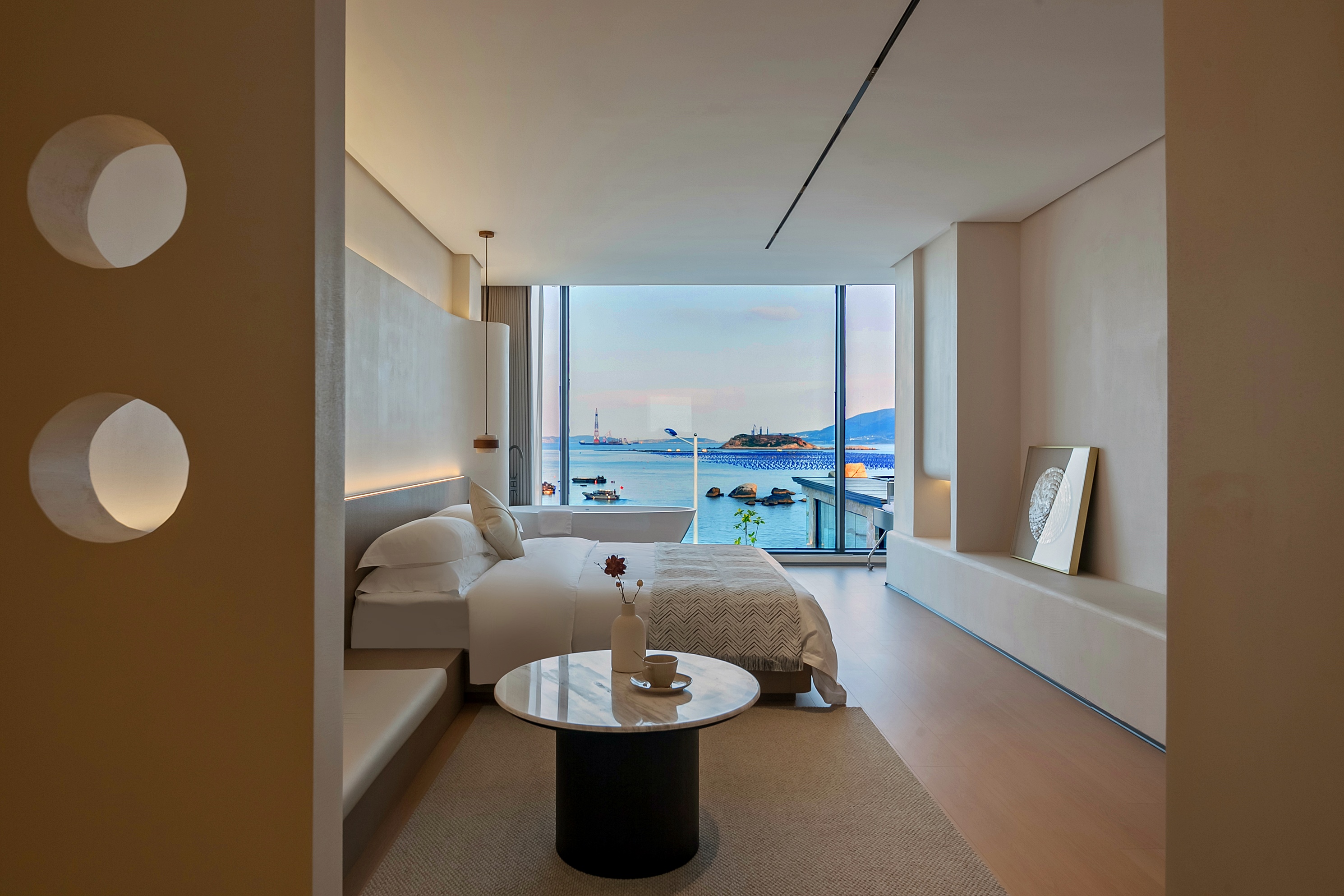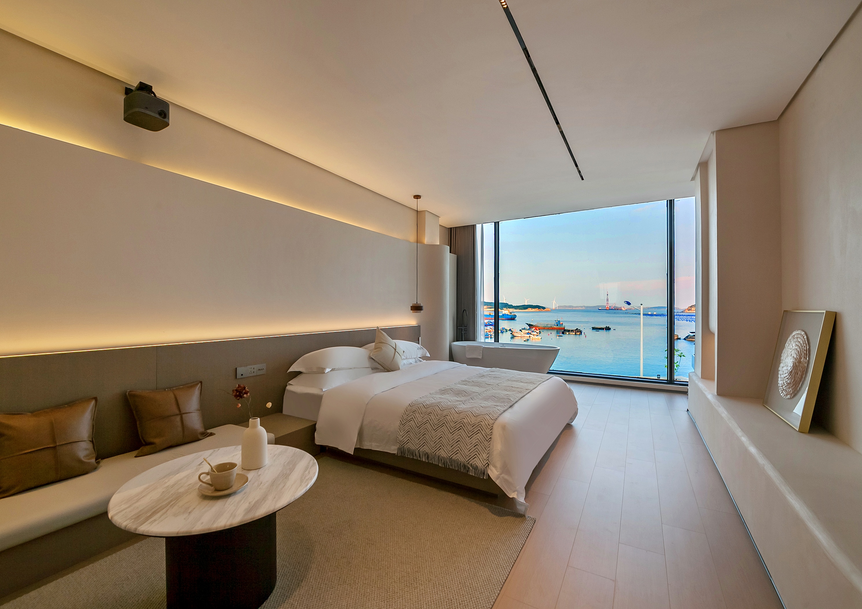 Xuhai-Zhuhang Light Luxury Sea-View Double Bed Room With Deep Soaking Bath, Large Screen Projection And Sea-View Courtyard
