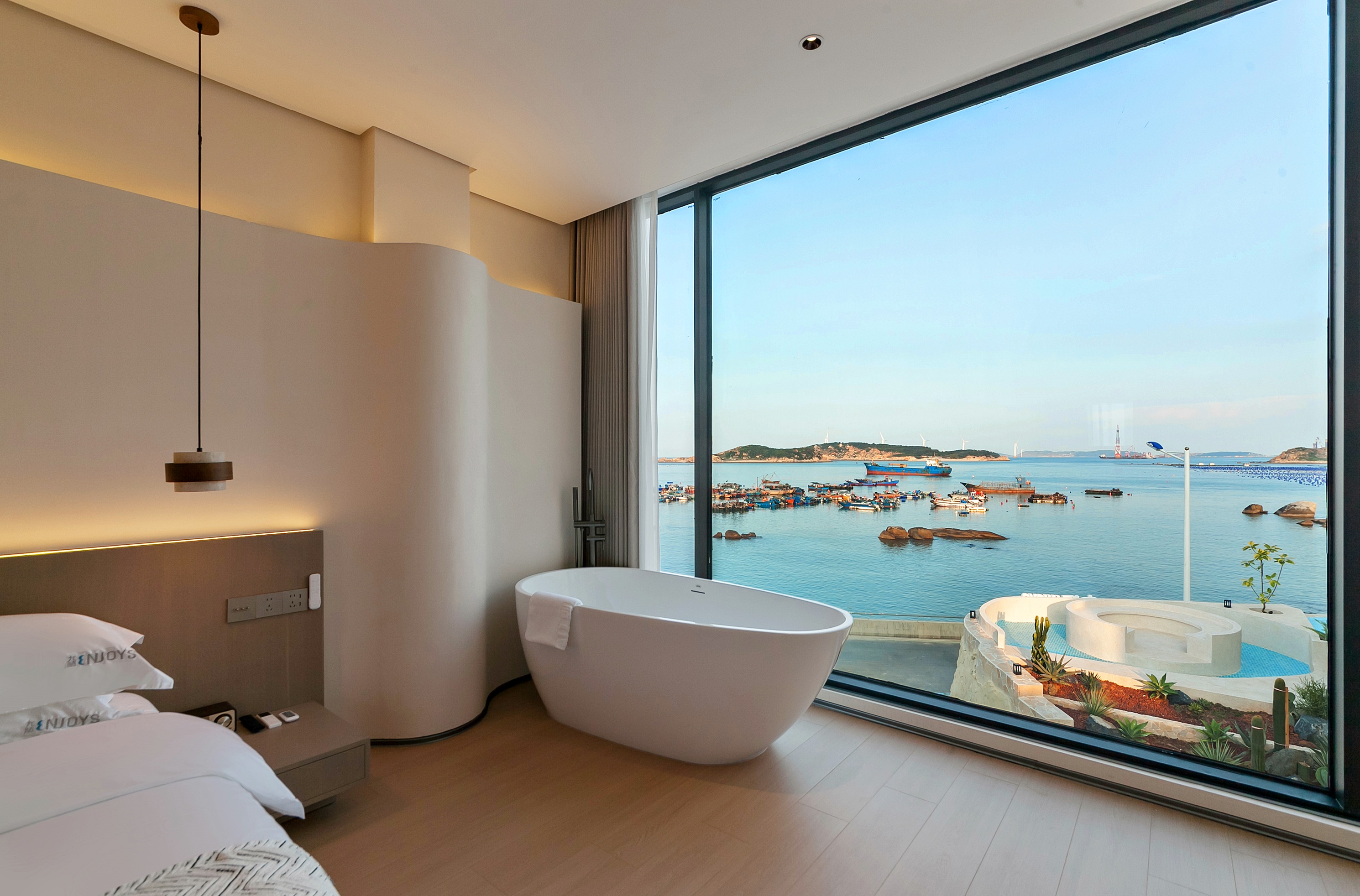 Linghai-Mujing 180 ° Sea-View Light Luxury Double Bed Room With Deep Soaking Tub, Large Screen Projection And Windmill Sea-View