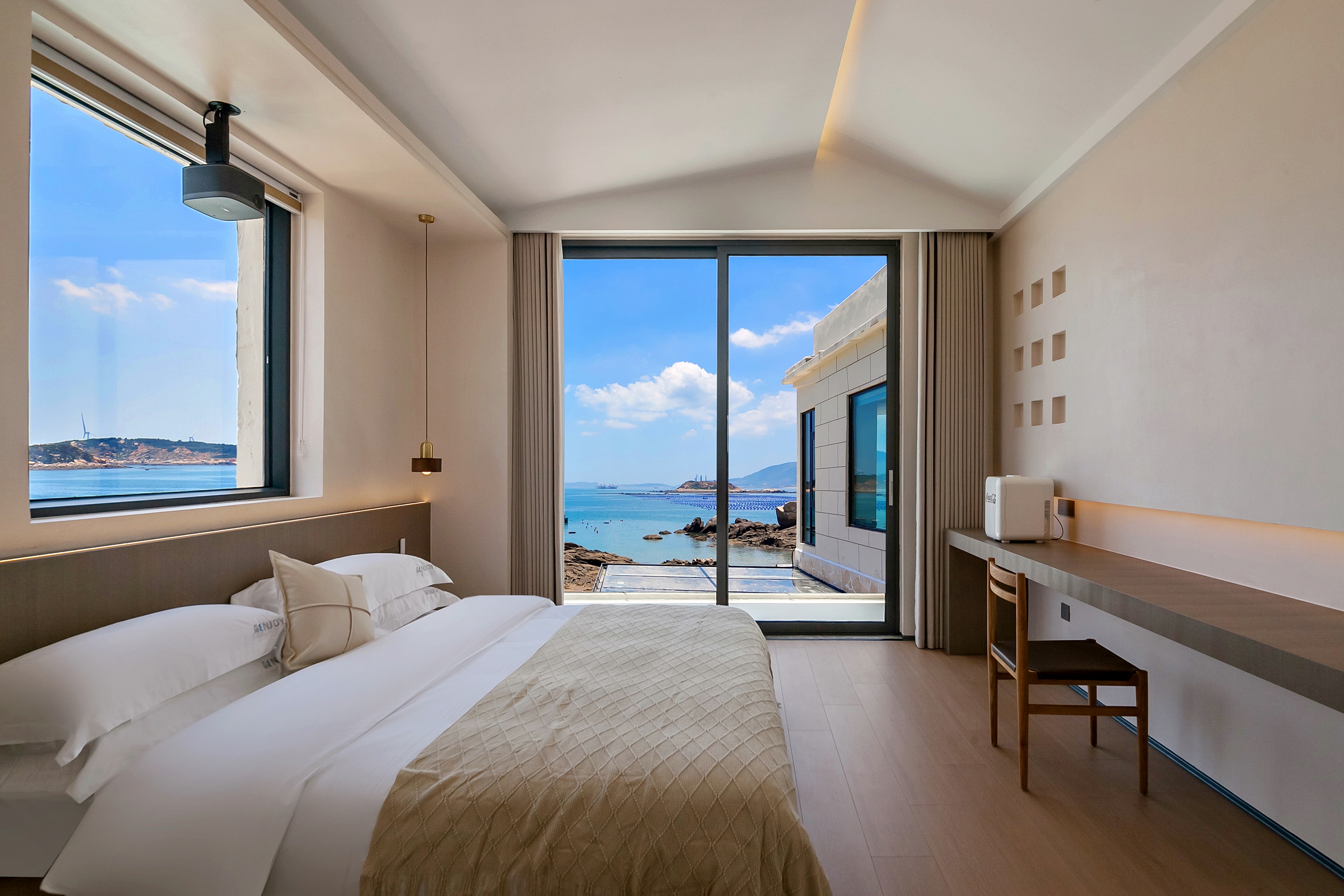 Xuhai-Bibo Light Luxury Sea-View Double Bed Room With Deep Soaking Tub, Large Screen Projection And Sea-View Terrace