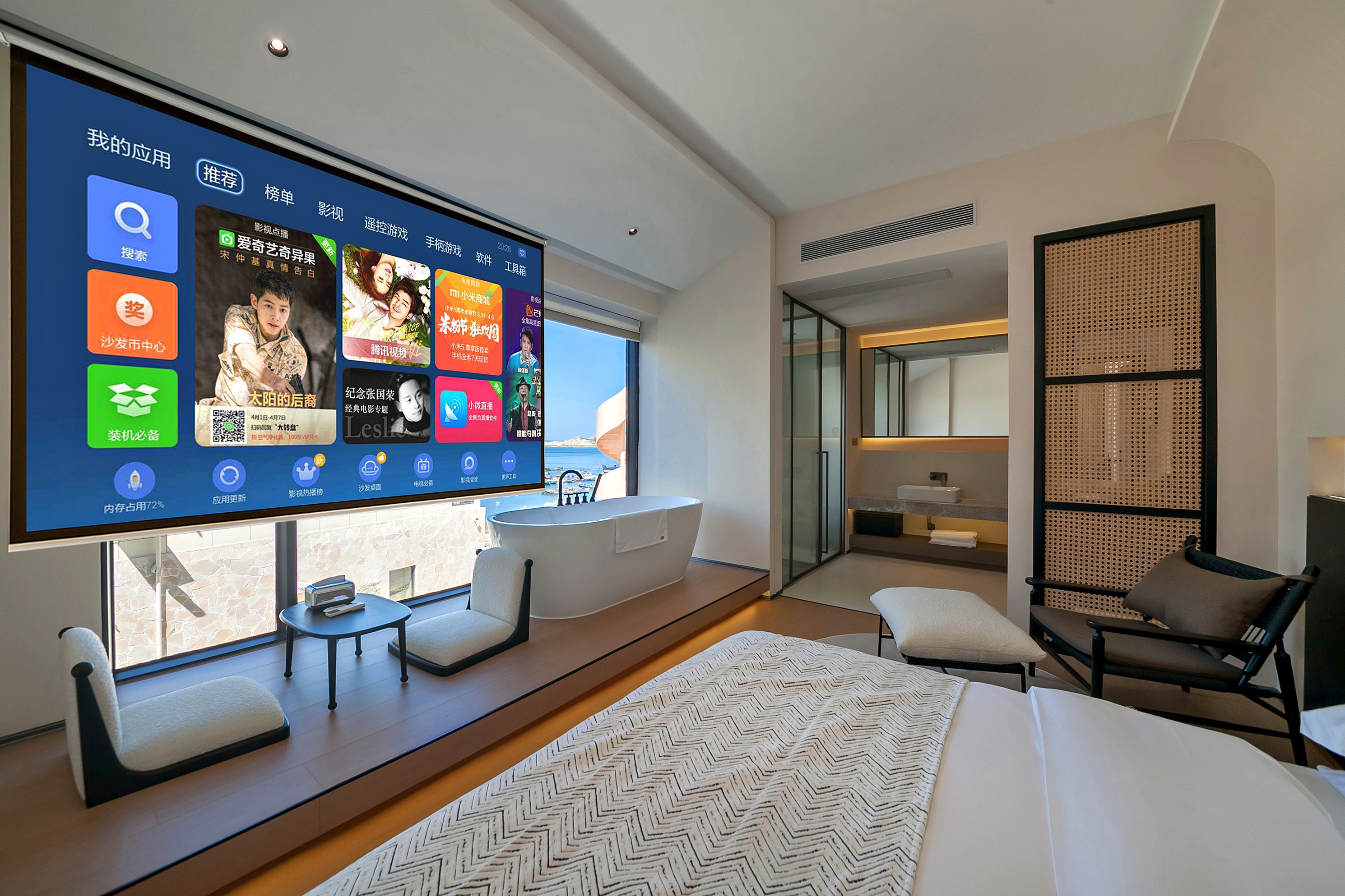 Mihai-Fenglan Light Luxury Sea-View Double Bed Room With Deep Soaking Tub And Large Screen Projection