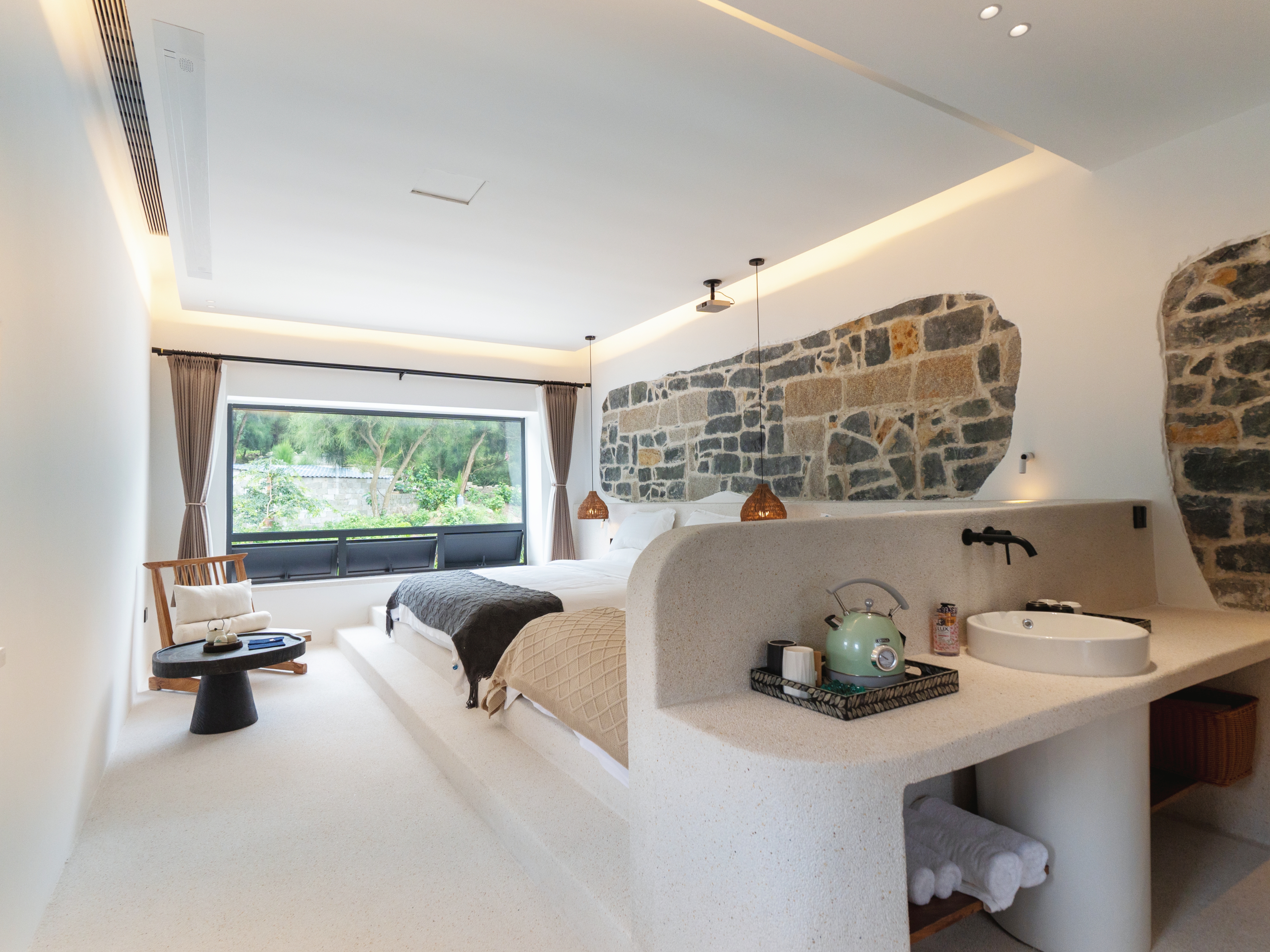 Xianning Stone House Family Room (Sea View, 100-Inch Projection, Deep Soaking Tub)