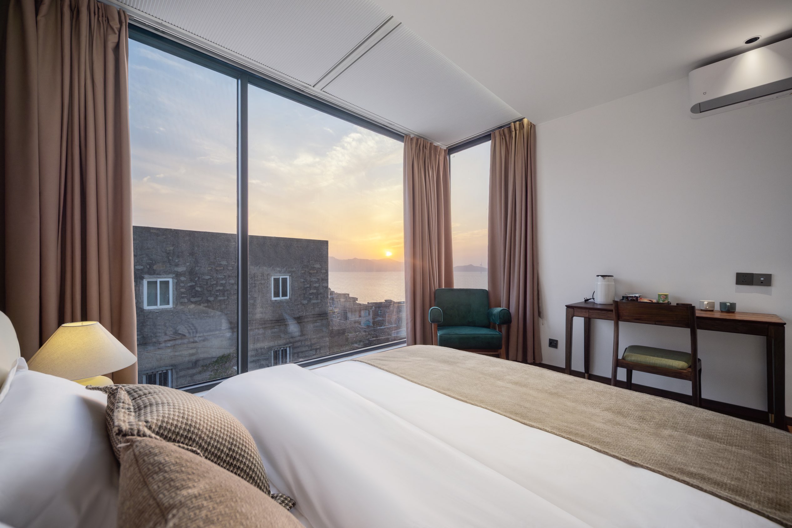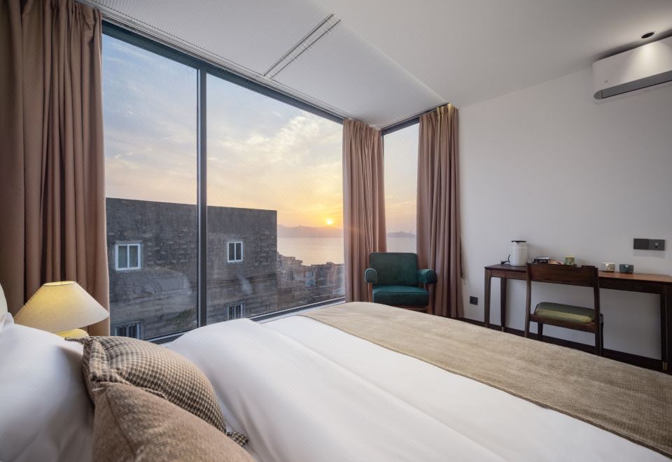 坪洲·日落海景大床房(mini冰箱+百寸投影+電動窗簾)