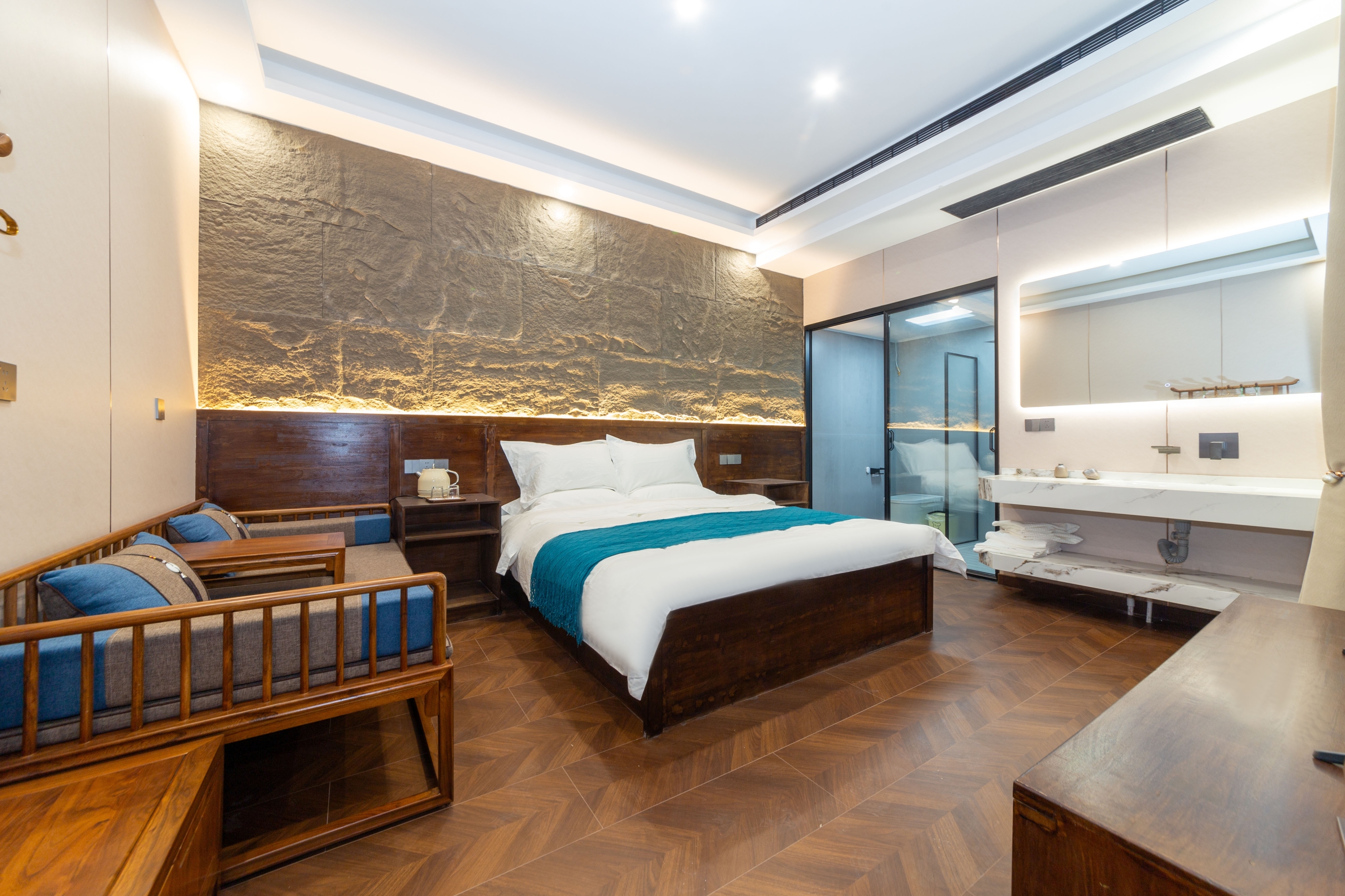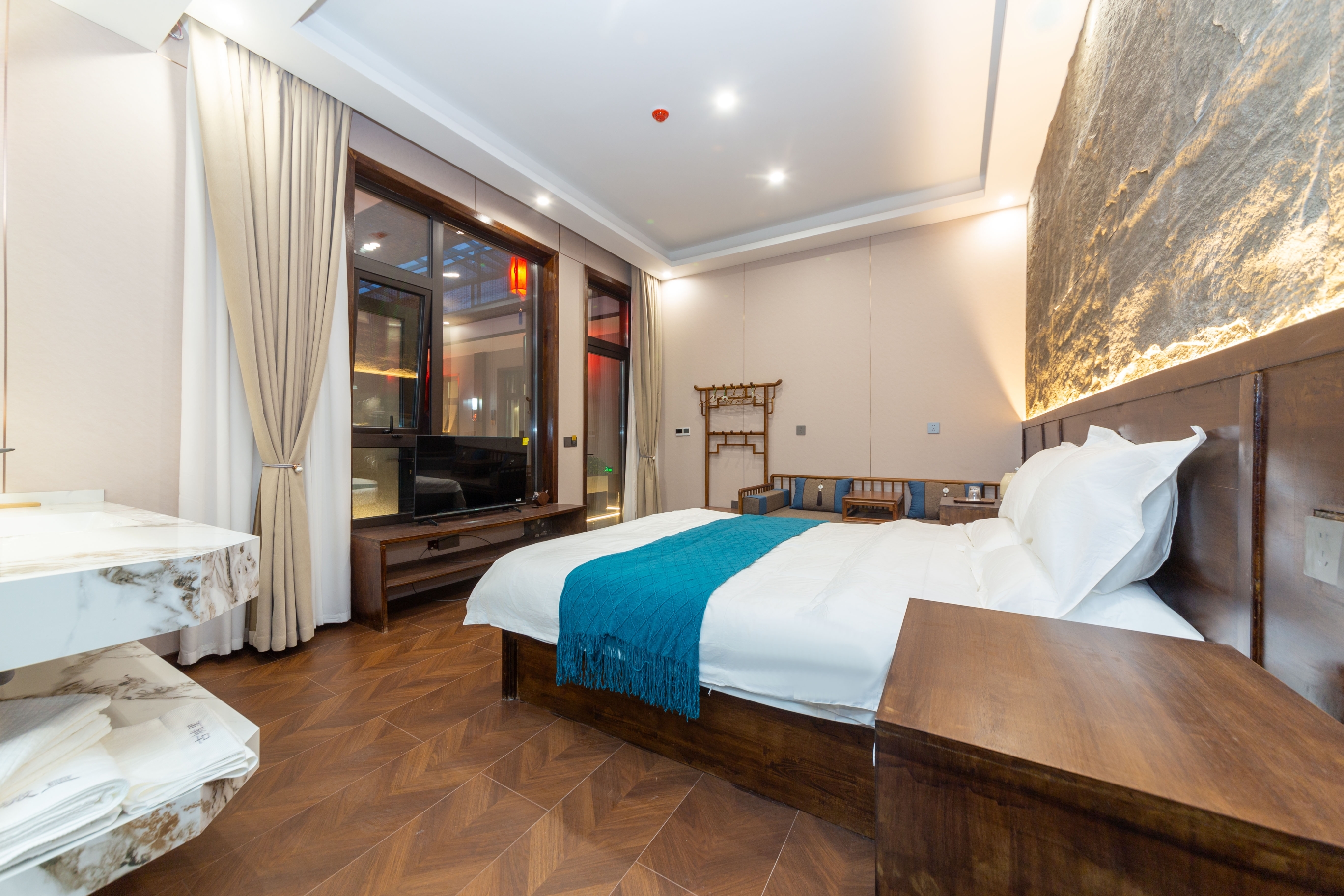 Qixia Rain Listening Double Bed Room With Smart Toilet And Zero Pressure Mattress