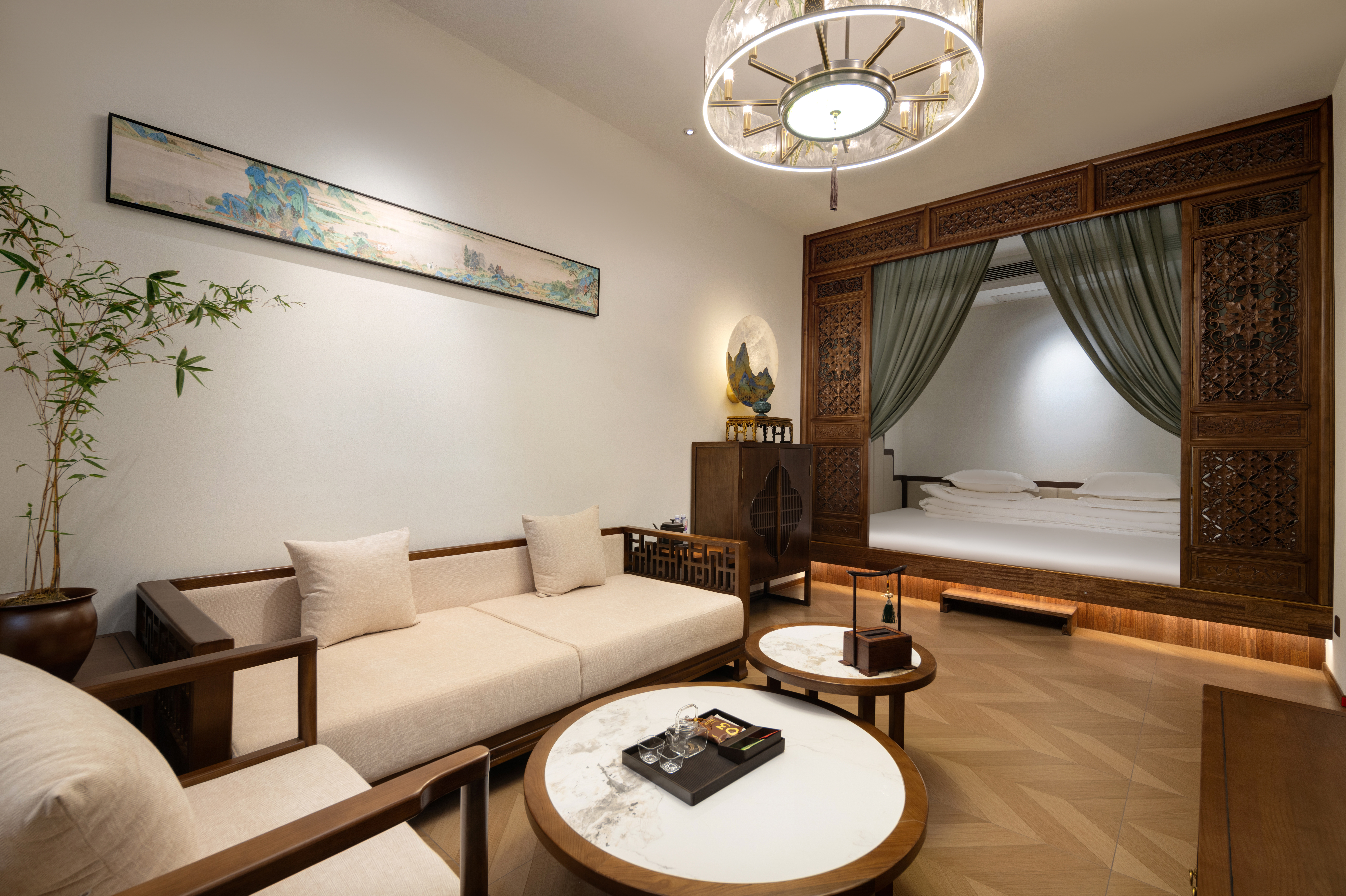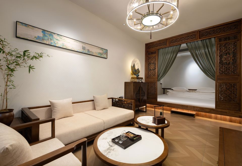 竹里·江山入梦「竹庭窗景|独享九雅茶室|加长翠幔华床」