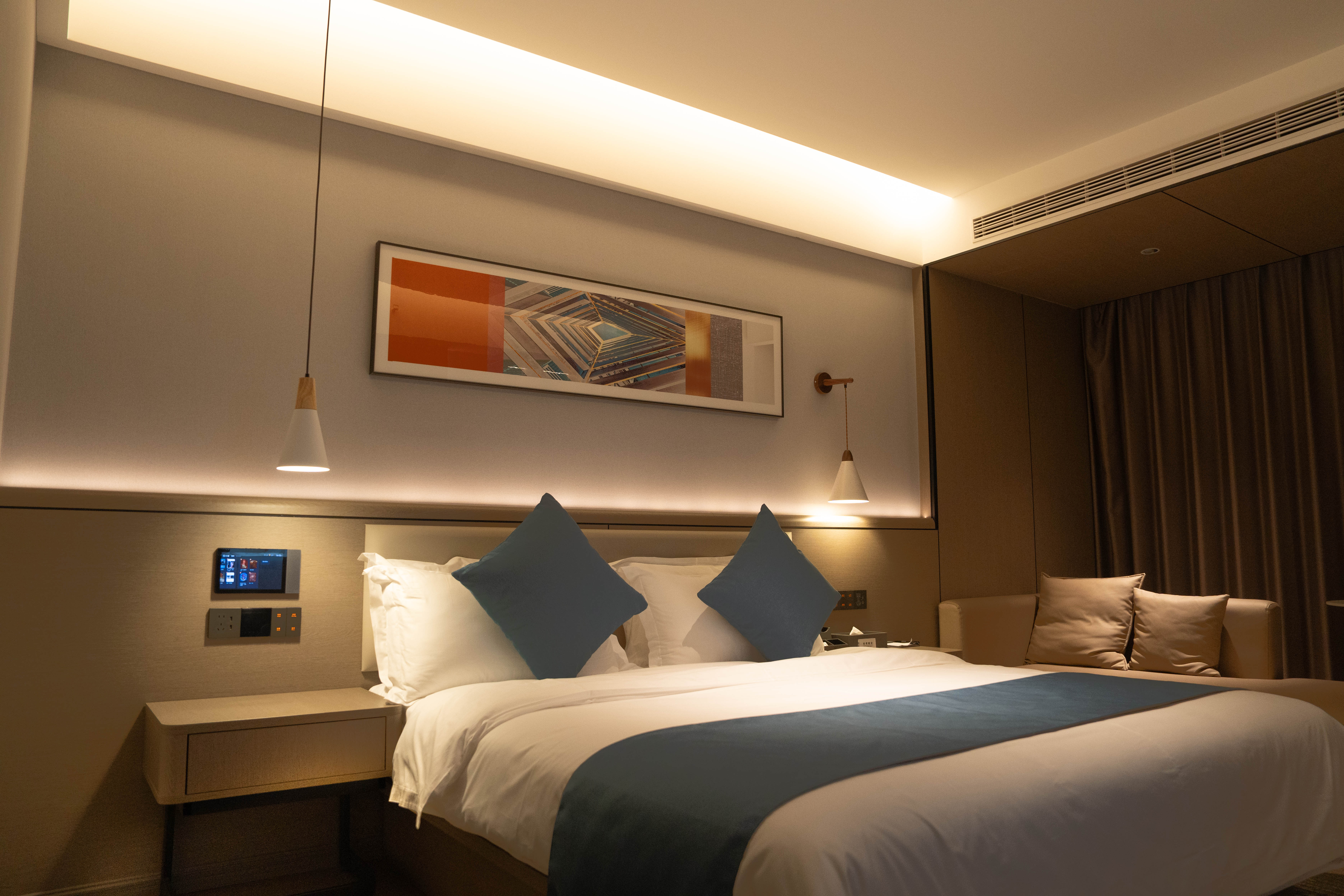 静雅智慧大床房「慕思助眠床垫+休闲软沙发+智能客控」