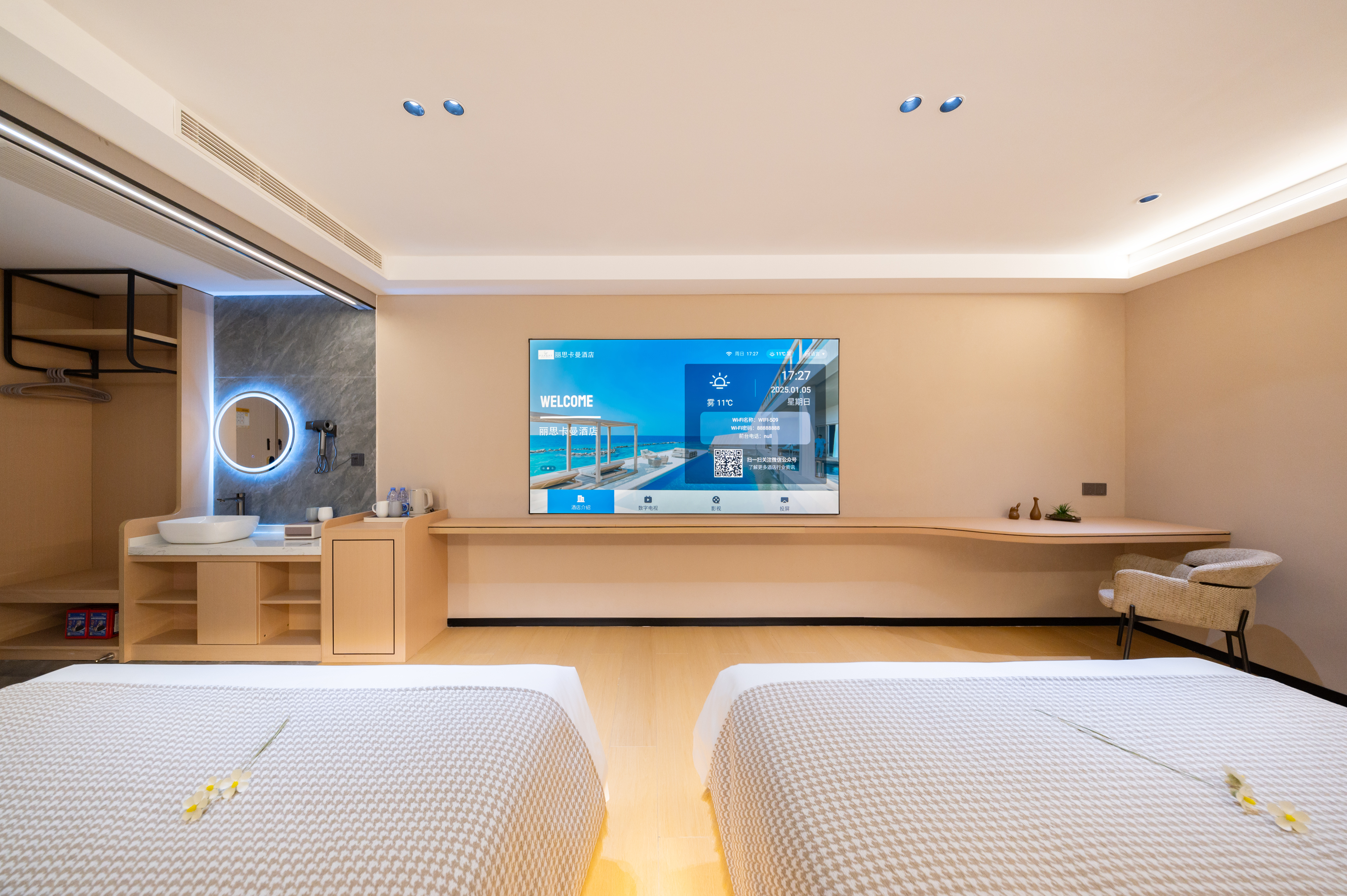 漫悦观影双床房【两种风格+大空间+高清巨幕观影投屏】