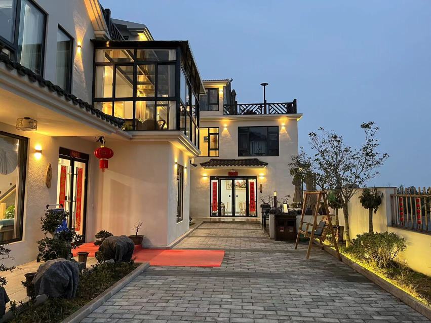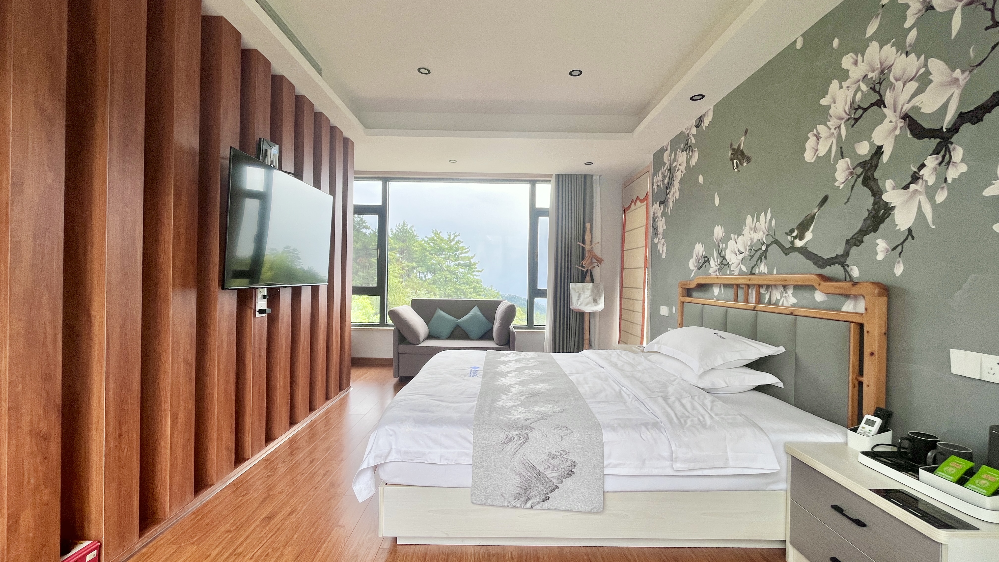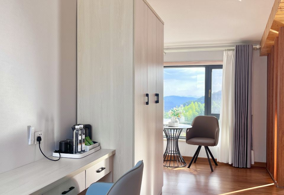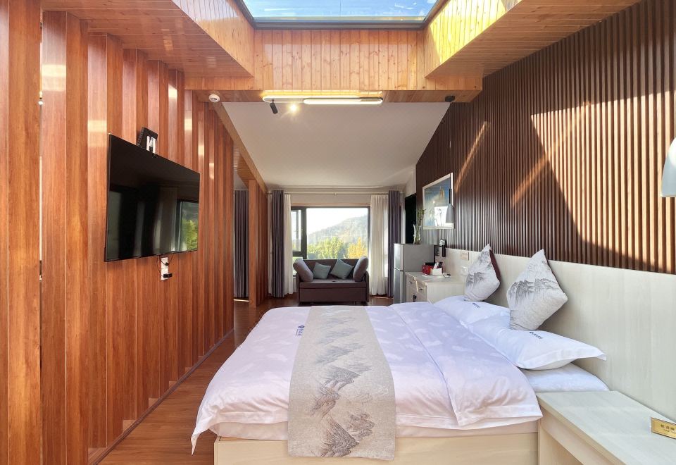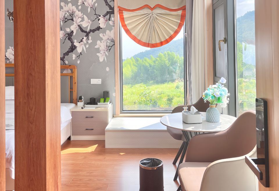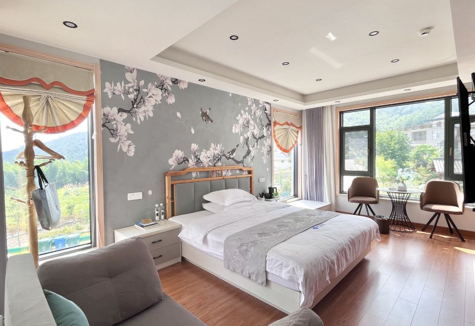 渡仙亭-雅致大床房「 270°田园景观 | 地暖 | 休闲区」