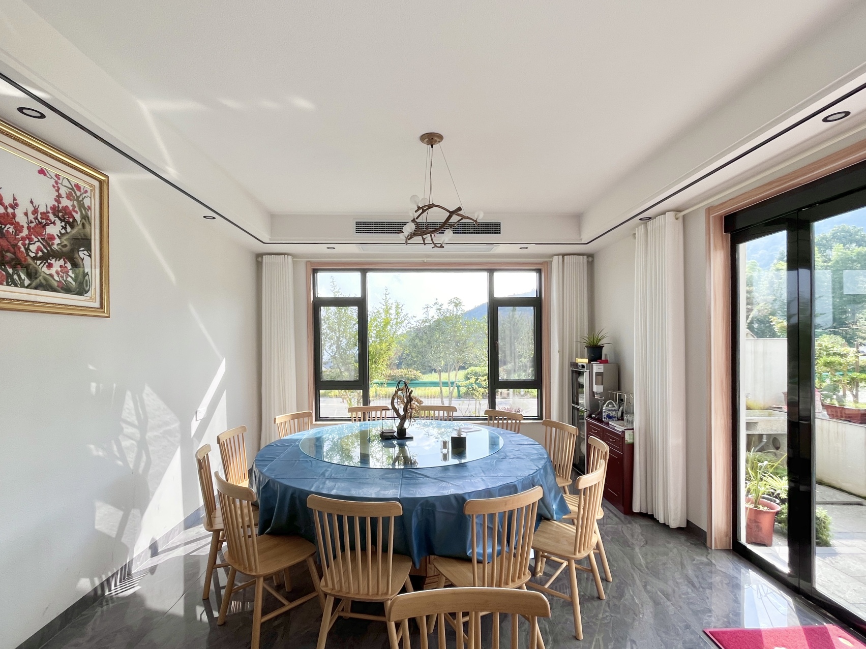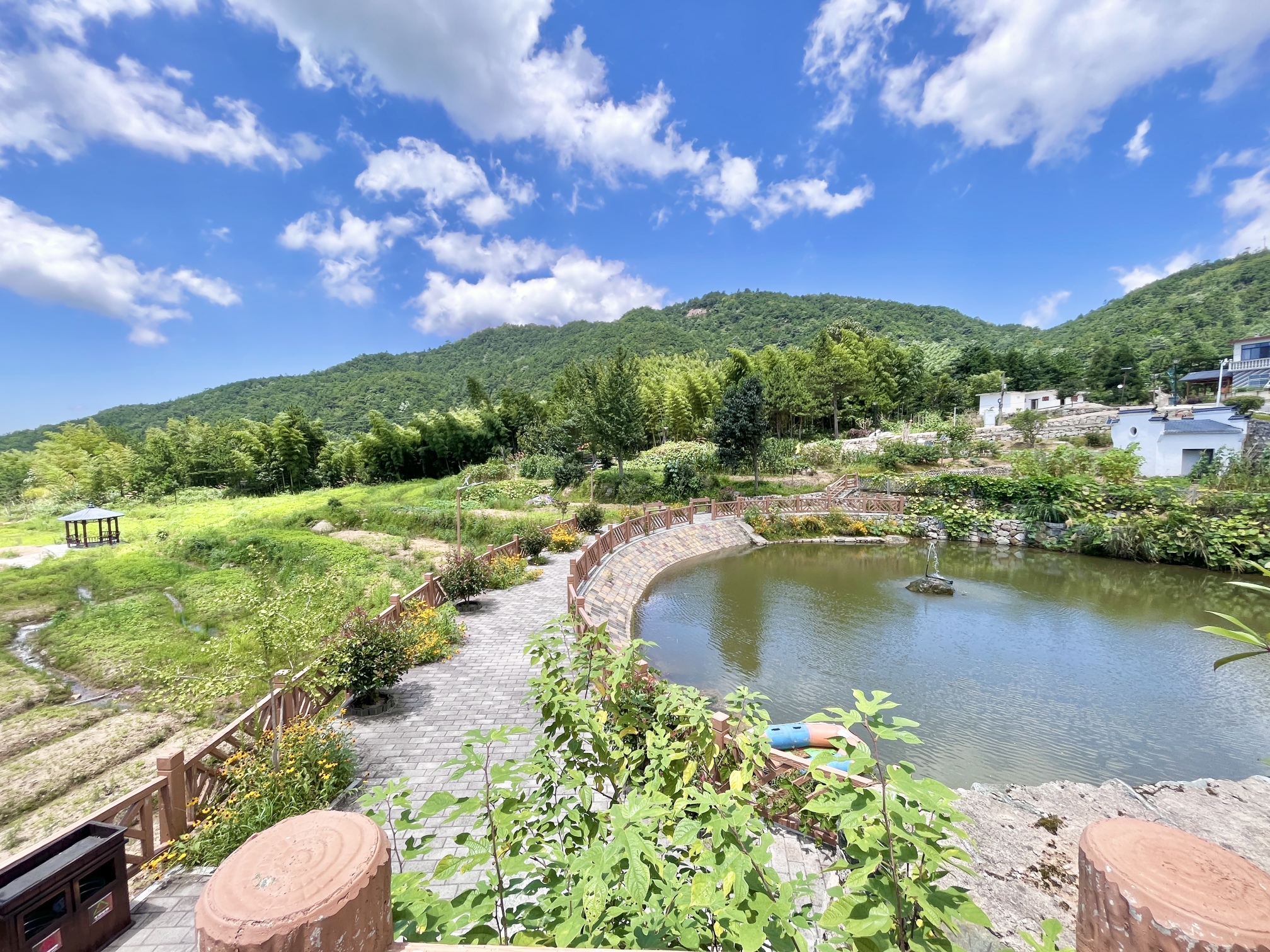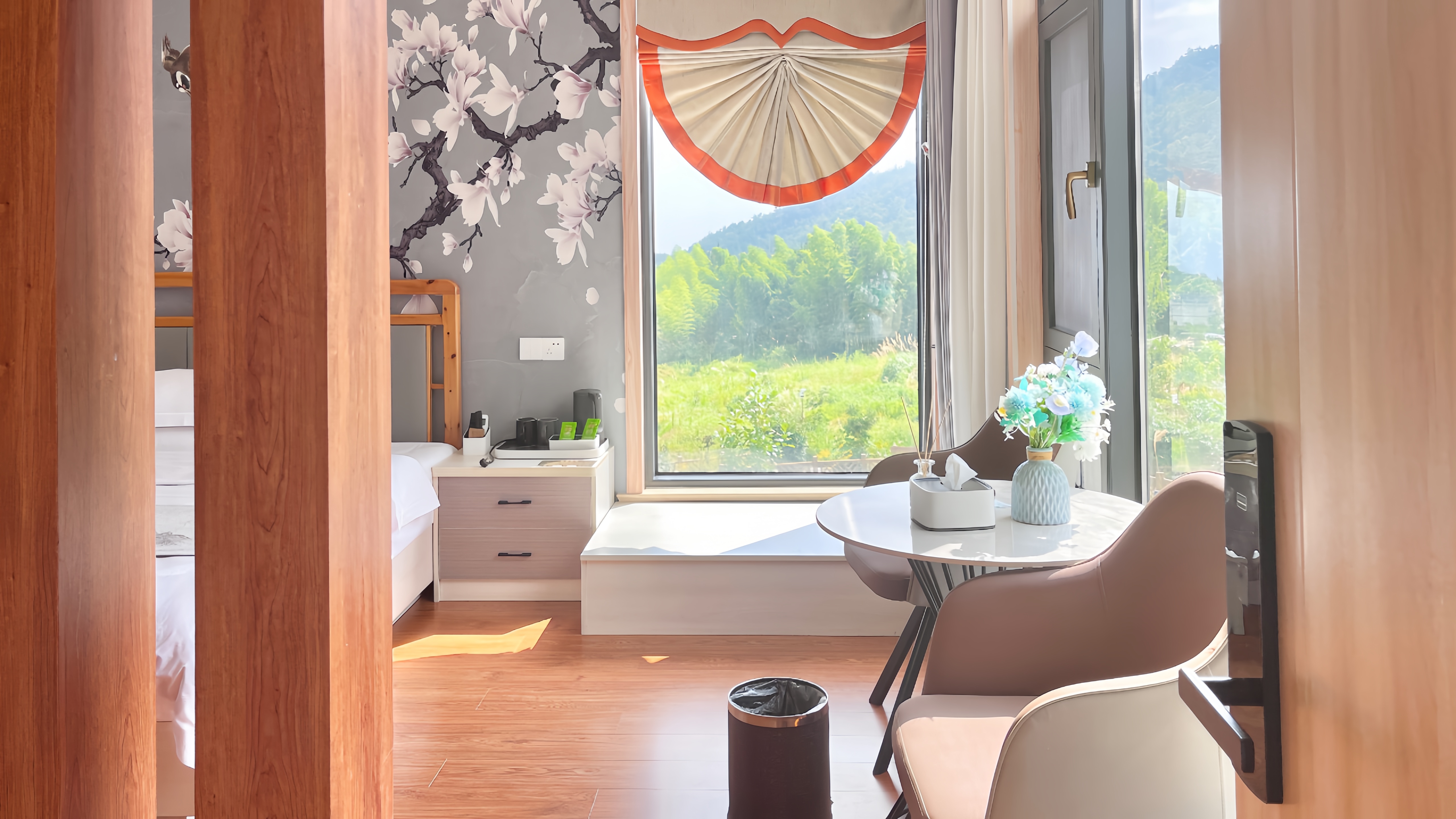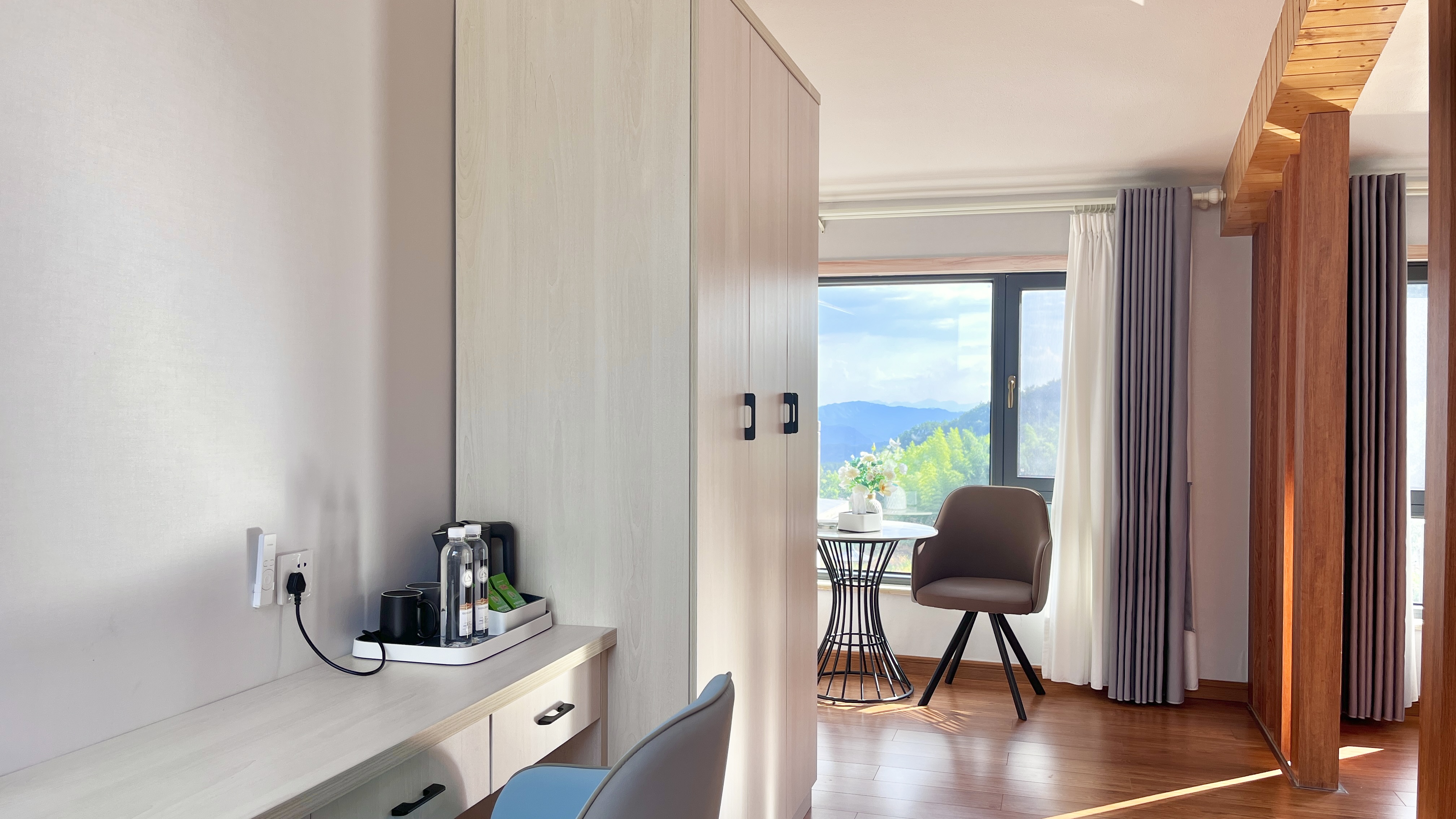 渡仙亭-雅致大床房「 270°田园景观 | 地暖 | 休闲区」