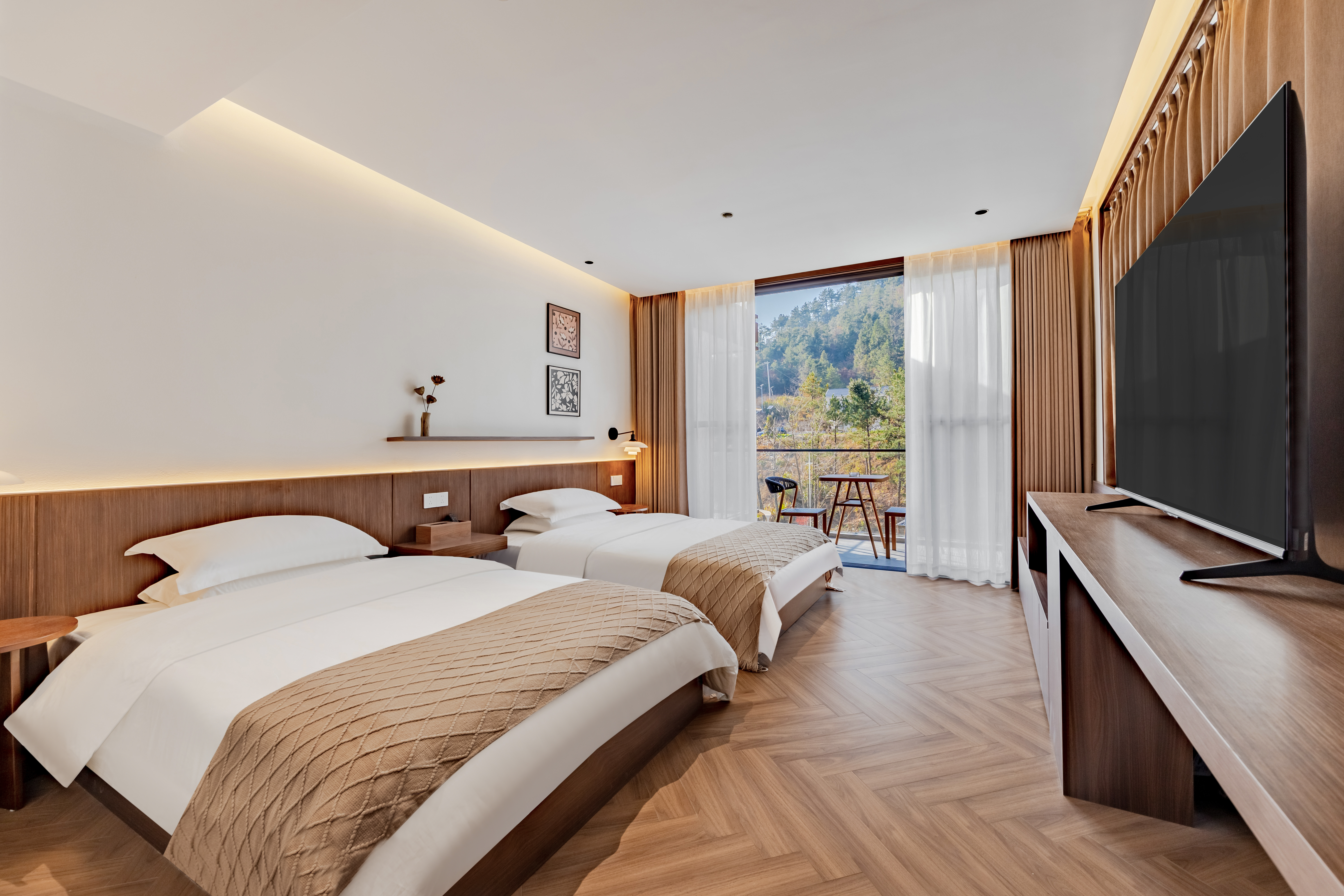 亦悠-豪华观景双床房(落地窗+独立阳台+地暖)