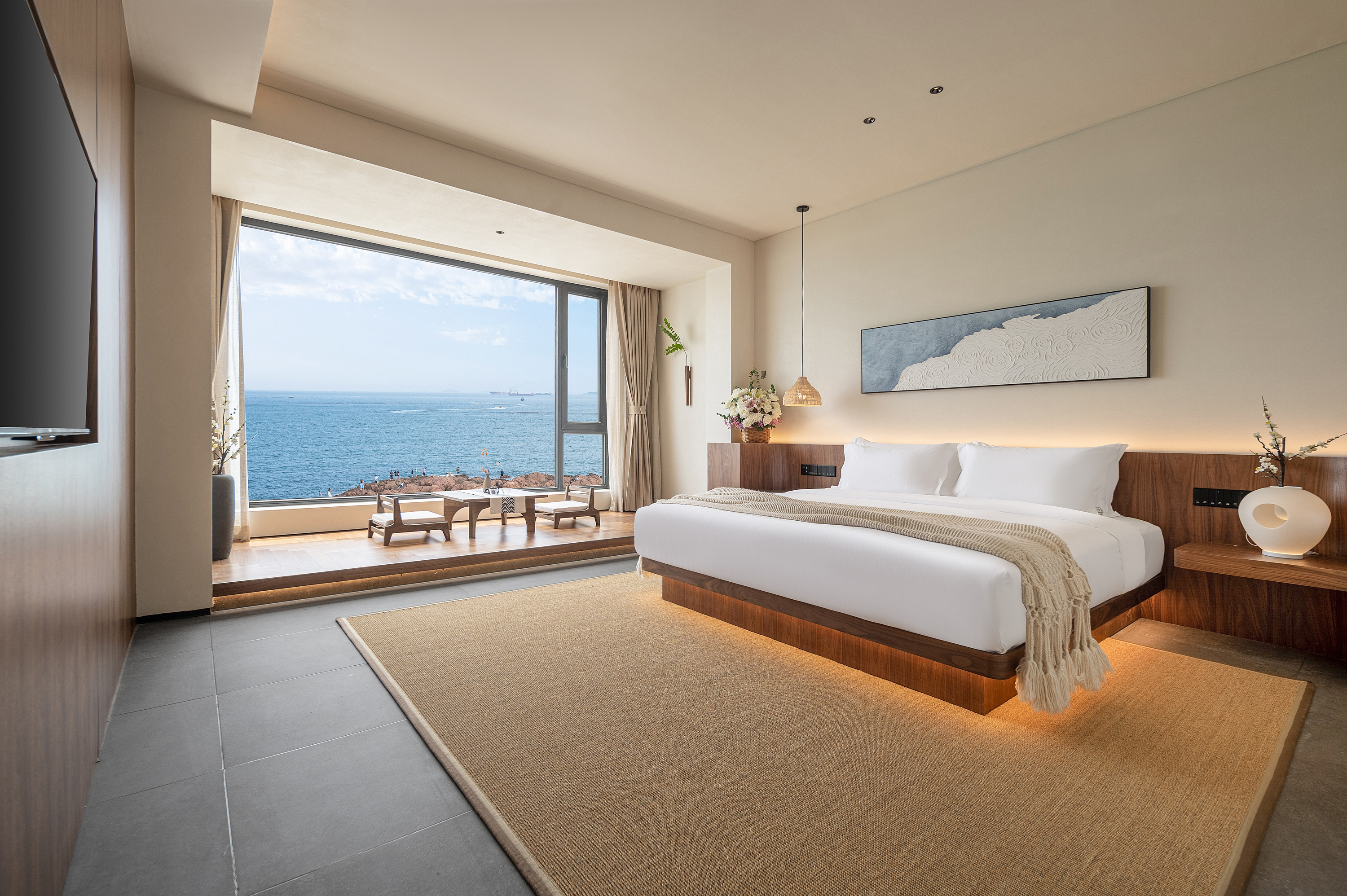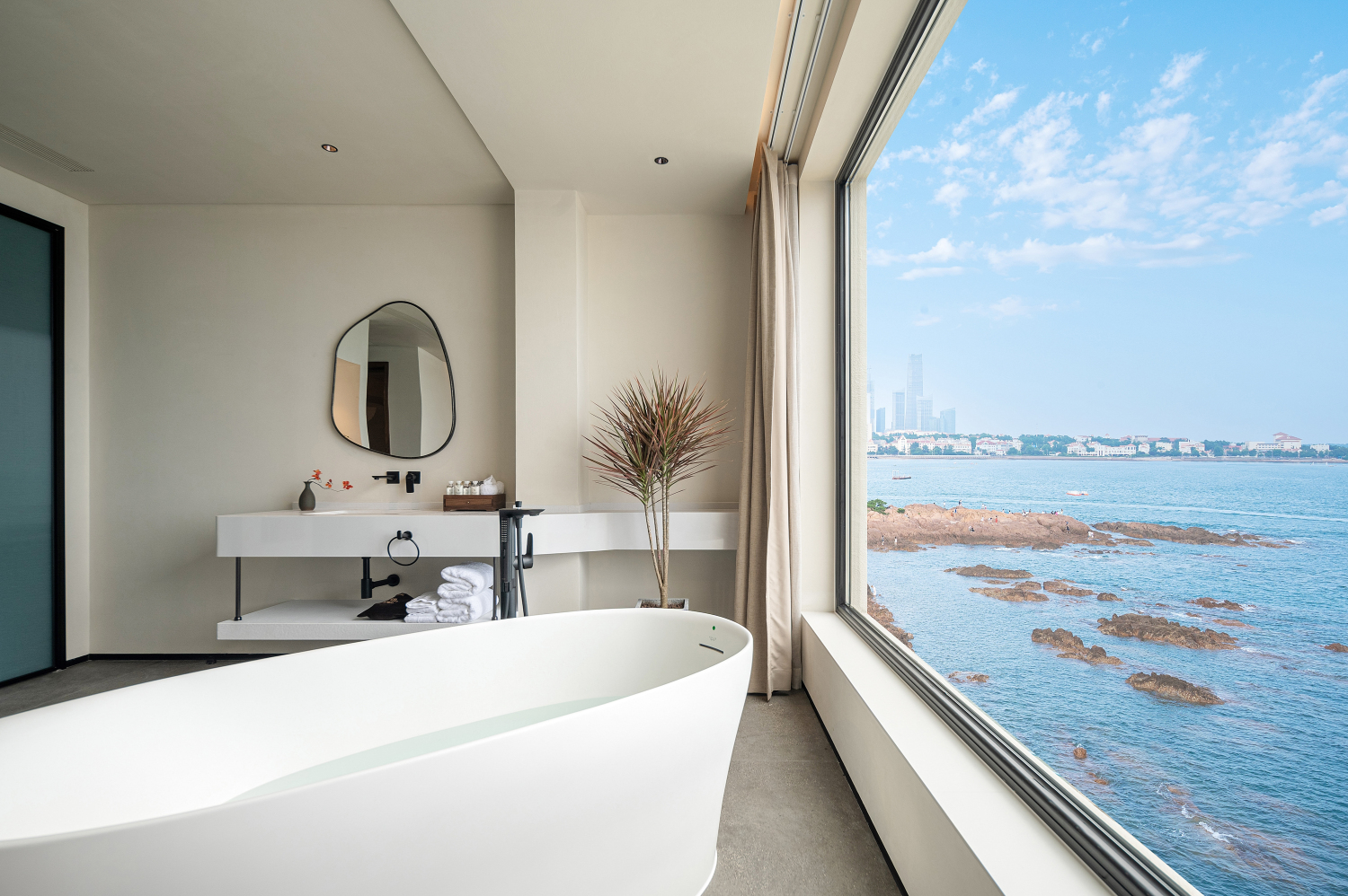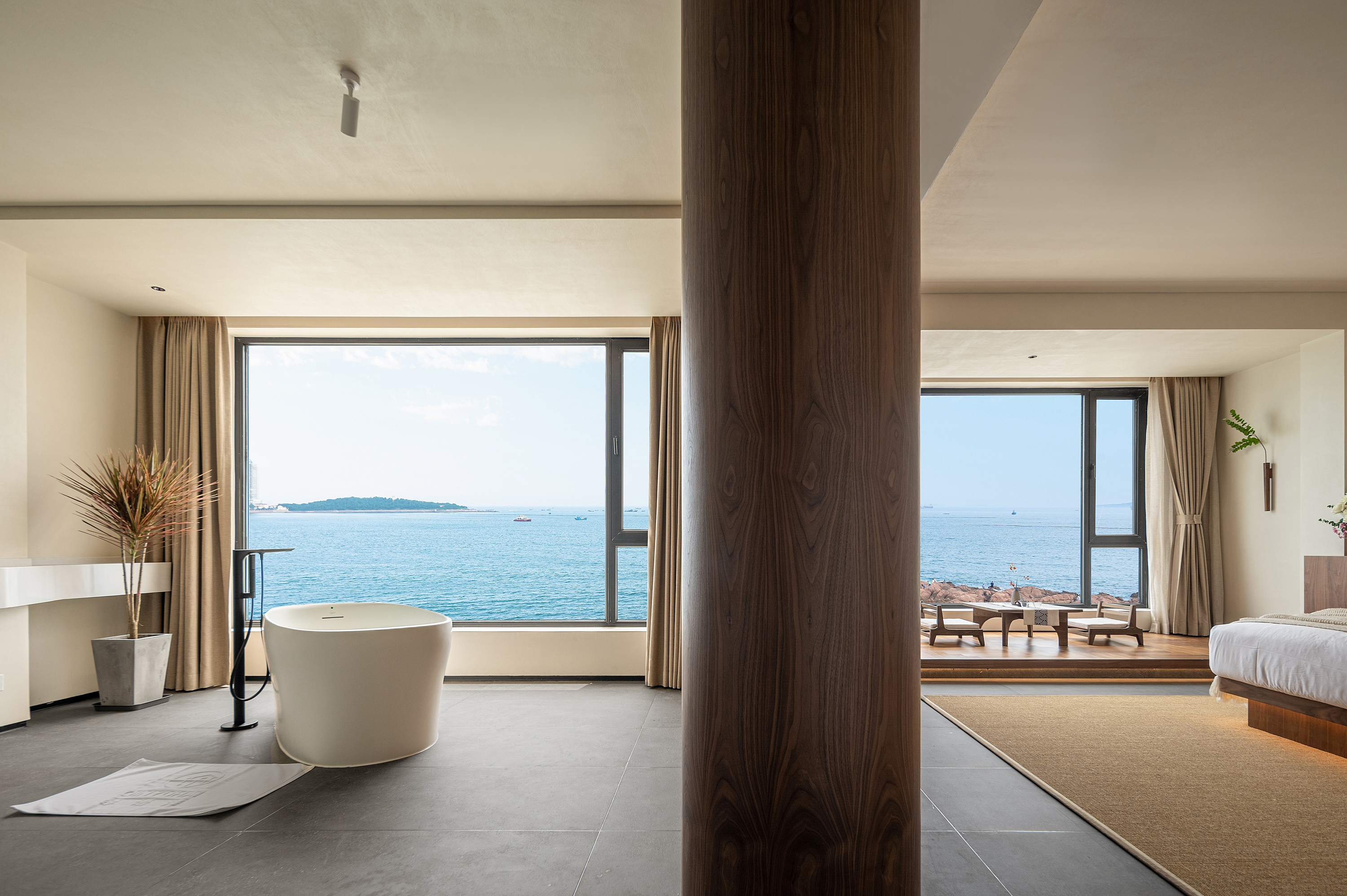 南汐·180°海景浴缸套房(床上观海景日出+ 科勒肤感浴缸+宝格丽洗护用品+戴森吹风机+科勒智能马桶+鹅绒床品+地暖)