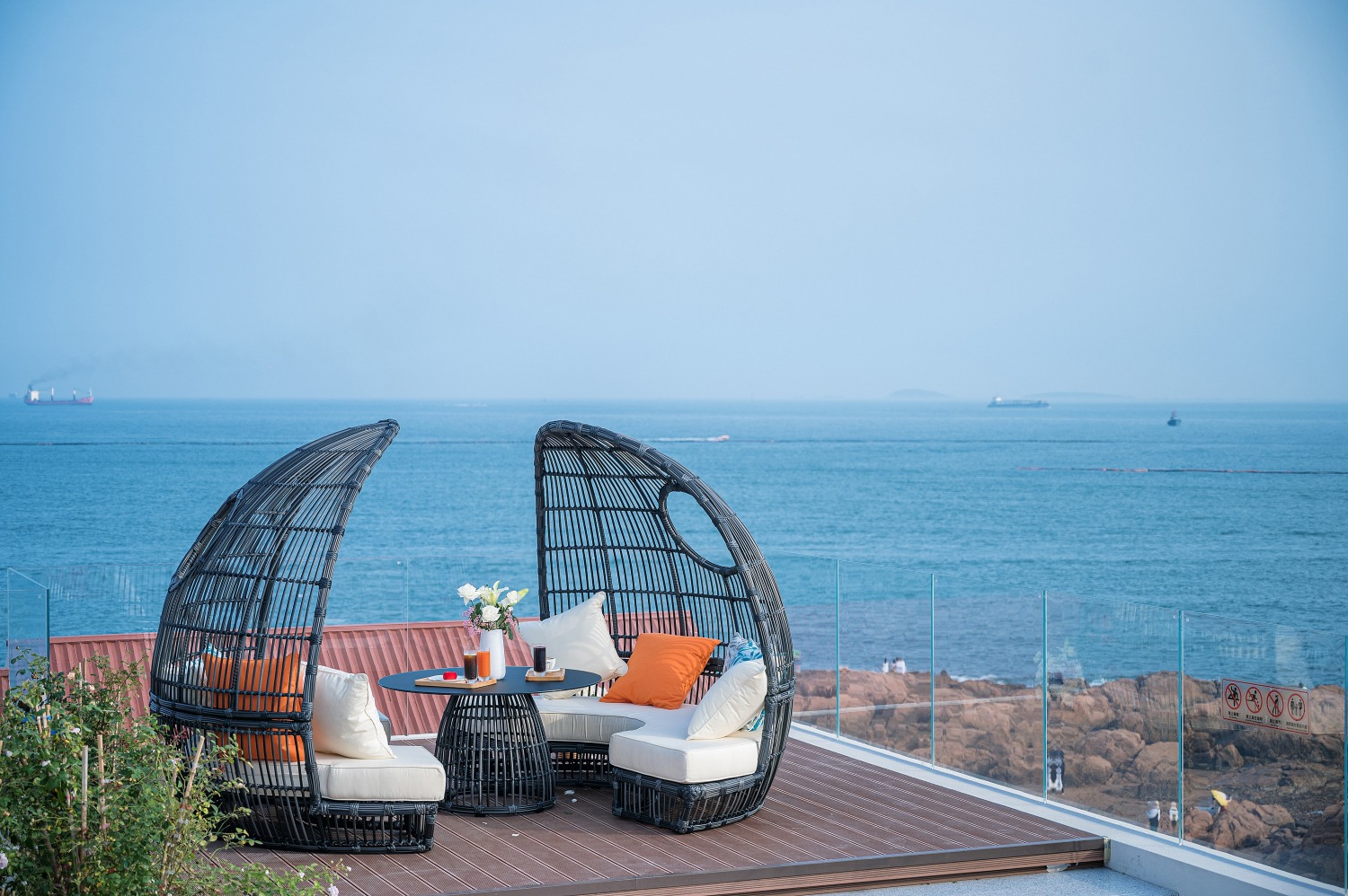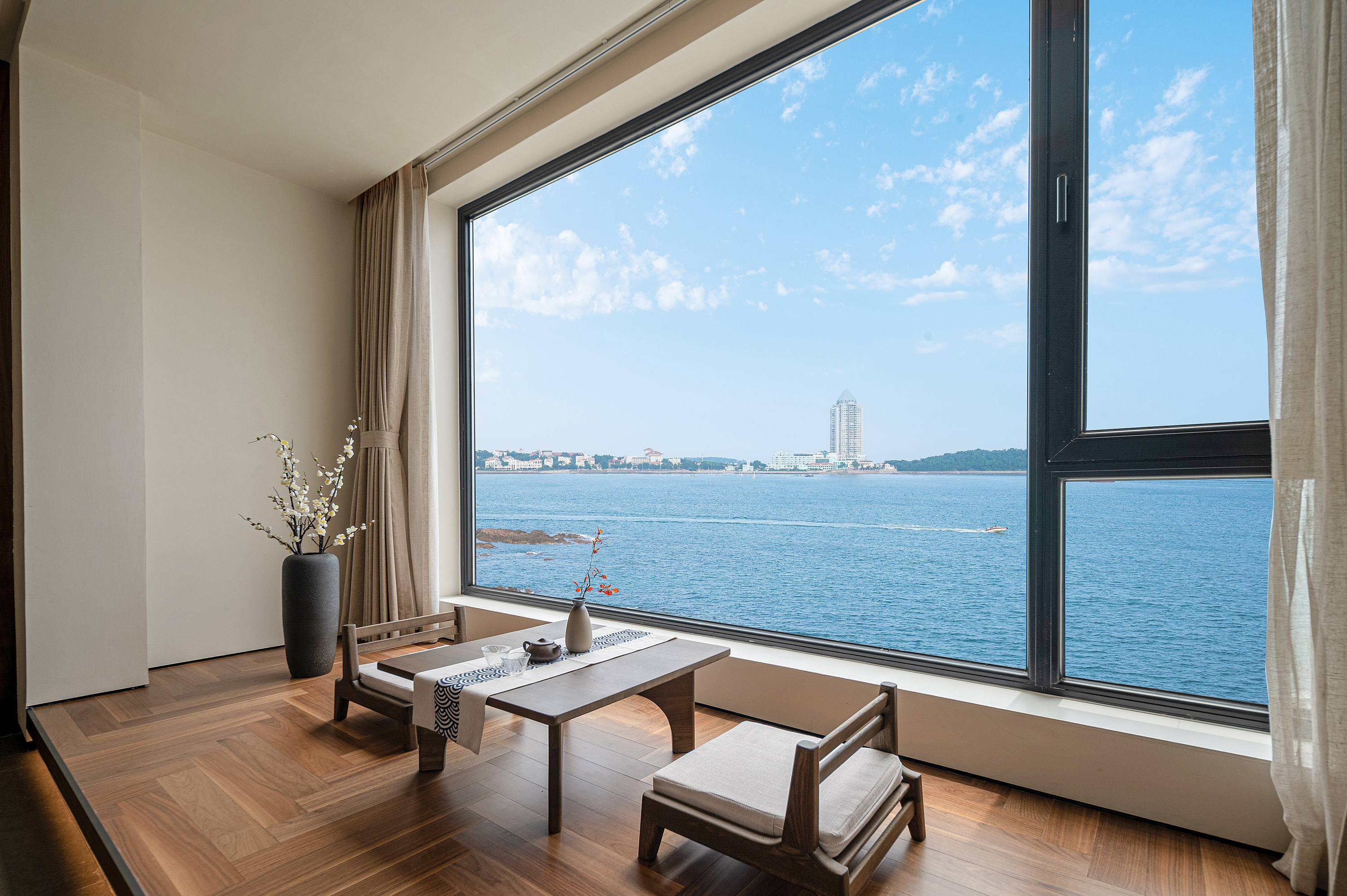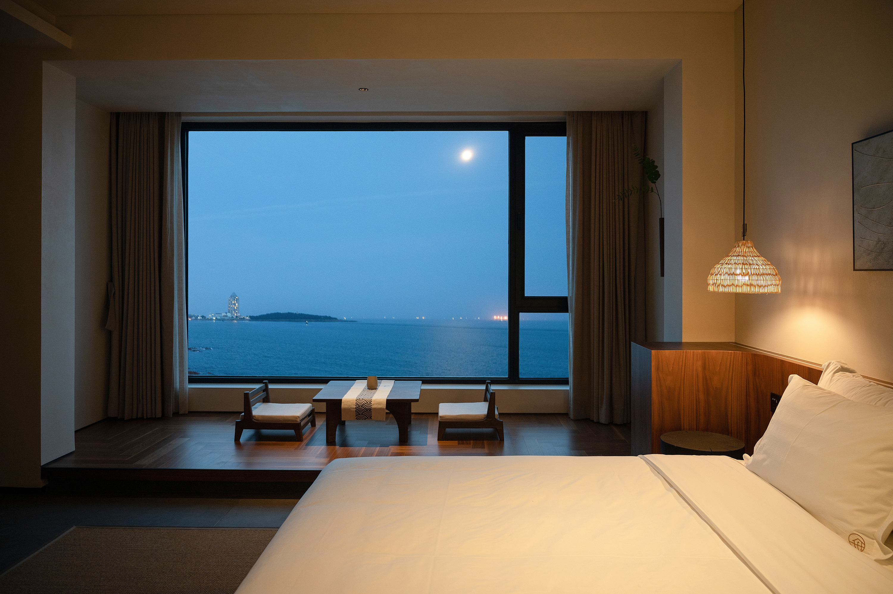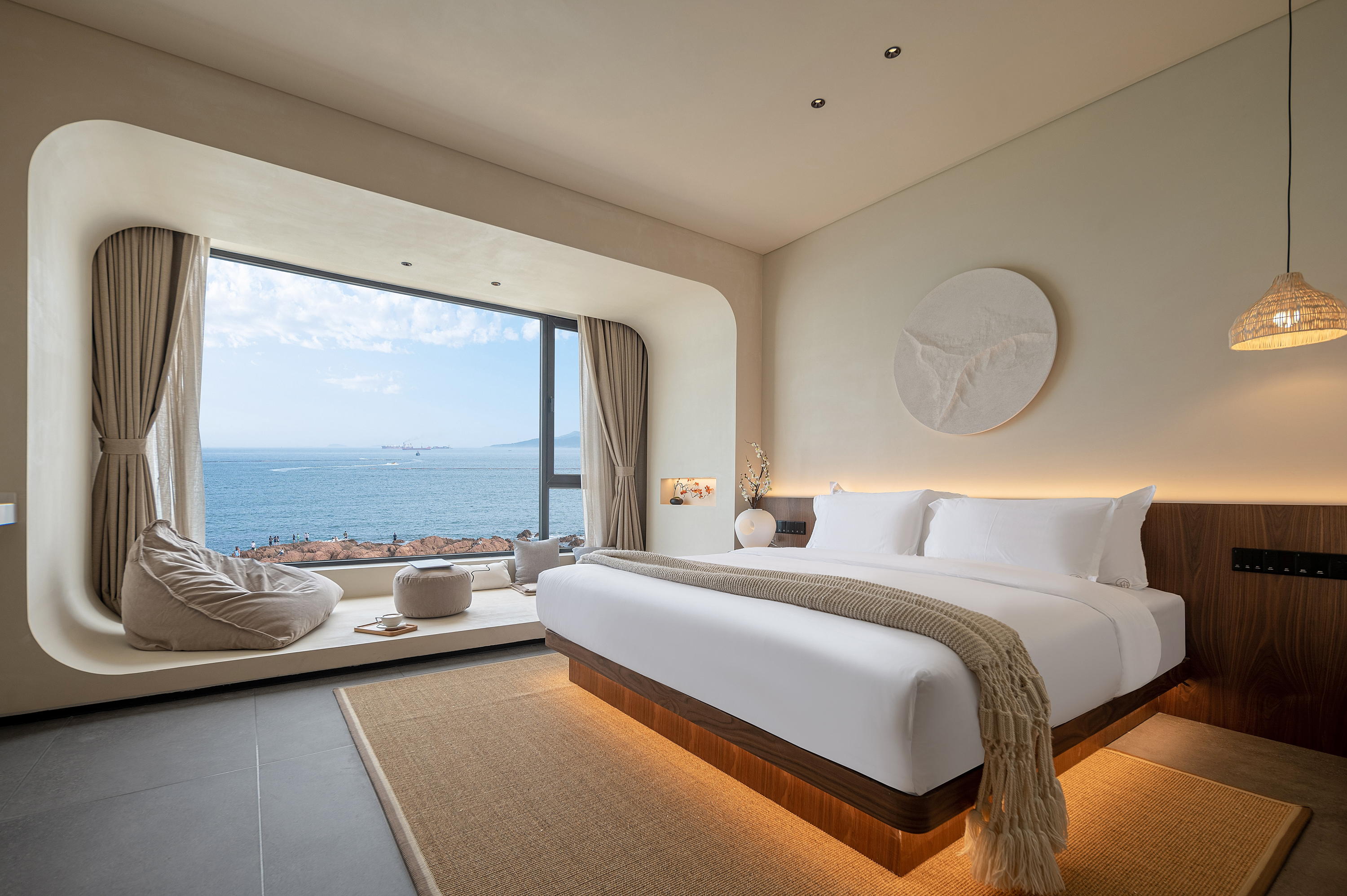 南汐·180°海景浴缸套房(床上观海景日出+ 科勒肤感浴缸+宝格丽洗护用品+戴森吹风机+科勒智能马桶+鹅绒床品+地暖)