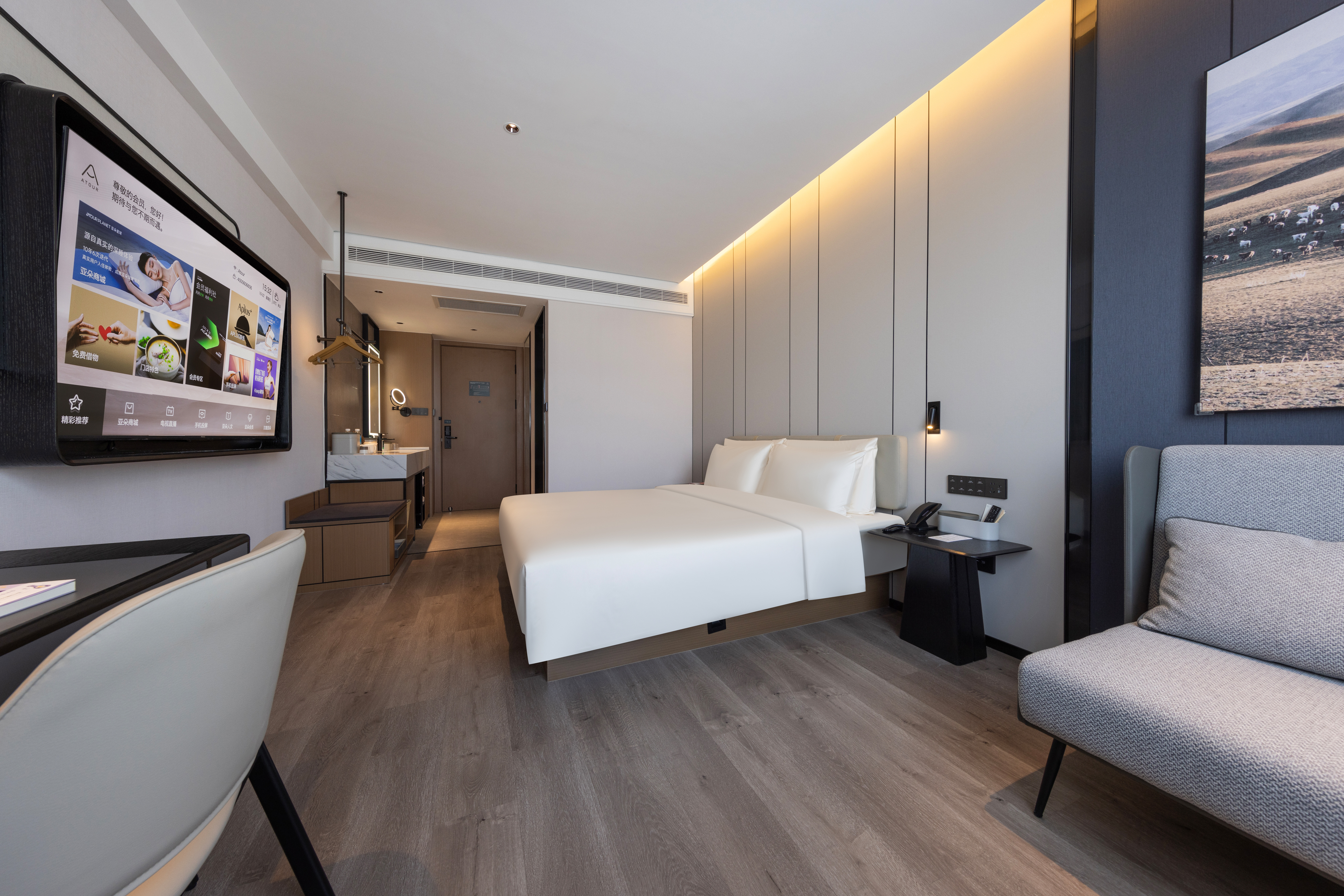 几木大床房(深睡枕+智能马桶+小冰箱+65寸电视投屏)
