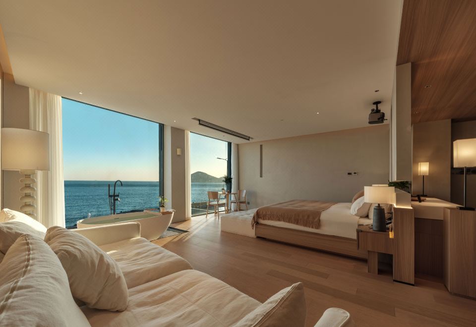 汀海·氛围感海景大床房(海景浴缸+迷你冰箱+智能家居)