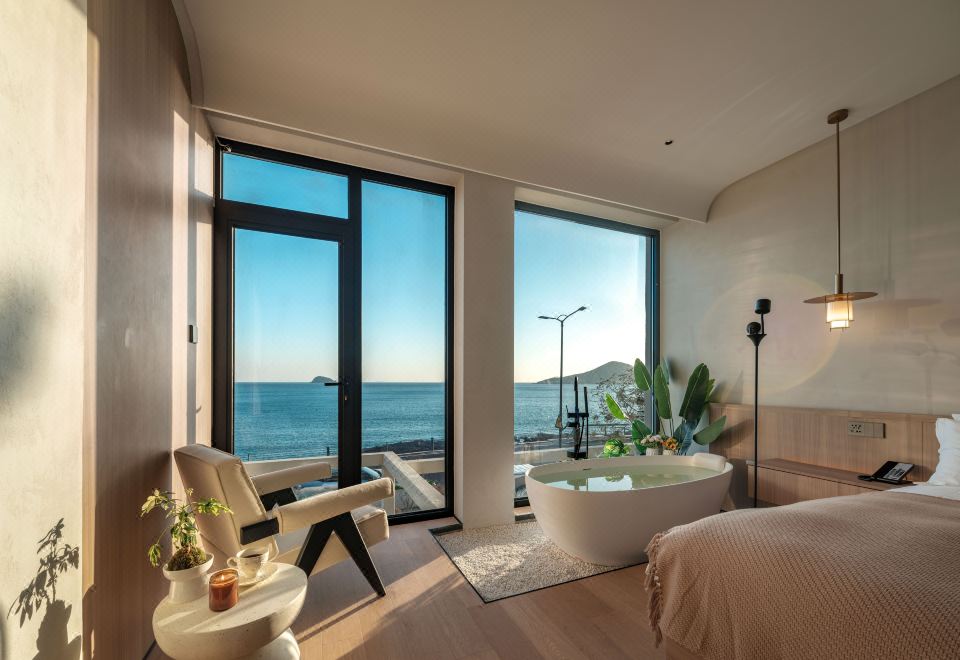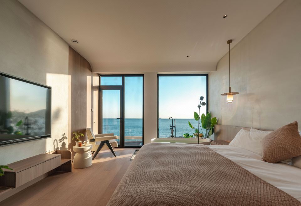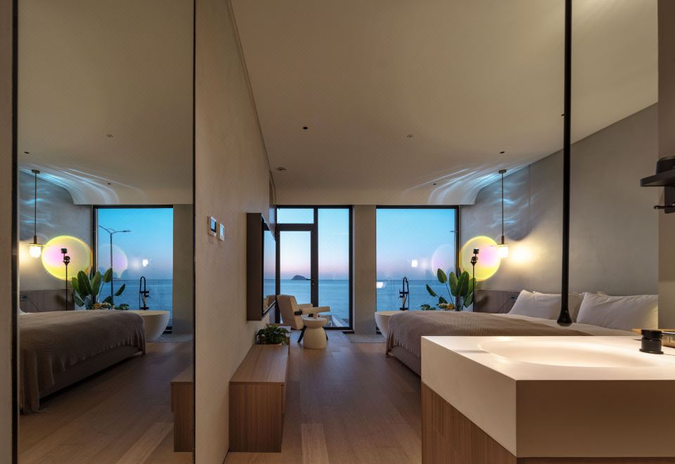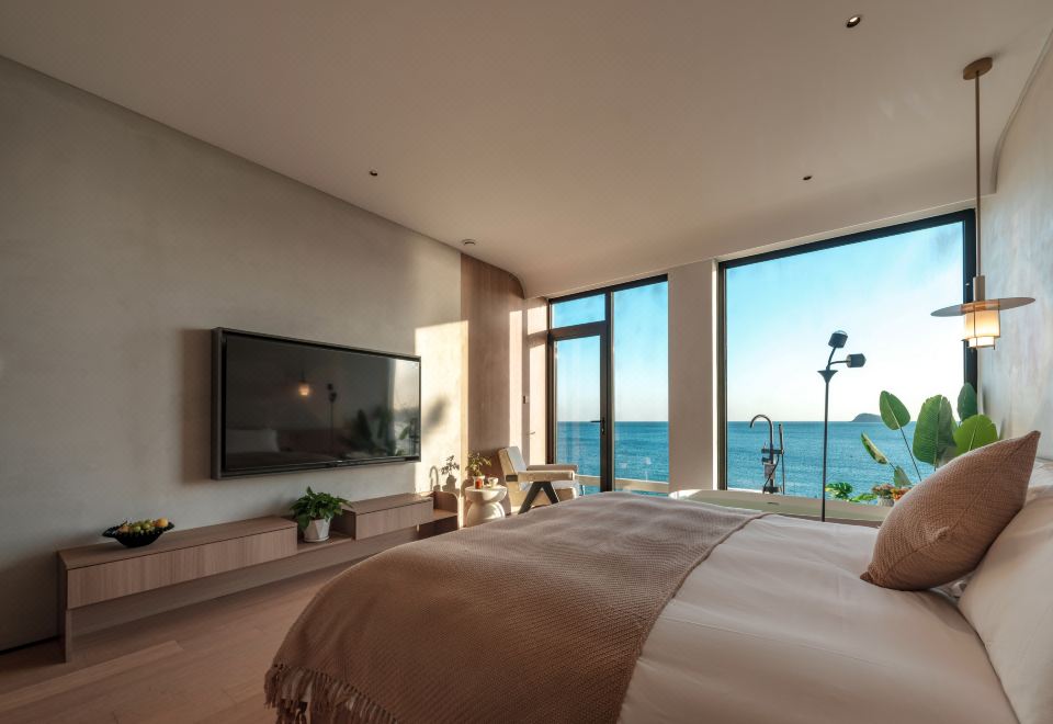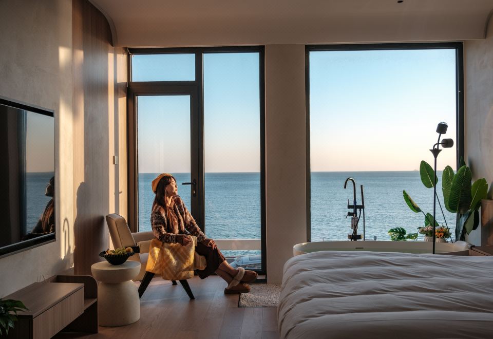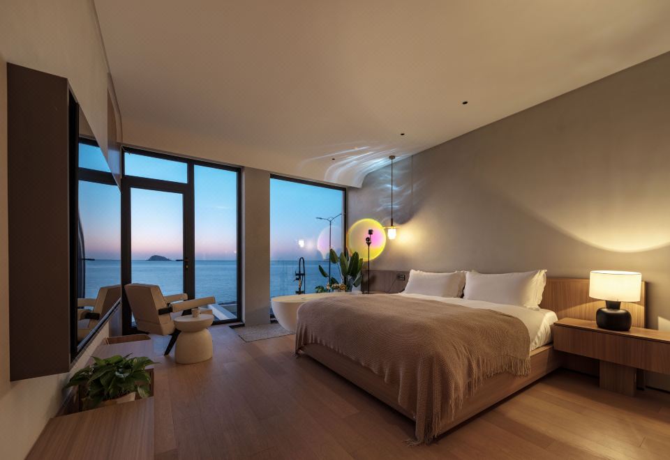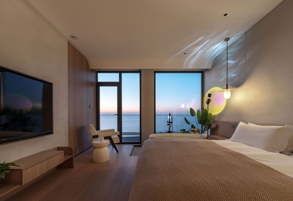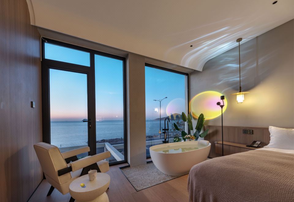汀海·氛围感海景大床房(海景浴缸+迷你冰箱+智能家居)