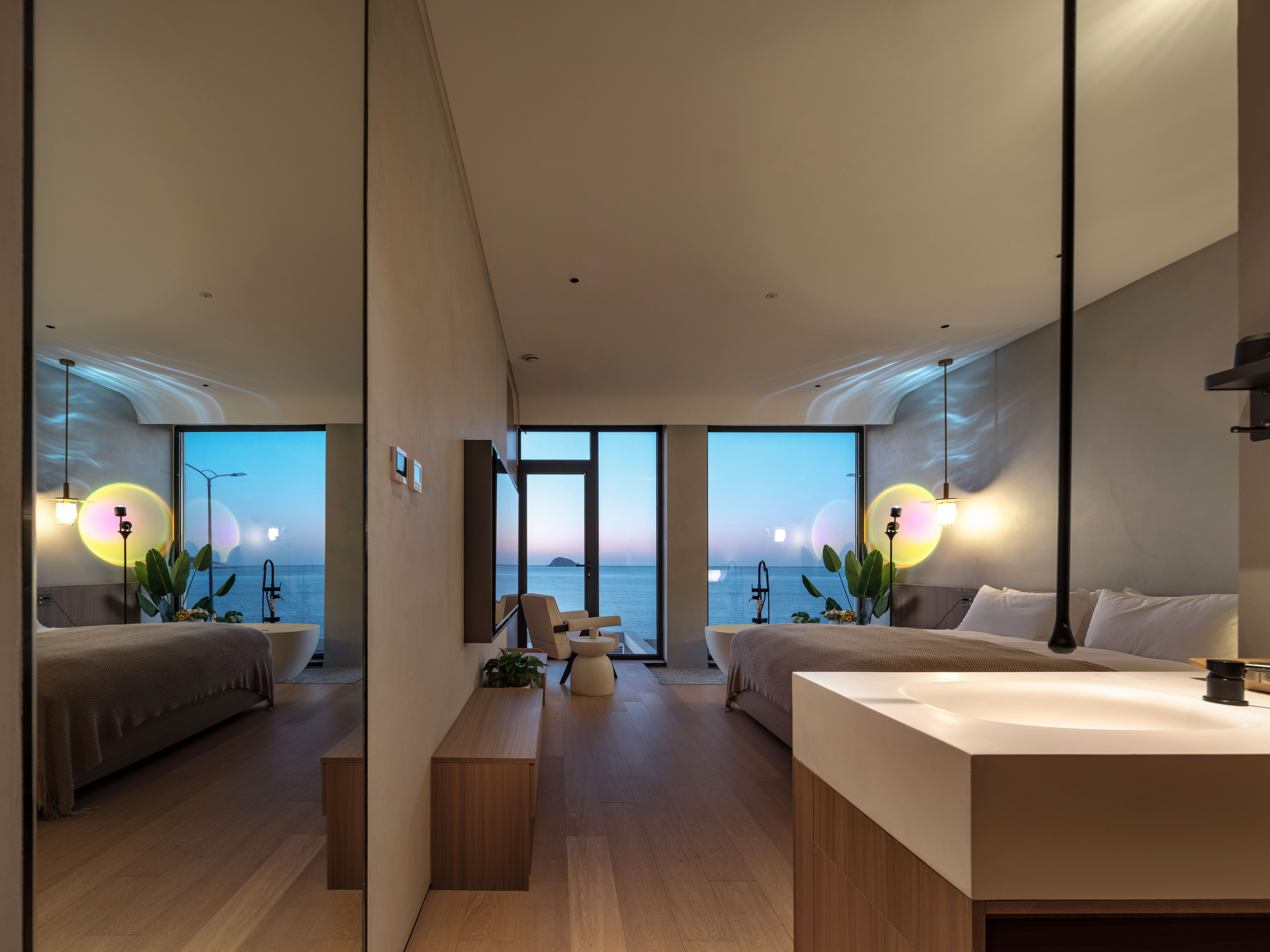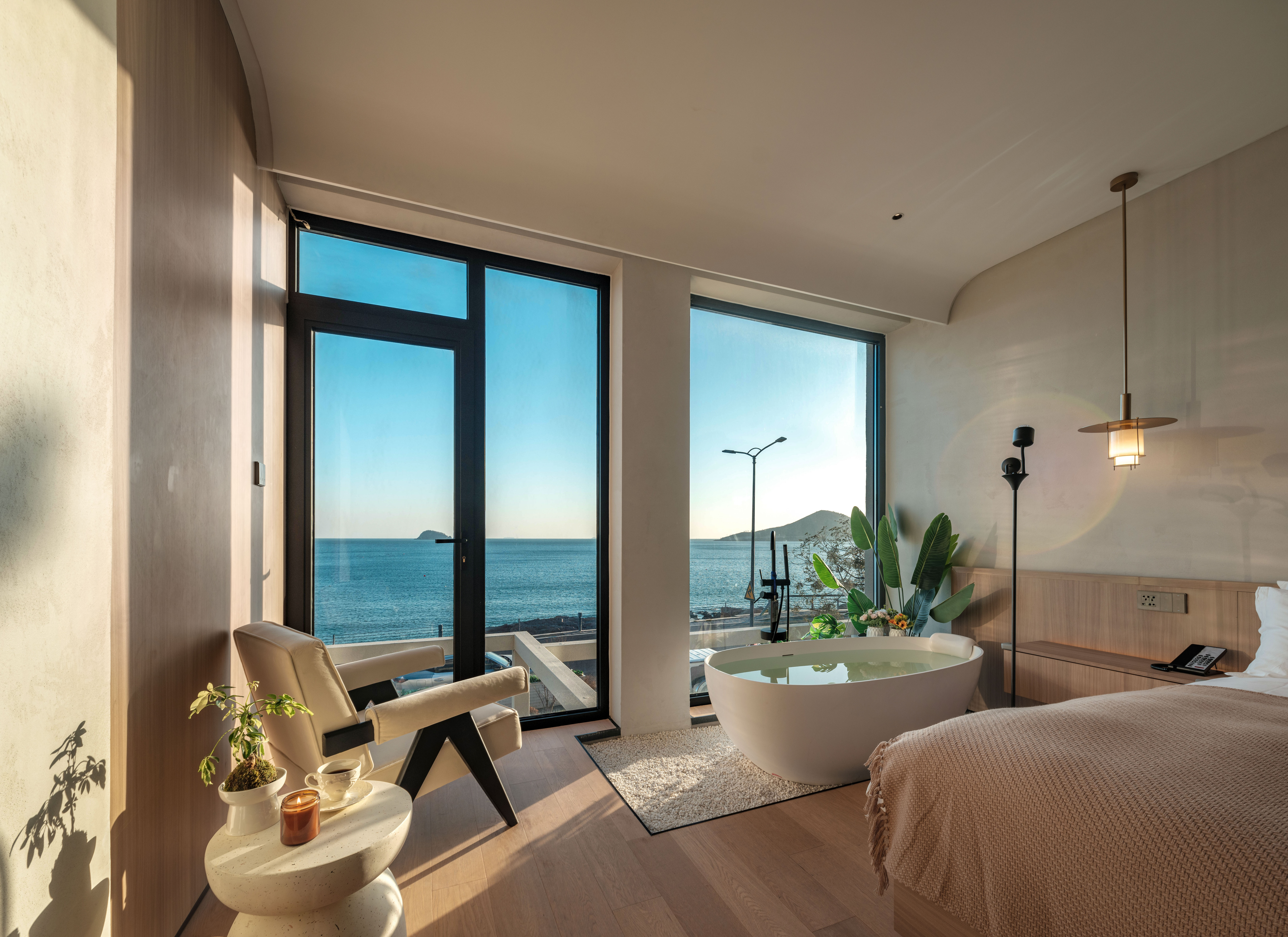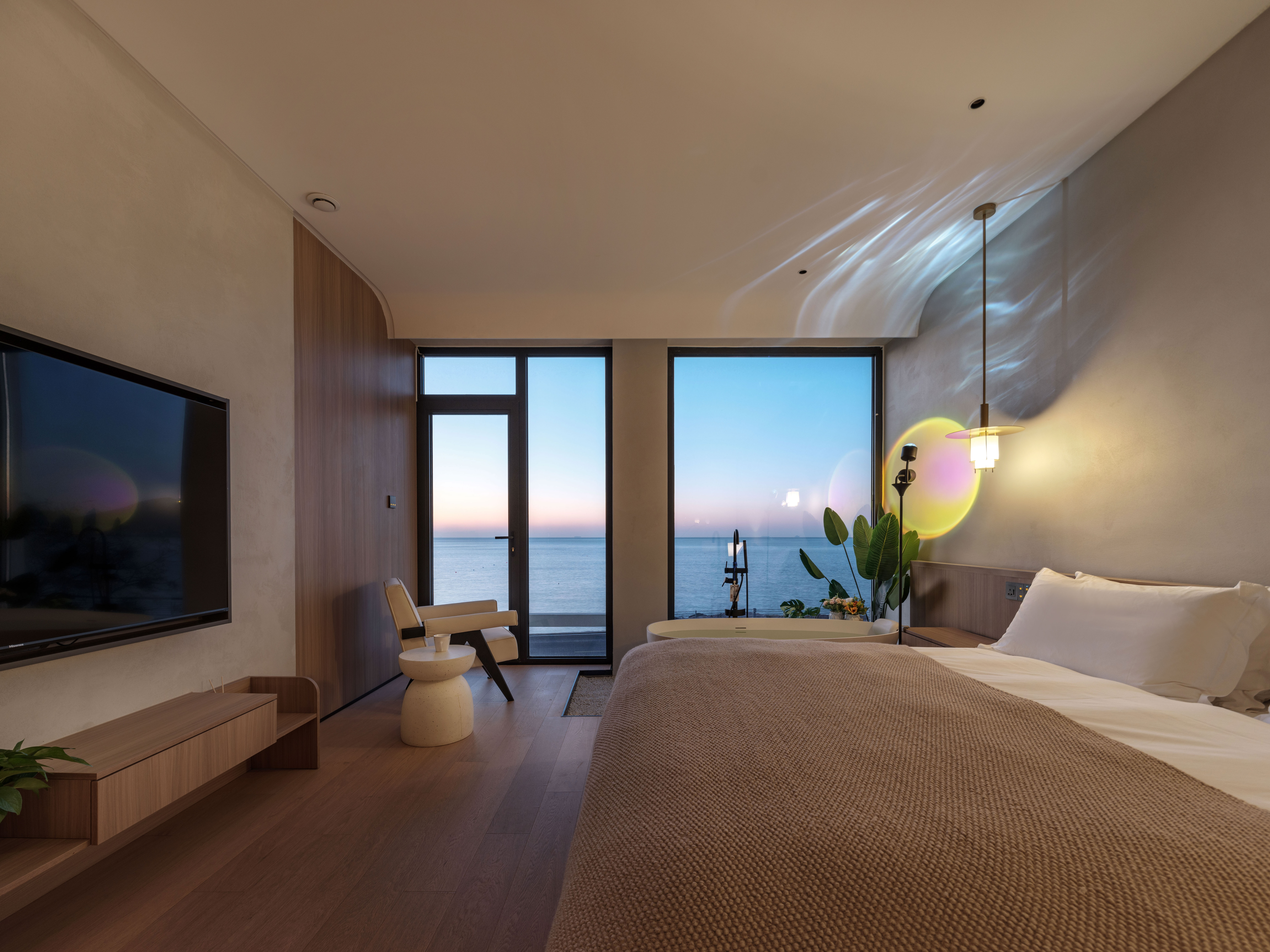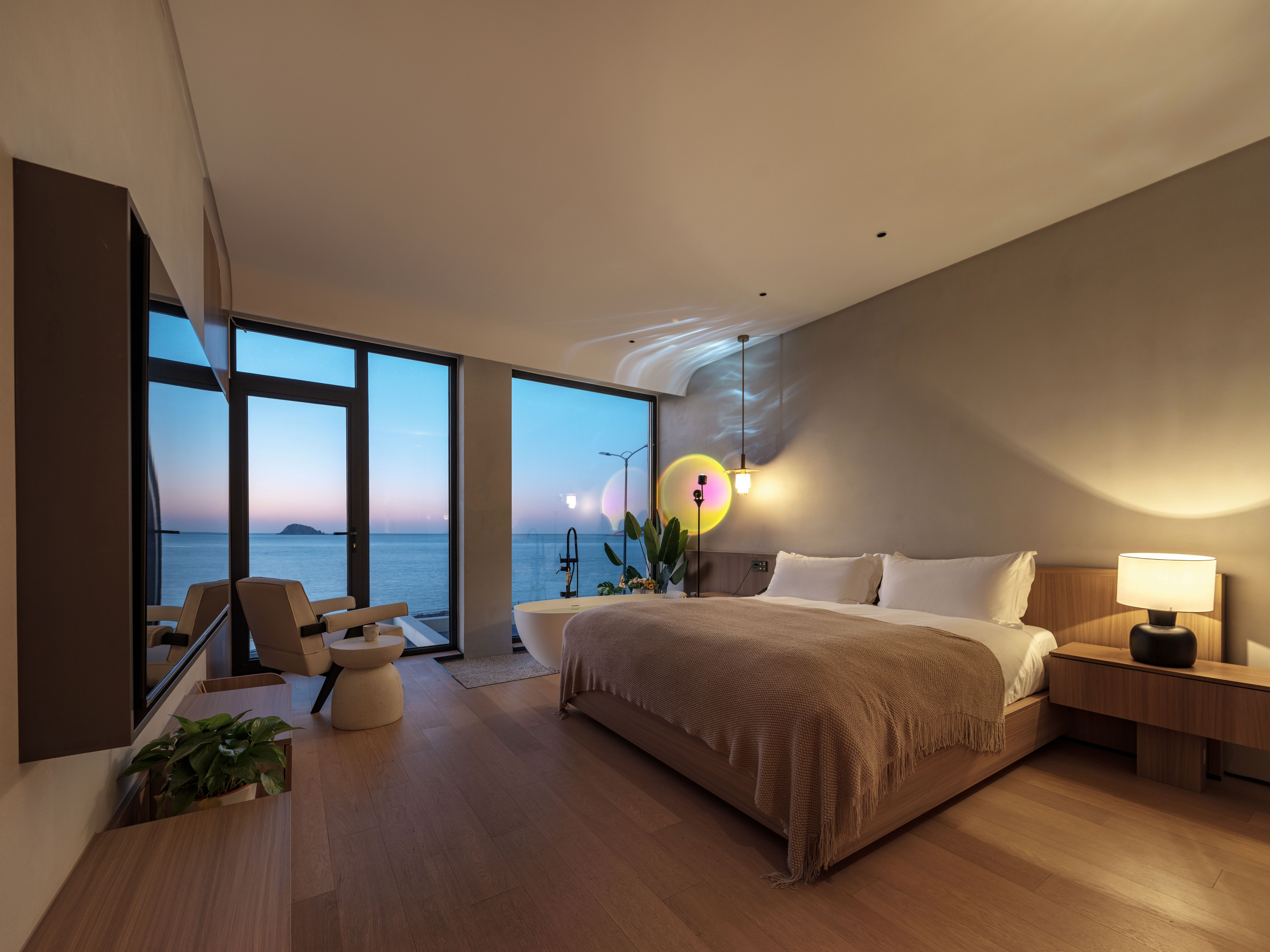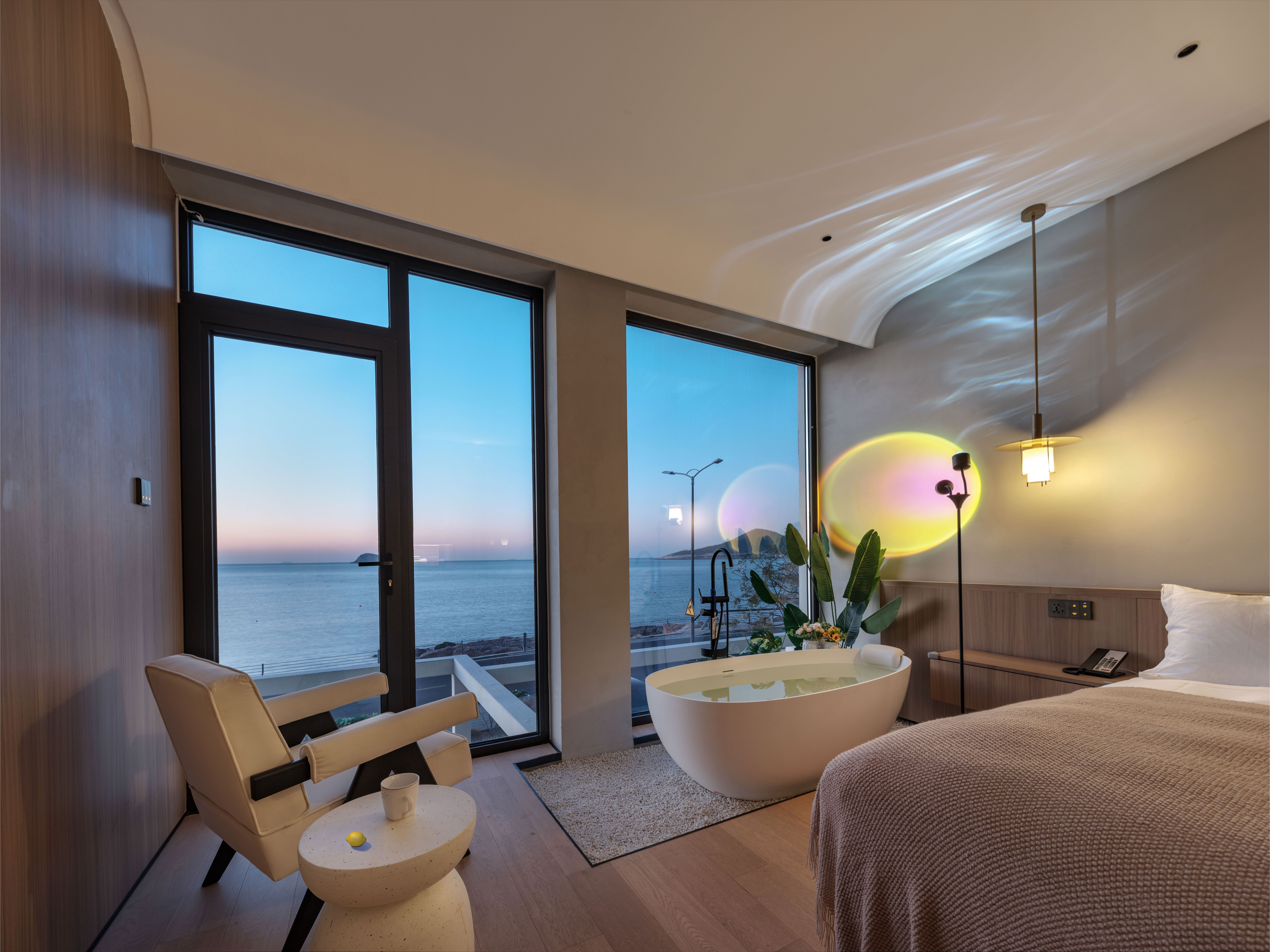 汀海·氛围感海景大床房(海景浴缸+迷你冰箱+智能家居)