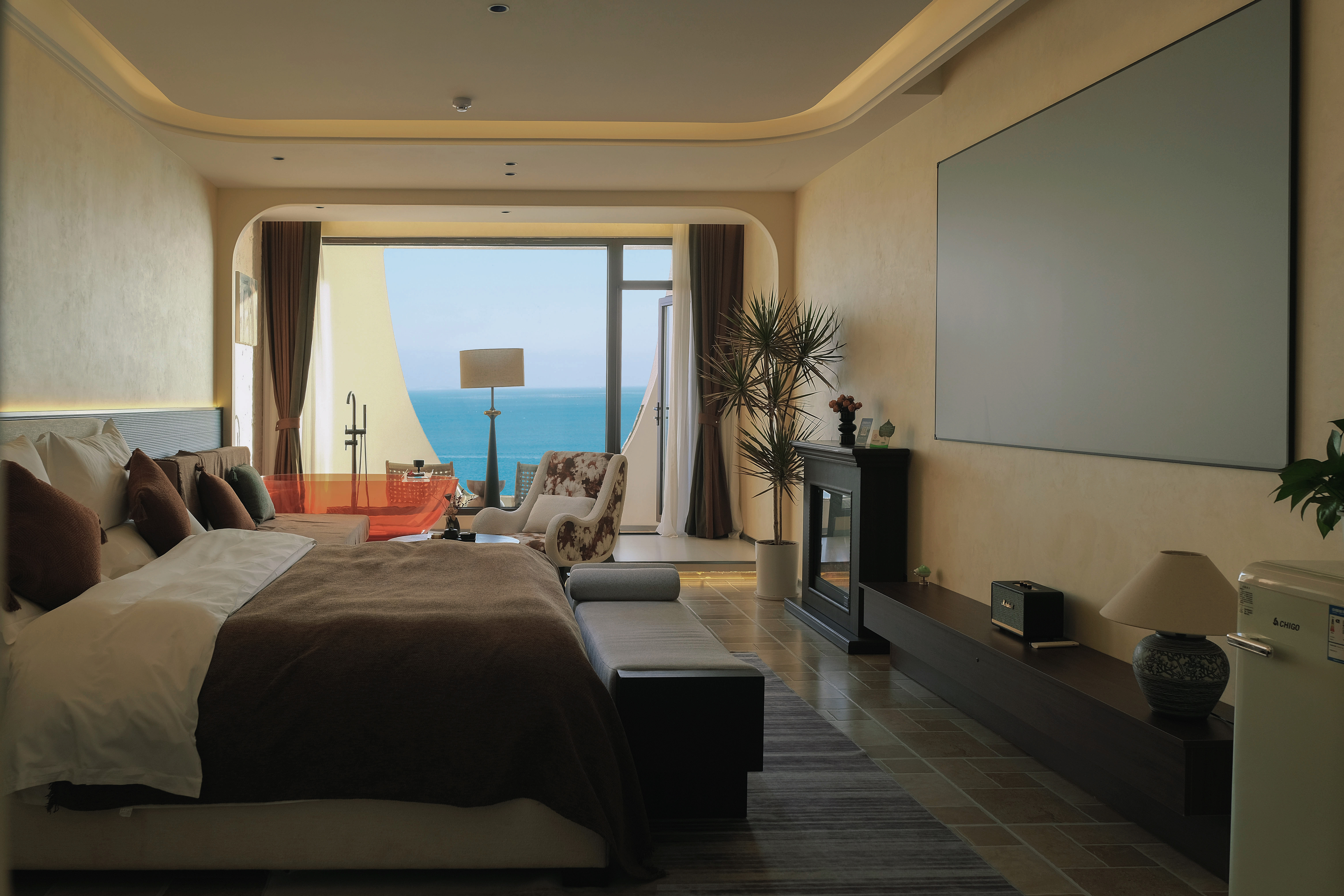 雅事·听雨·全海景艺术壁炉海景私人露台大床房+私享影院