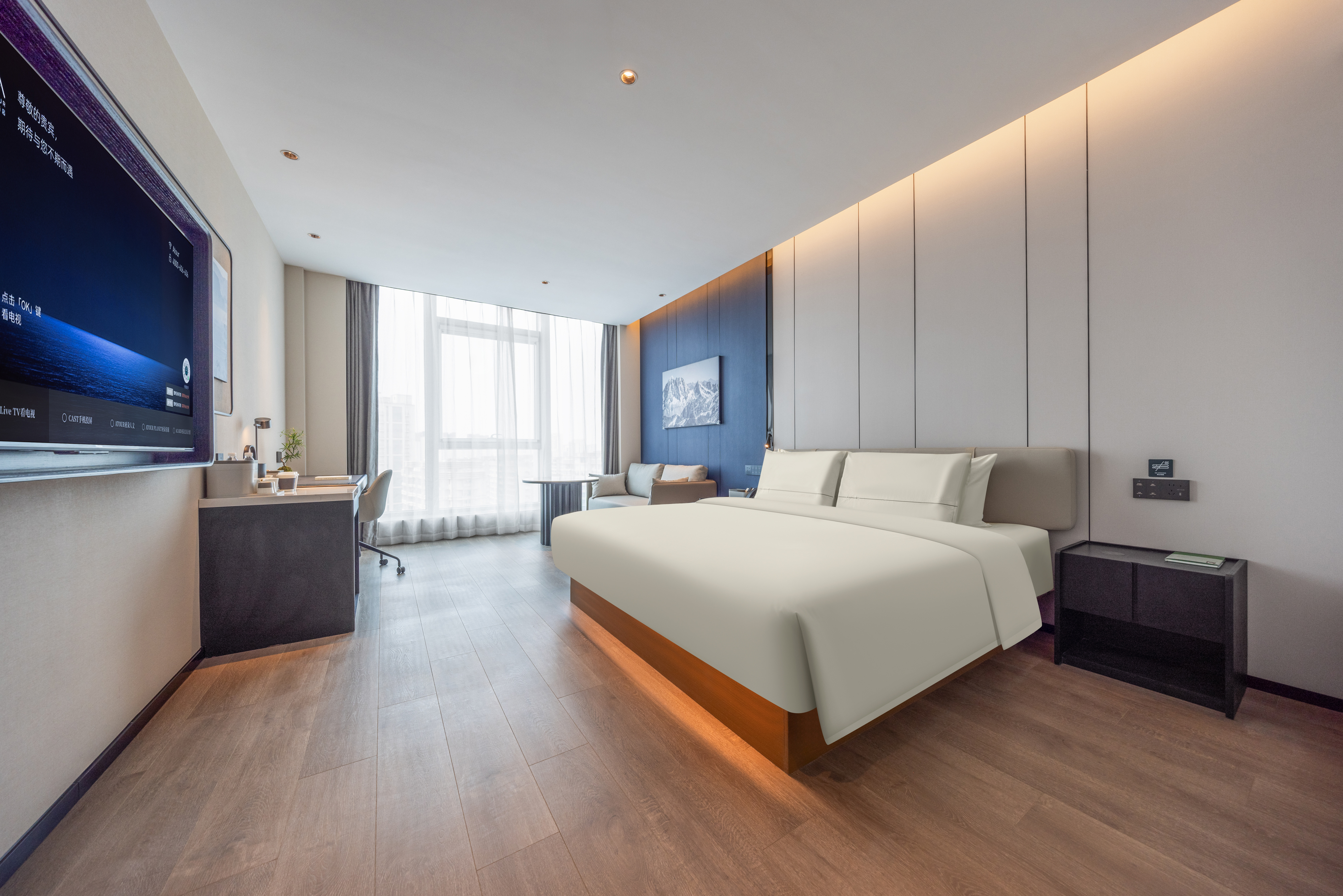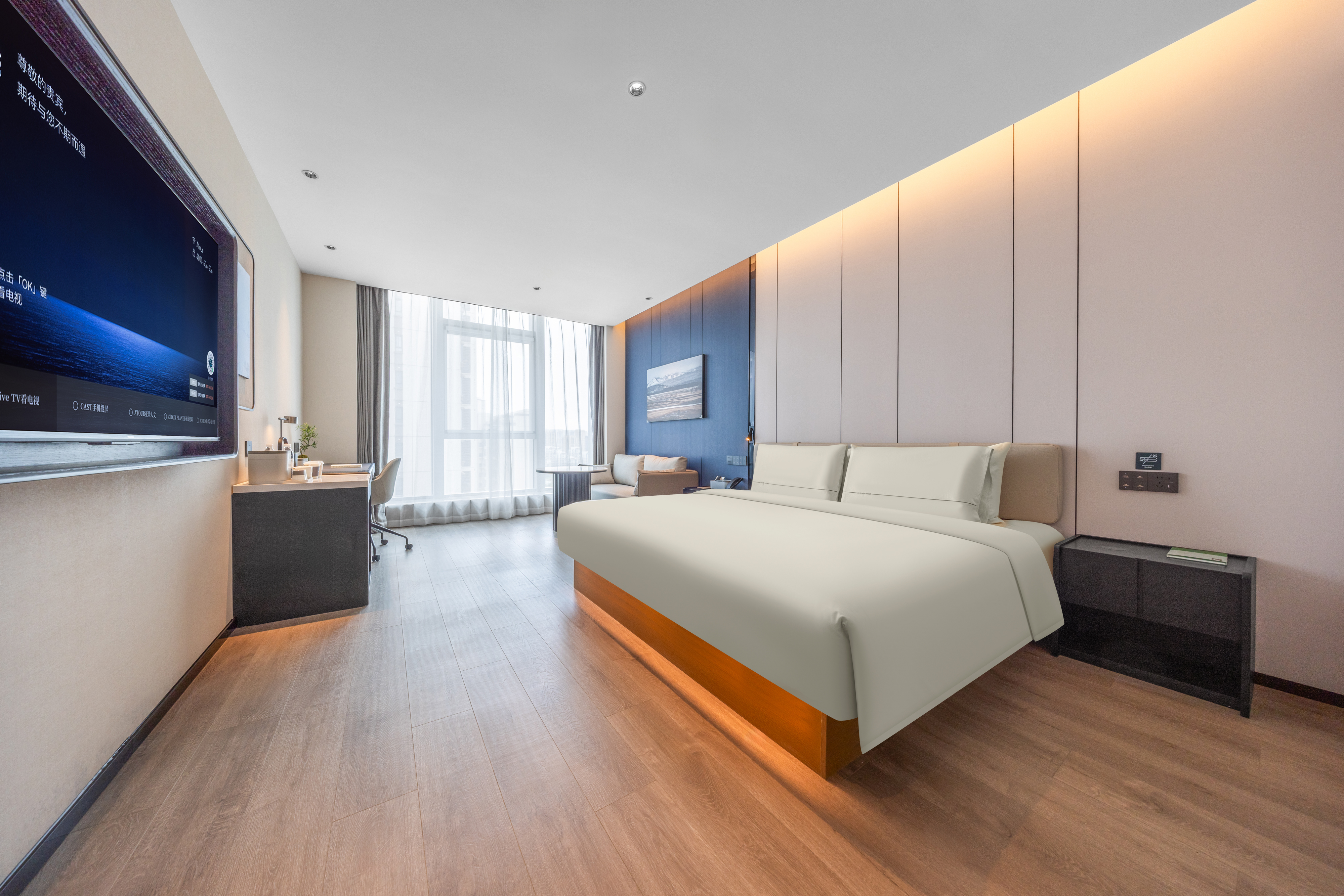 高级大床房(落地窗-亚朵深睡系列床品-小冰箱-投屏)