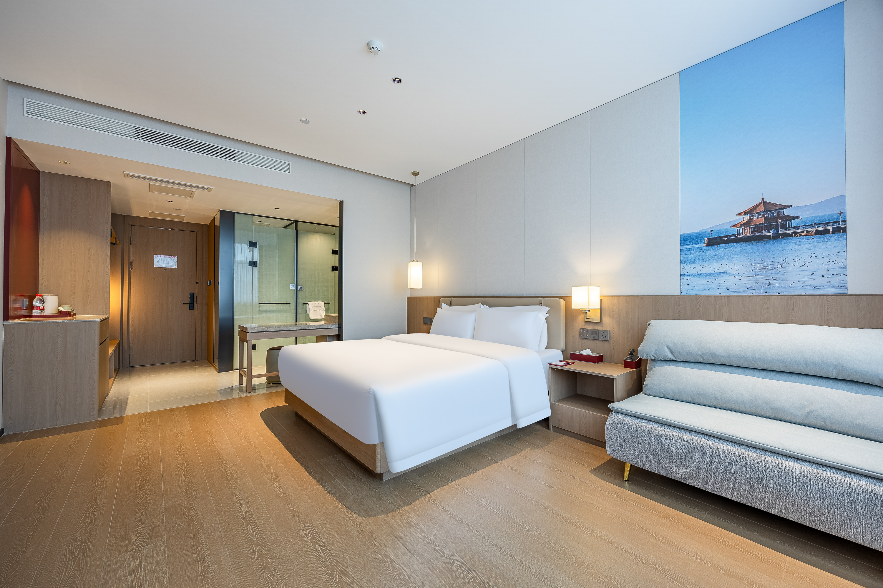 高级大床房(摺叠梳化床+零压床垫+记忆枕+智能家居)