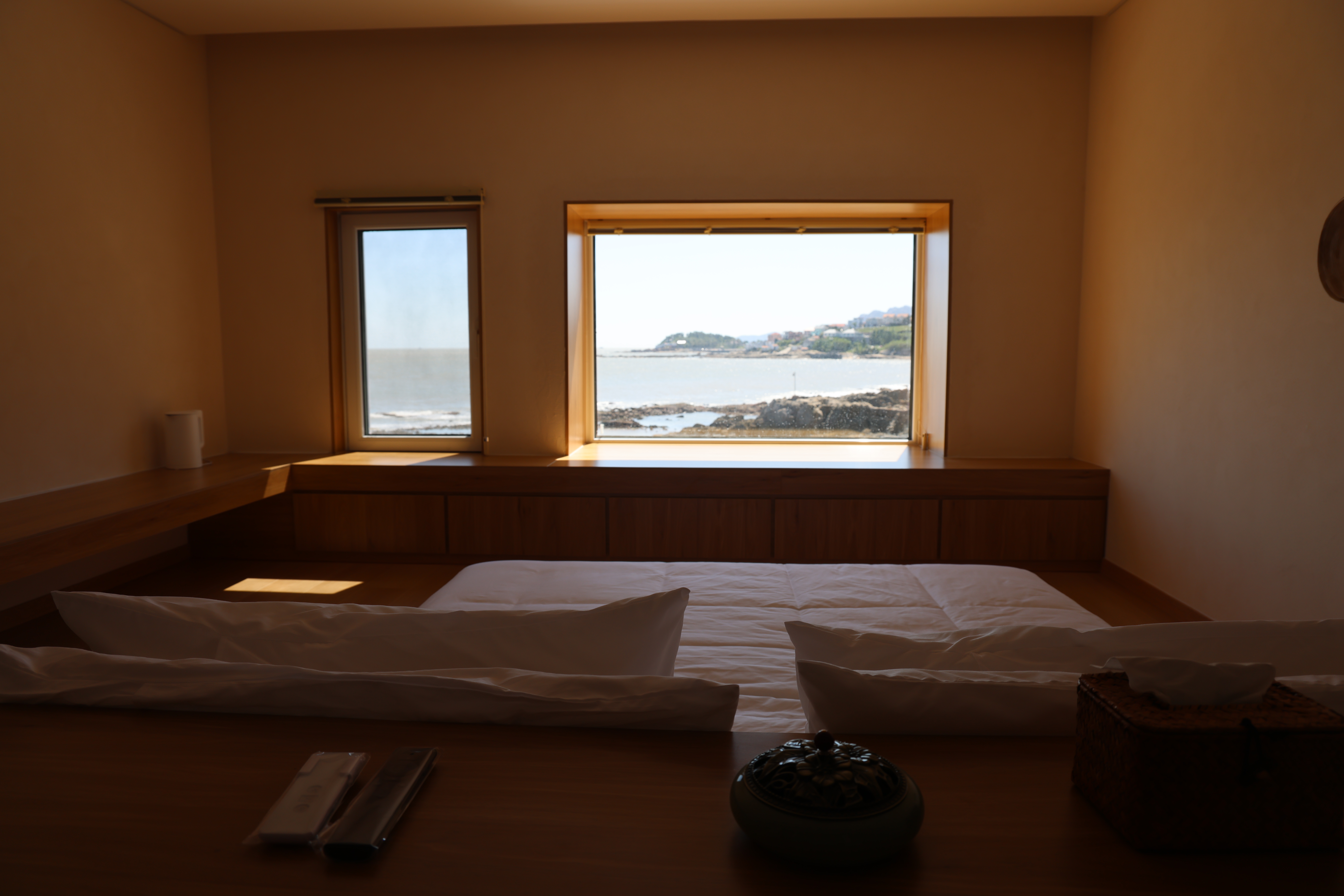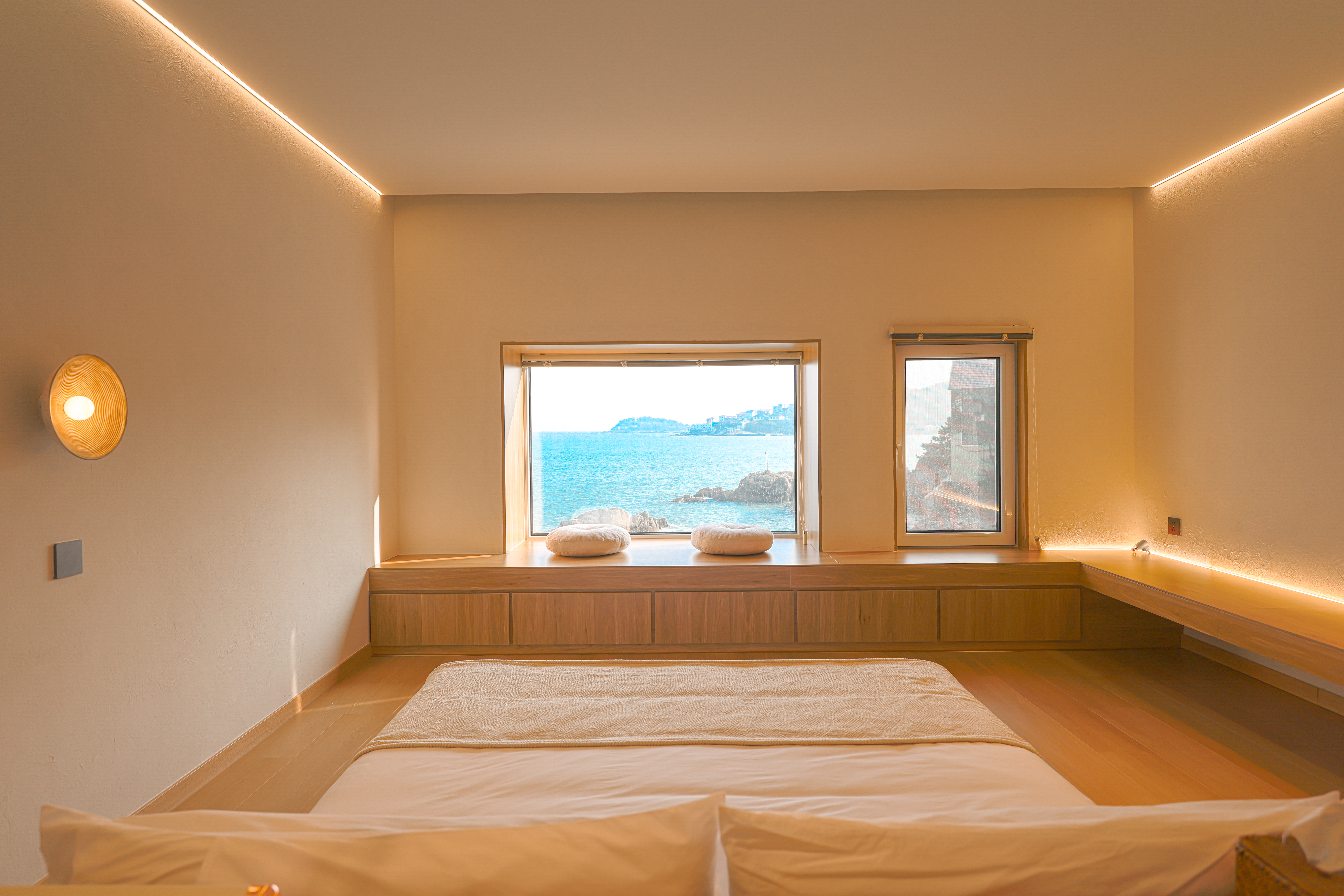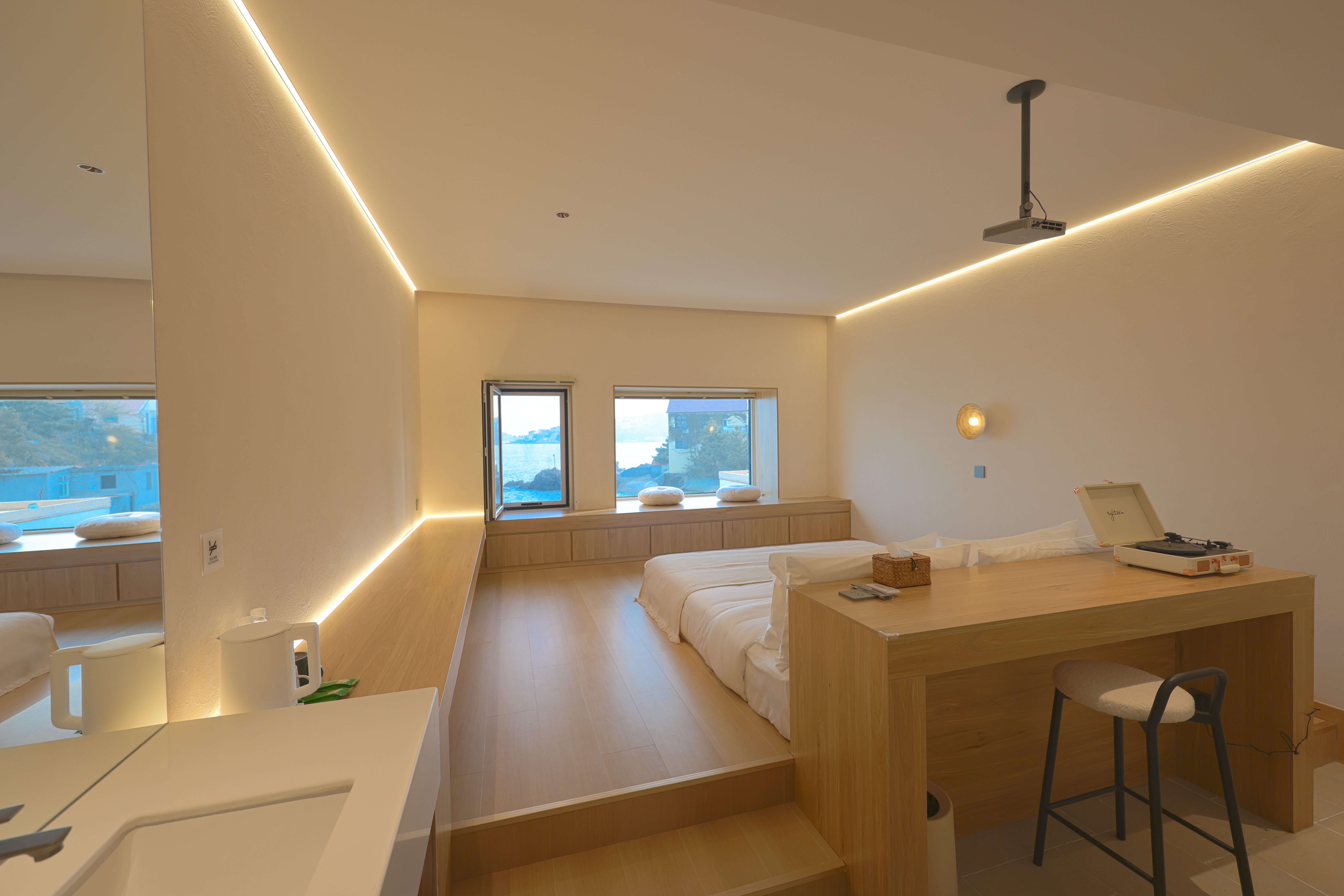 莫比乌斯的海(180°全海景+榻榻米零压大床房+可观潮汐变化+投影仪+黑胶唱片机)