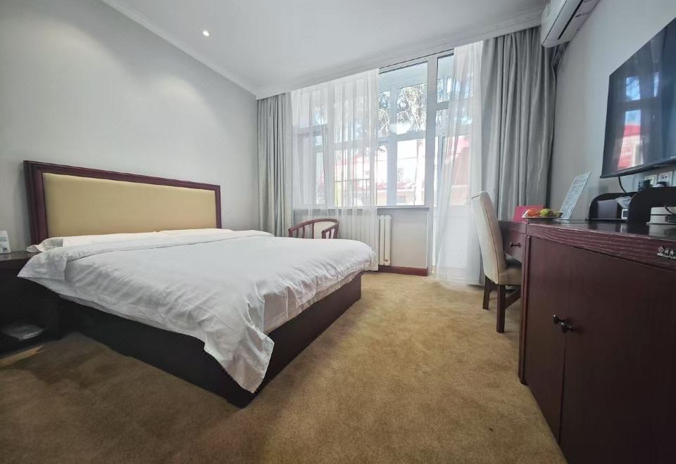 蓝天静雅大床房(市政供暖+阳台+小冰箱)