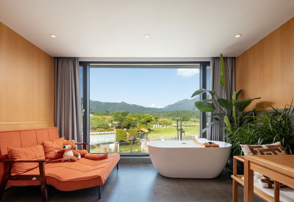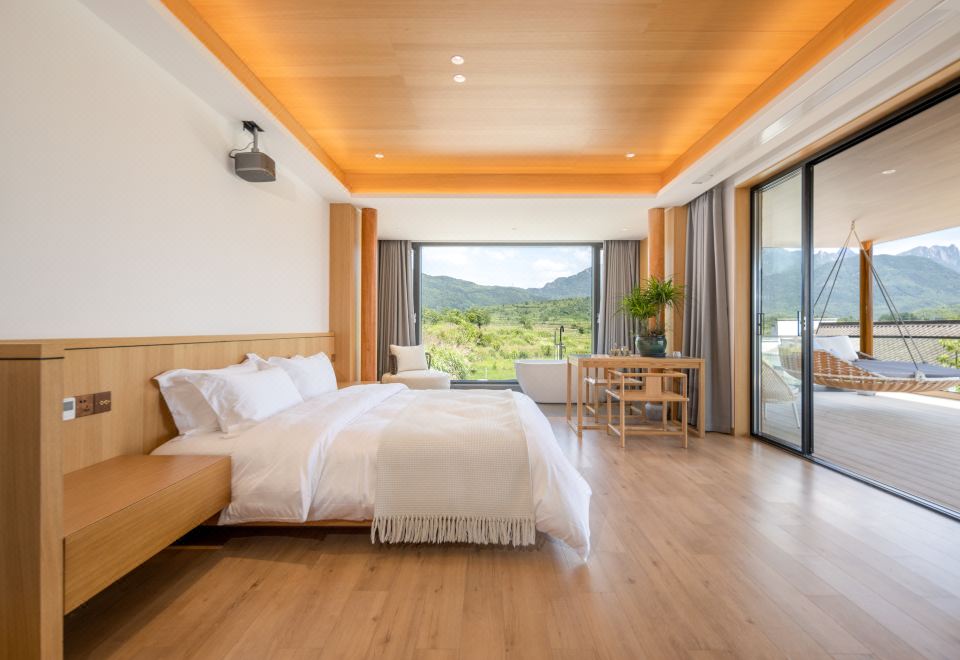 袅袅·暖心套房+三面环景+可望地藏王大铜像+大浴缸+巨幕投影+冰箱+赏景露台+智能客控