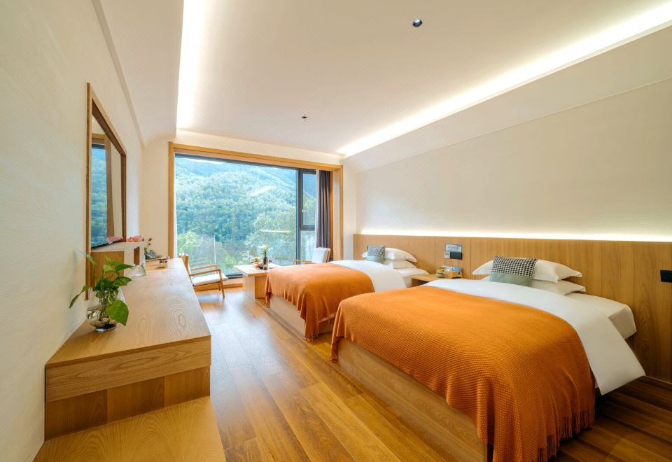 麴院风荷·湖景商务双床房|180°落地窗|休闲茶椅