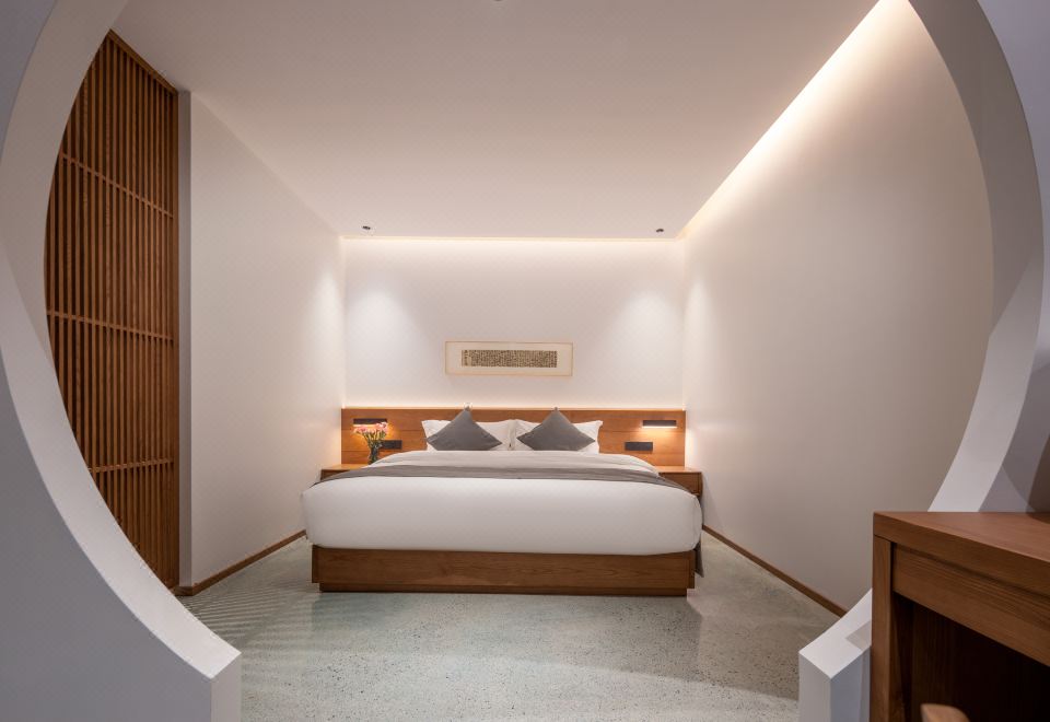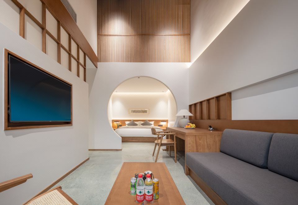 竹月·豪华套房+独立客厅+超大沙发+超大浴缸+开放式长桌+全景落地+法式拱形隔断