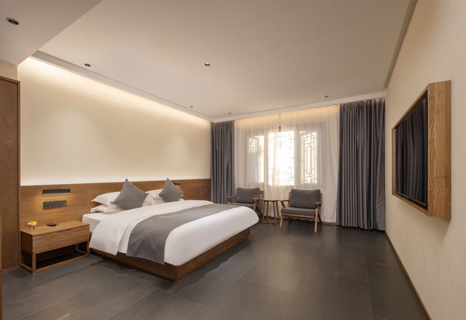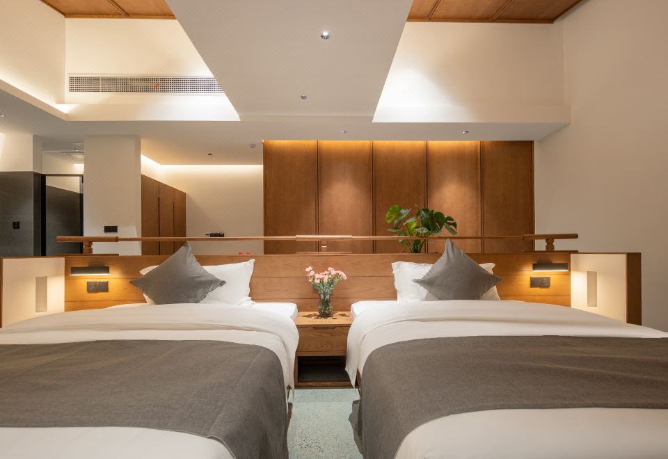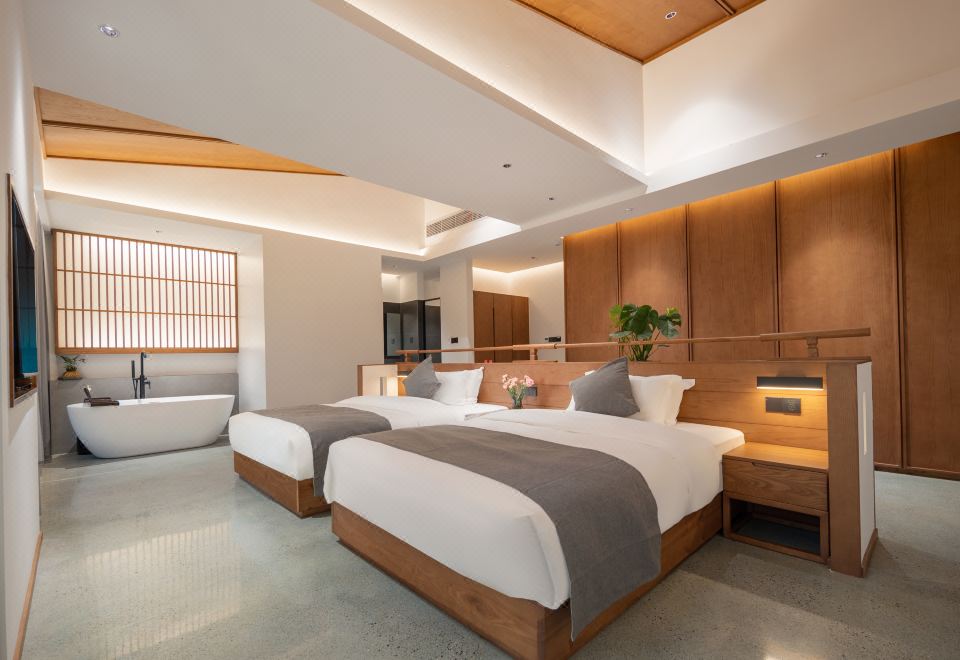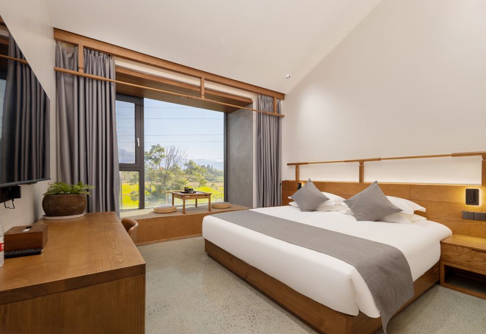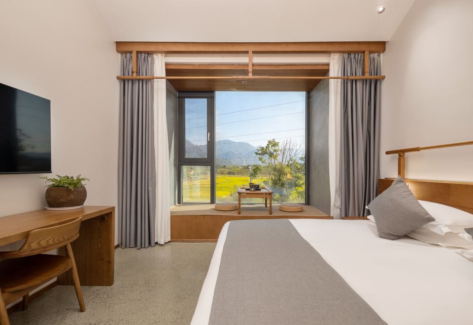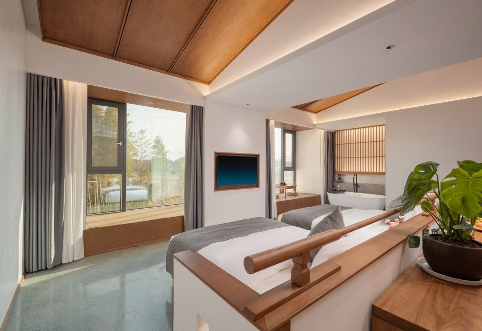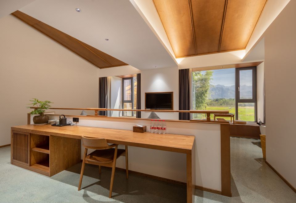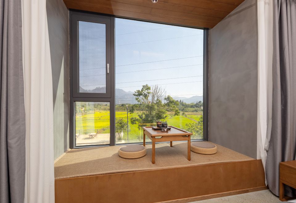 闻雨·观景双床房+开放式长桌+超大浴缸+品茗坐榻+全景落地+田野景观+可望地藏王圣象