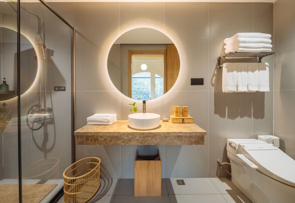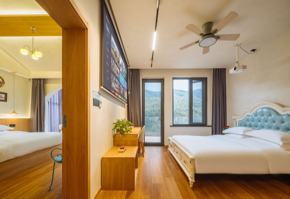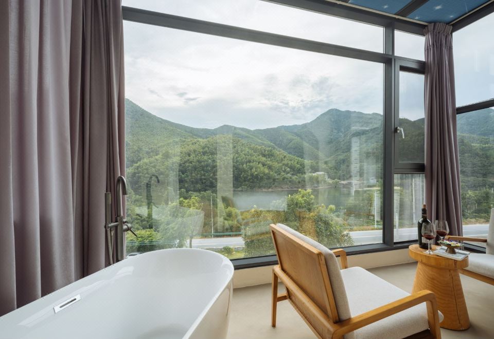 Yanqihuwan Lake View Balcony Scenic Family Business Suite With Large Screen Projector + Smart Curtains + Panoramic Floor-to-Ceiling Glass + Large Bathtub + Indoor&Outdoor Balcony