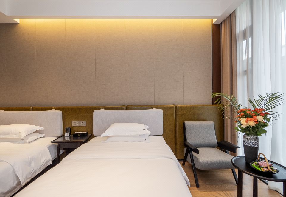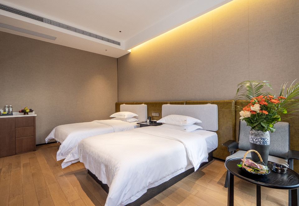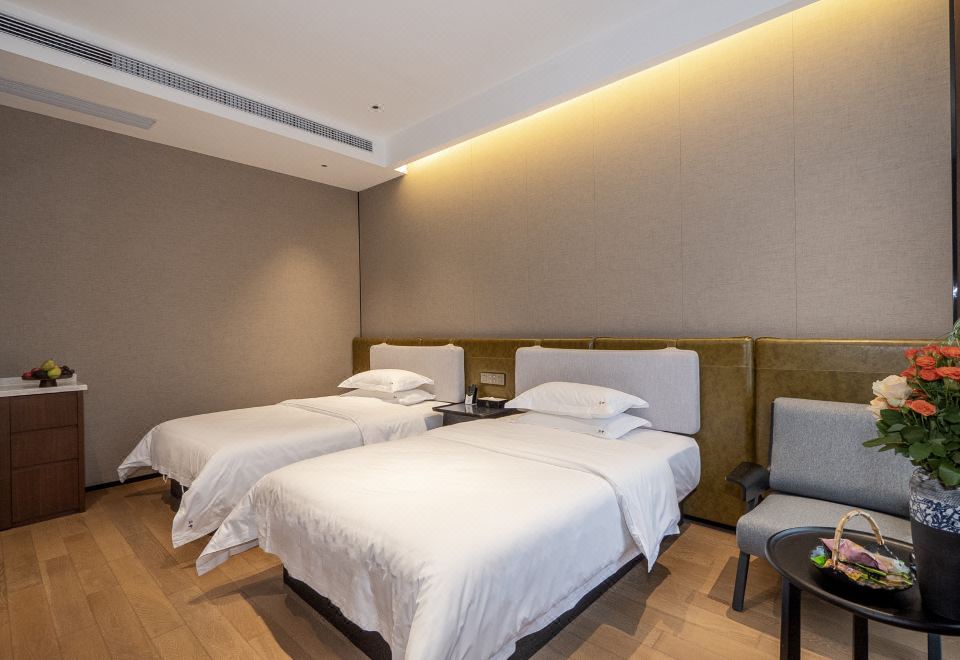 春兰悠在双床房(金可儿床垫+科勒衞浴+莱芬吹风机+小冰箱+鹅绒被+120支纯棉四件套)